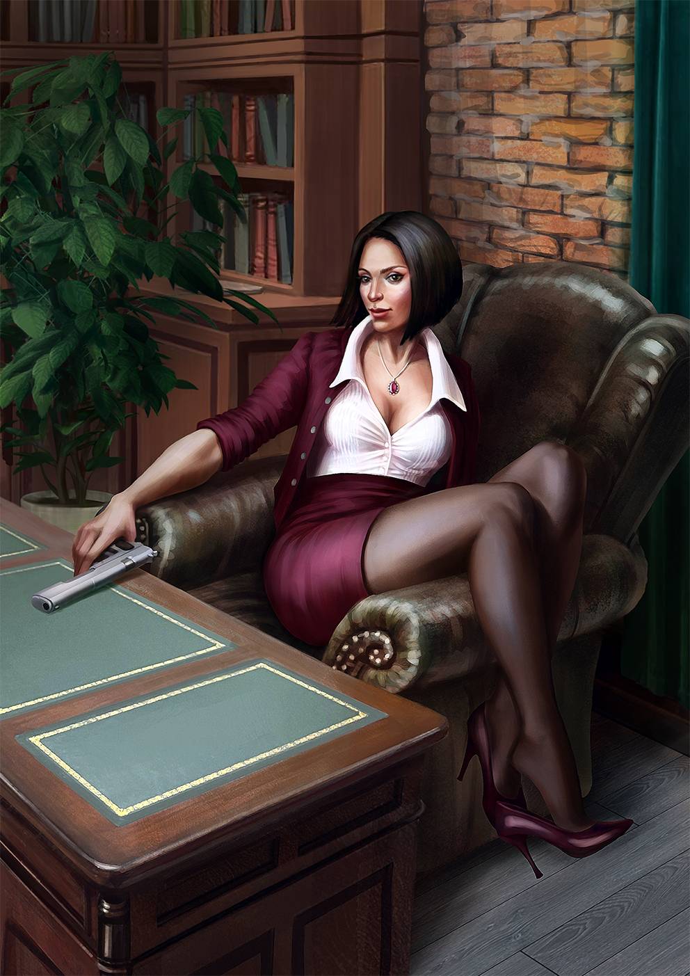 Не обнаружив знакомые лица в баре Вик хотел было пойти искать Эрла в столовой, однако его вежливо попросили удалиться охранники. Поэтому он принял решение поискать Кэли в одной из квартир. Тут удача ему улыбнулась, и он нашел подругу по адресу. Бесцеремонно ворвавшись в комнату банды торговцев, он обнаружил дочь босса за столом напротив. Это был маленький кабинет с большим столом, кожаным диваном, фикусом и карими стенами с хрустальной люстрой. Было очень мрачно, свет практически не работал, а окно заложили кирпичами. Темненькая девушка среднего телосложения с выдающимся бюстом растянулась на кресле закинув ноги на стол. Она напоминала девчонку-боксера, которую провели через модельные процедуры, спа, крема и увлекли экономикой со статистикой. Целеустремленный взгляд, деловой костюм, мягкая улыбка крепкой челюсти с ямочками на бархатных щечках. Засученные рукава рубашки открывали кисти и пальцы с коротко стрижеными ногтями, покрытыми бесцветным лаком. От девушки пахло ягодными духами. Неожиданного гостя она встретила статным взором и направленным пистолетом 911.