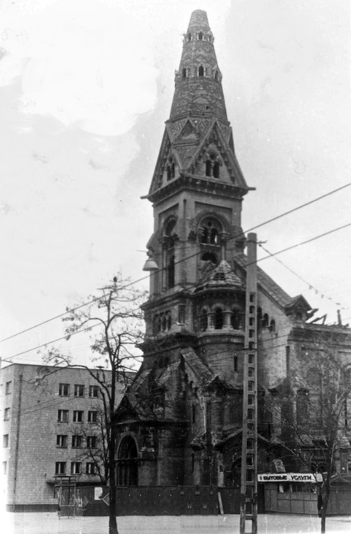 Кирха-спортзал. Слева пятиэтажная «общага»