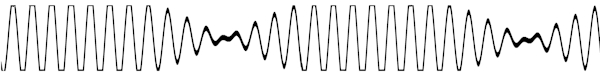 Пошло чередование перегруженных и неперегруженных участков. Вот это и звучит как сверчок. Осталось выяснить, откуда берутся синусоиды с небольшой разницей по частоте.