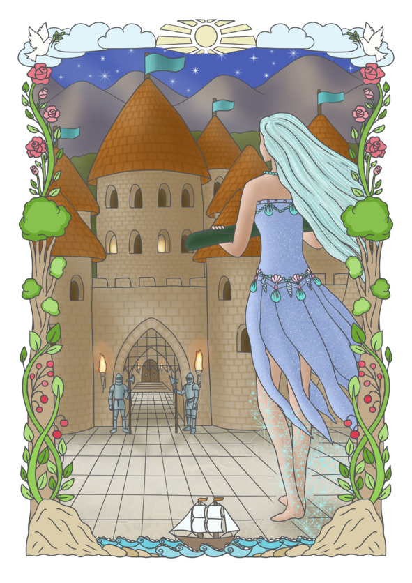 Русалка тем временем спокойно прошла мимо спящих стражников, миновала крепостные ворота и направилась дальше через пустынный двор в поисках входа в покои замка. Она не знала точно, куда идти, но верила, что сердце приведет ее сквозь ночь туда, куда нужно. Она шла по пустым коридорам и спящим залам, искала кого-то и обязательно должна была найти.