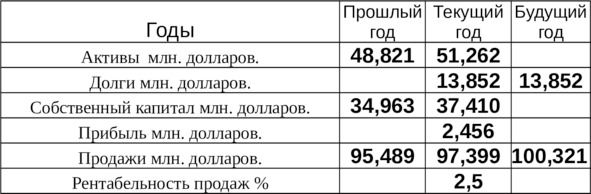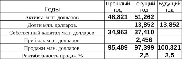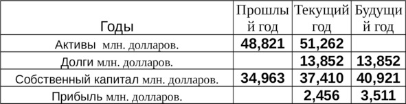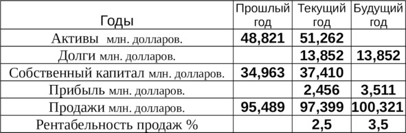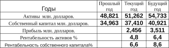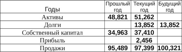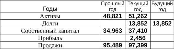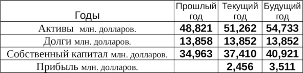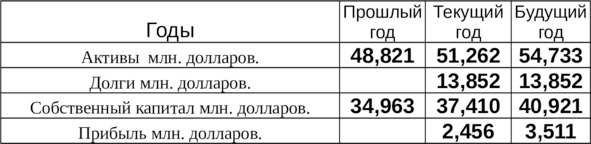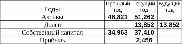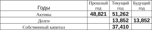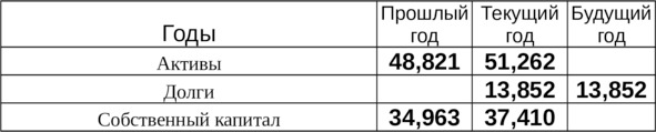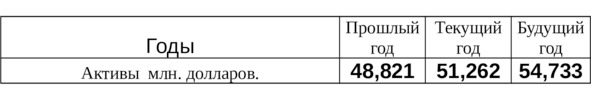 Нам известны долги и собственный капитал планового года. Они не парят в космосе и должны быть материализованы в активах. Активы с одной стороны и долги с собственным капиталом с другой стороны как две стороны одной монеты. Активы нам говорят сколько у нас ресурсов (номинал монеты, «решка»), долги и собственный капитал показывают, за чей счет эти активы появились на предприятии («орел» монеты). Поскольку монета одна, то активы всегда равны долгам и собственному капиталу. Таким образом, активы планового года равны сумме долгов и собственного капитала: 40,921+13,852=54,773 млн. долларов.