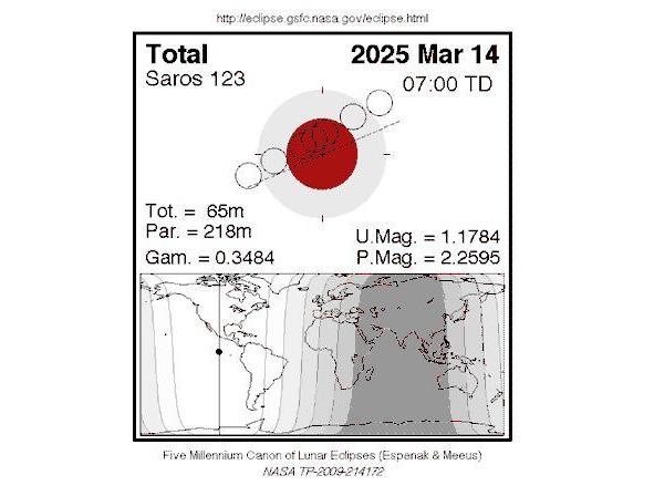 Полное лунное затмение 14 марта 2025 года