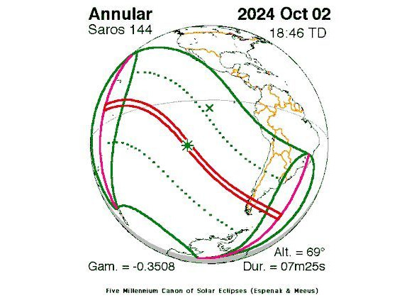 Кольцеобразное солнечное затмение 2 октября 2024 года