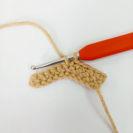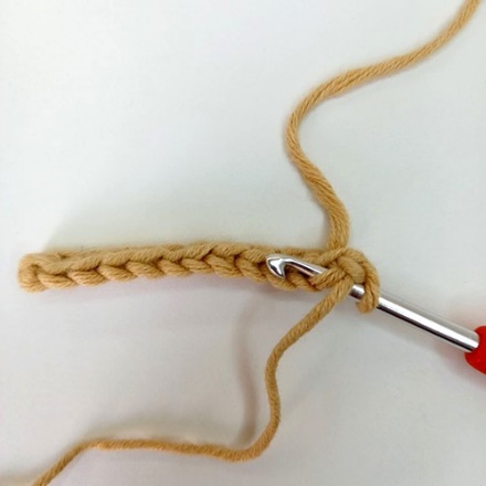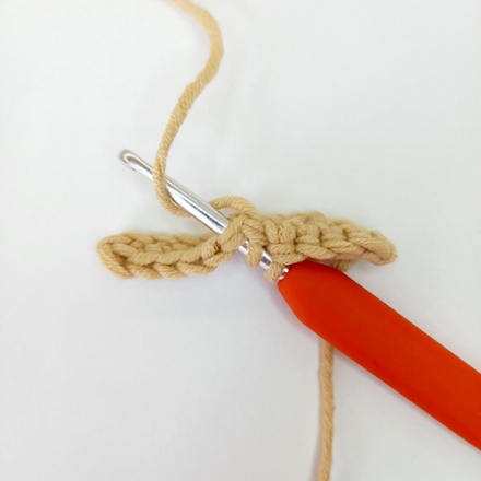 1.Крючок вводим под обе стенки одного основания столбика предыдущего ряда