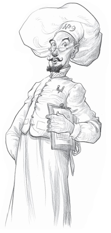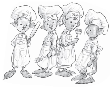 Час спустя, ровно в шесть, прозвонил гонг. Подмастерья, разбуженные громким звуком, протёрли заспанные глаза, натянули поварские курточки и, на ходу нахлобучивая колпачки, гуськом потянулись на кухню. Вскоре туда, улыбаясь, вошёл главный пекарь Пекарни Номер Девять Бальтазар Боабаб.