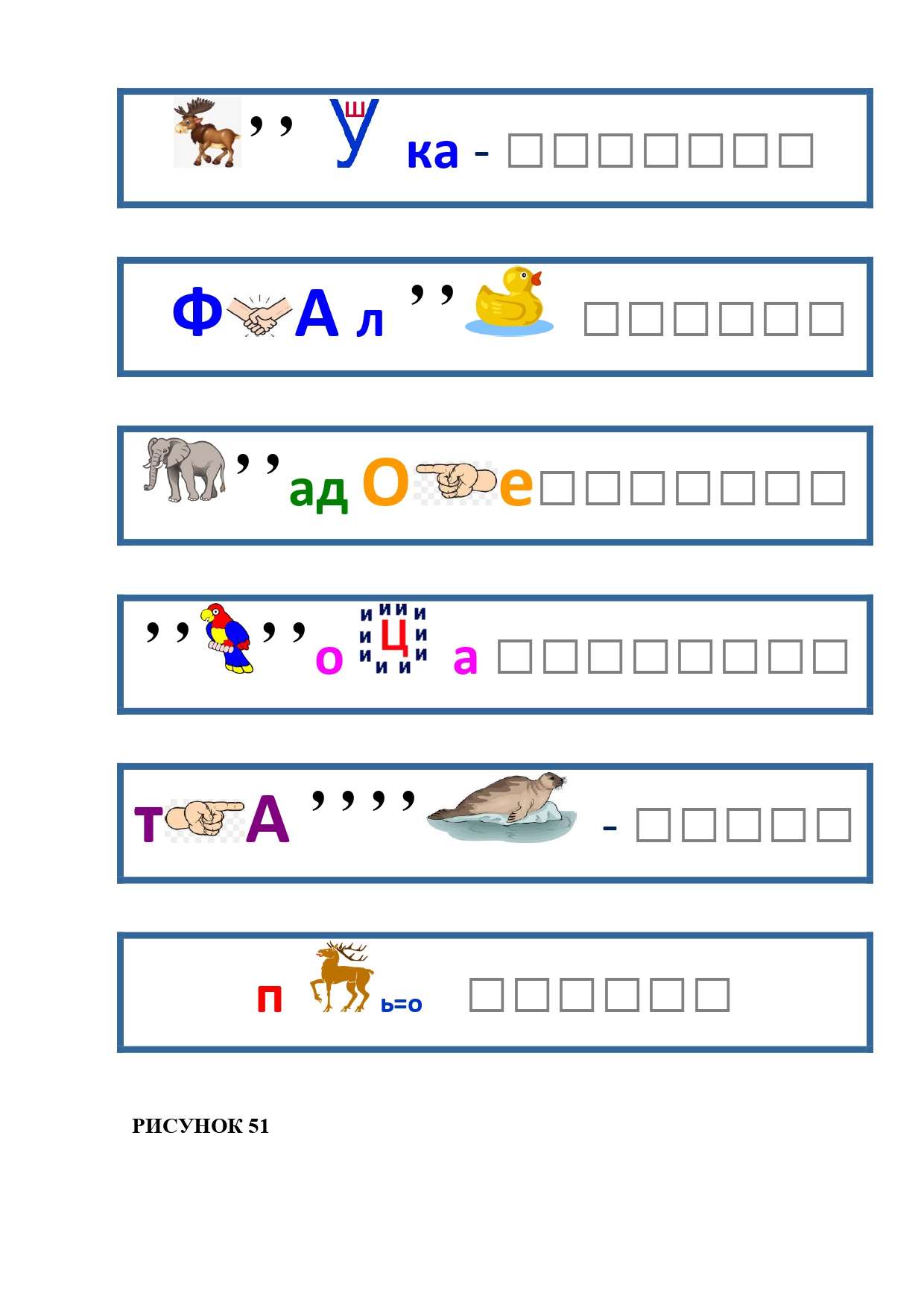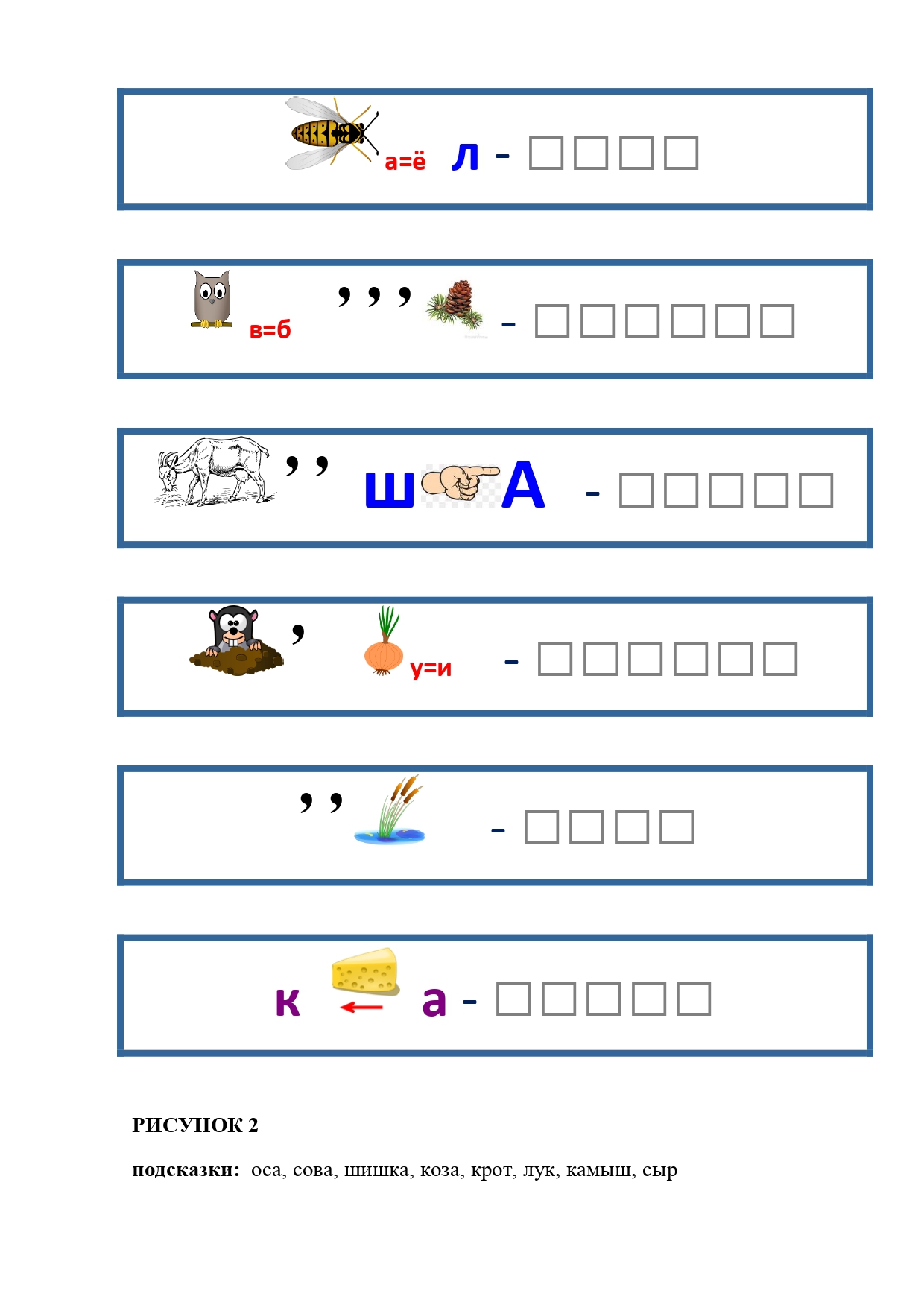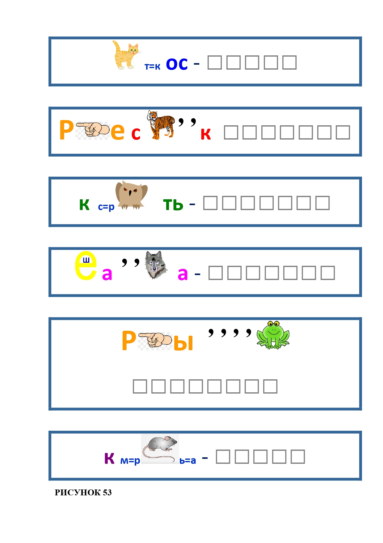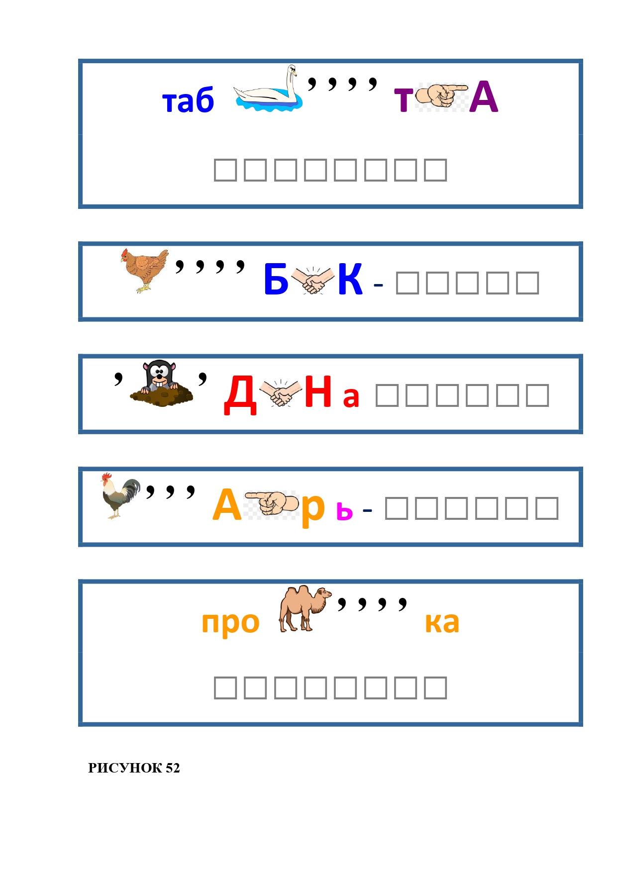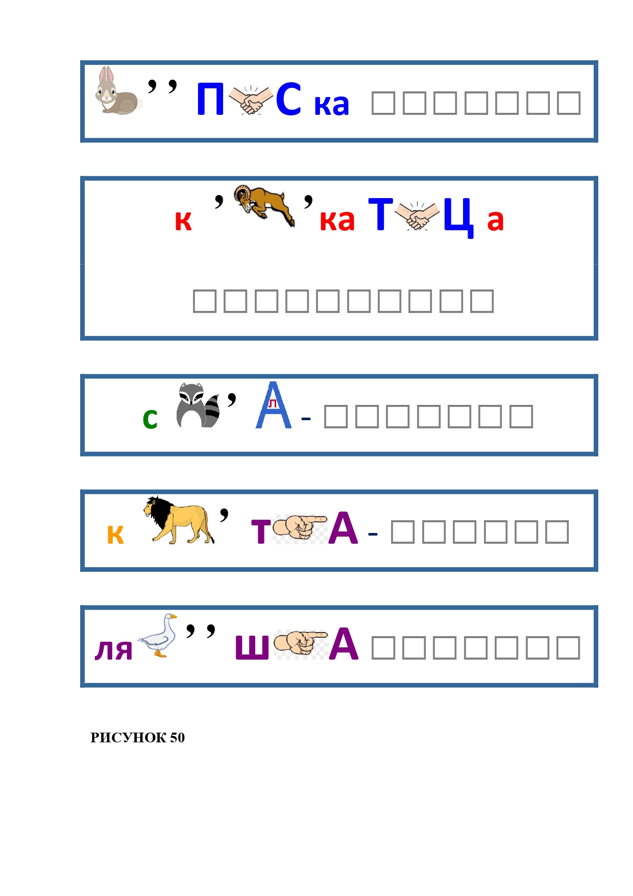 РИСУНОК 50: записка, каракатица, сеновал, клетка, лягушка