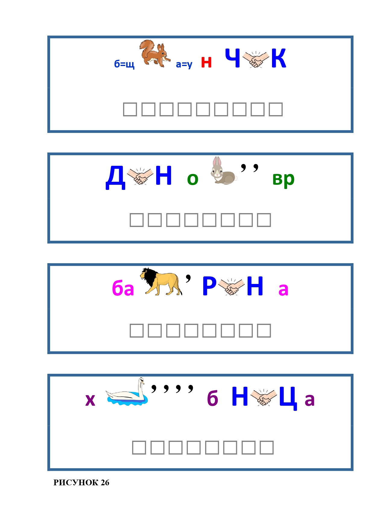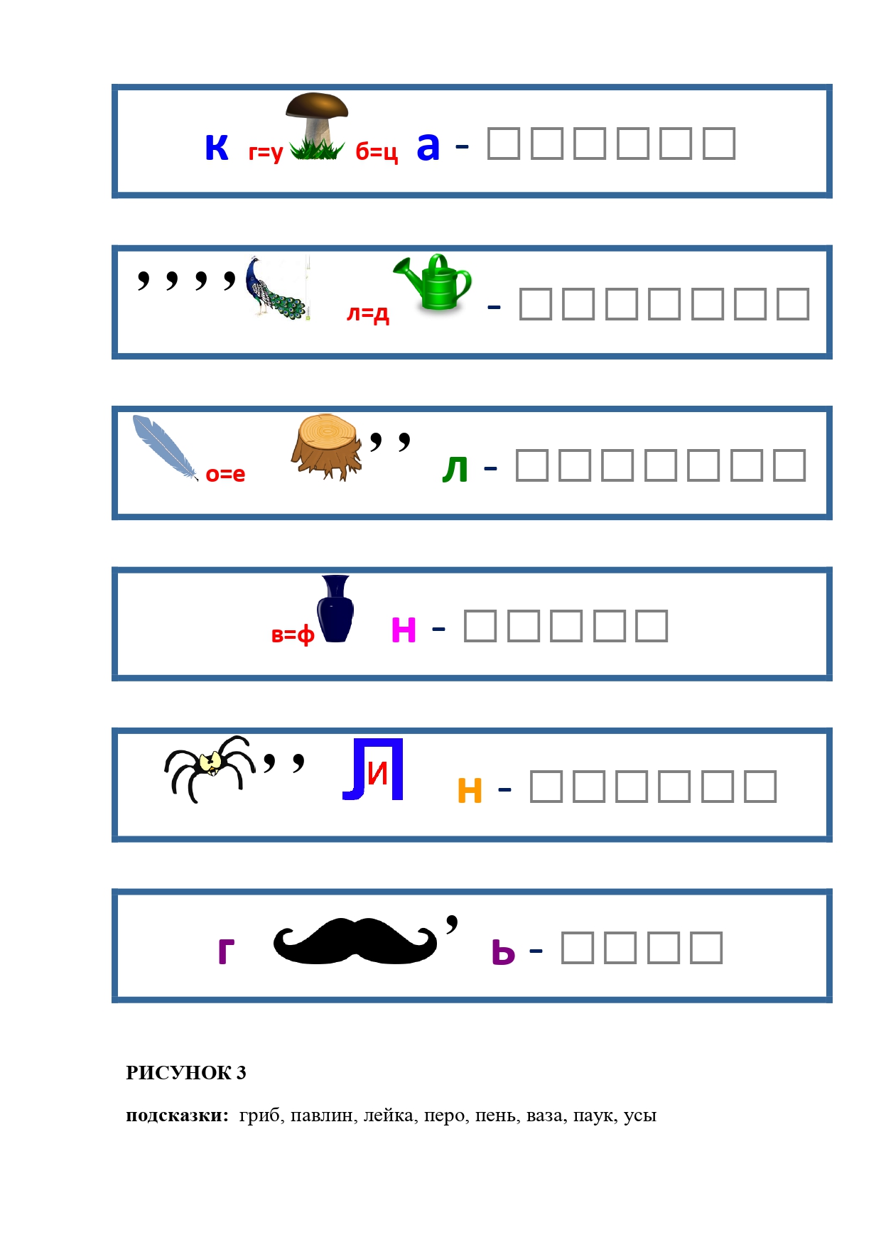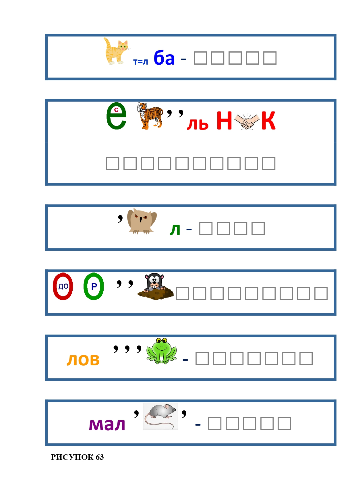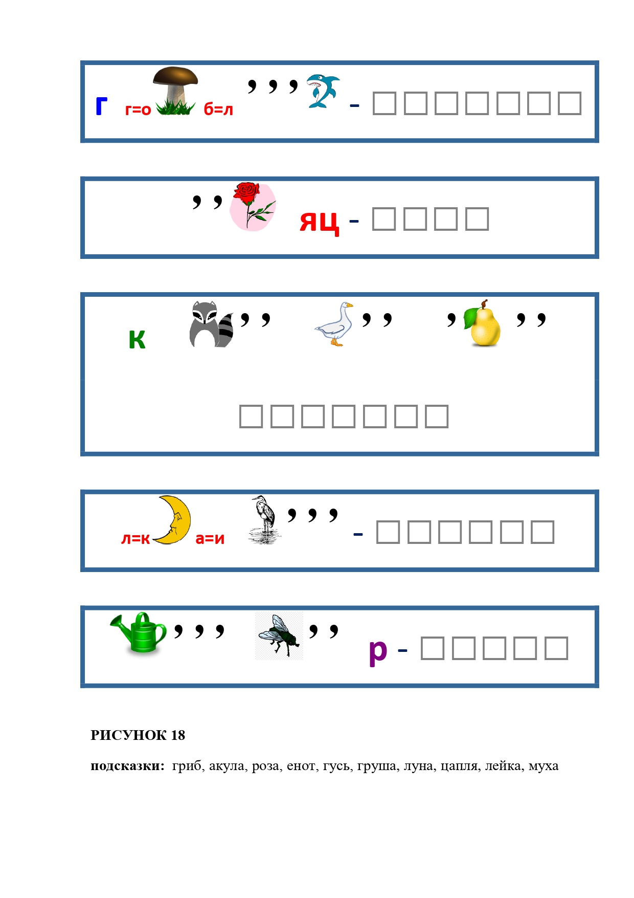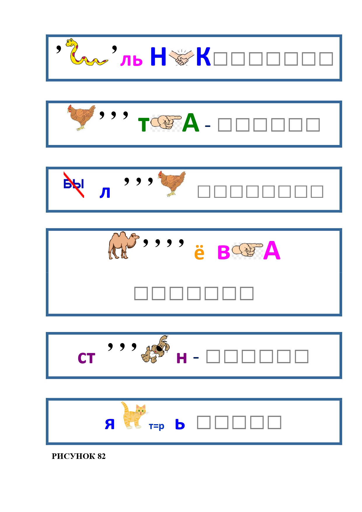 РИСУНОК 50: записка, каракатица, сеновал, клетка, лягушка
