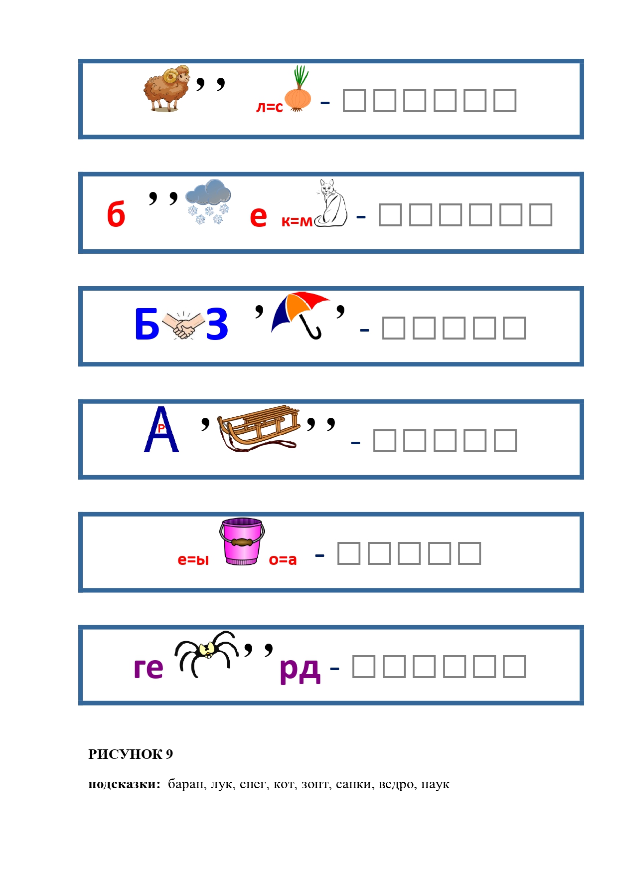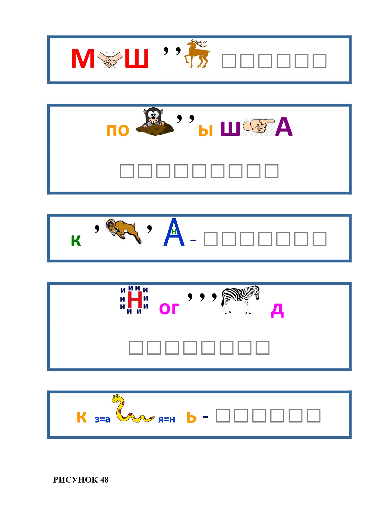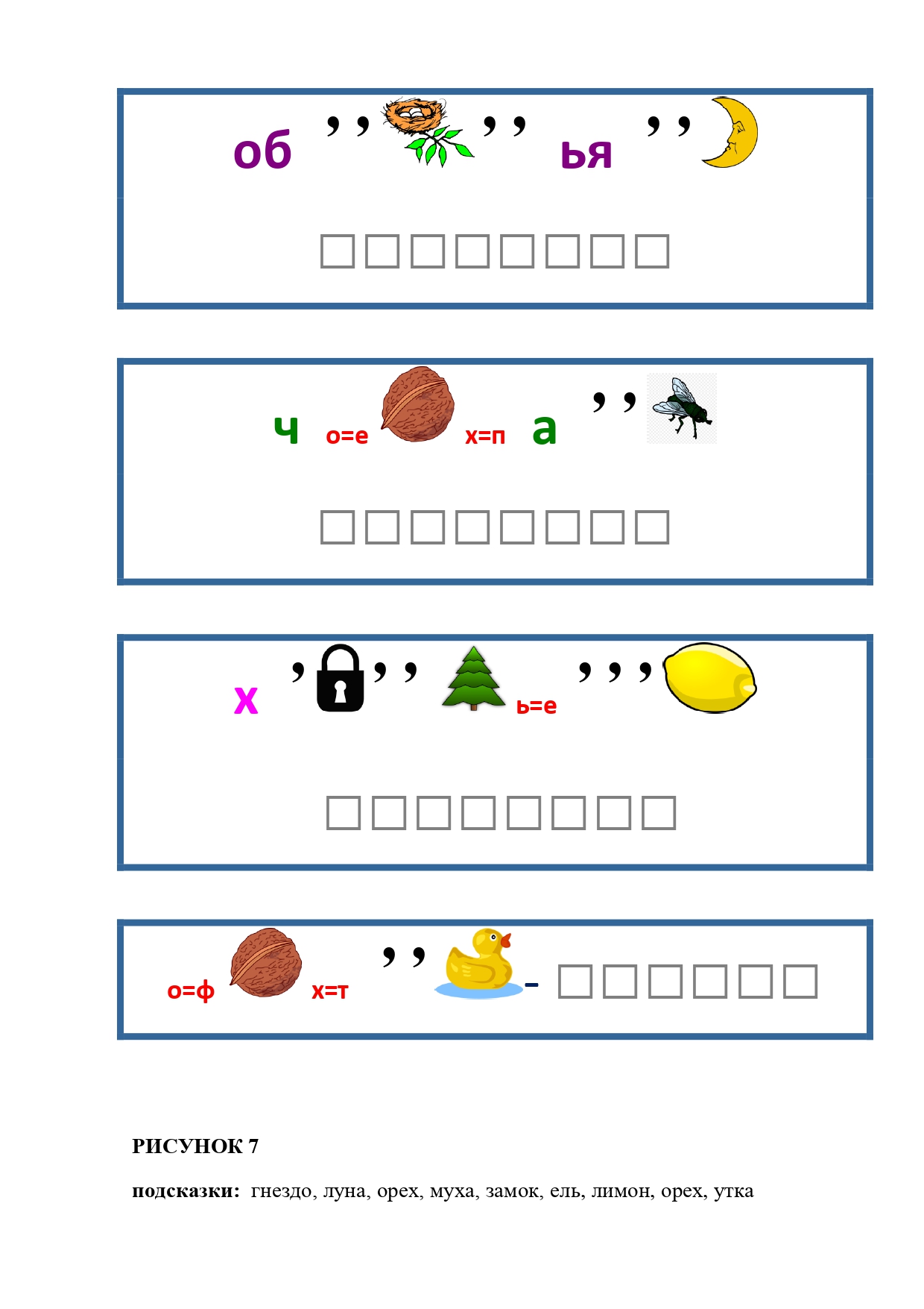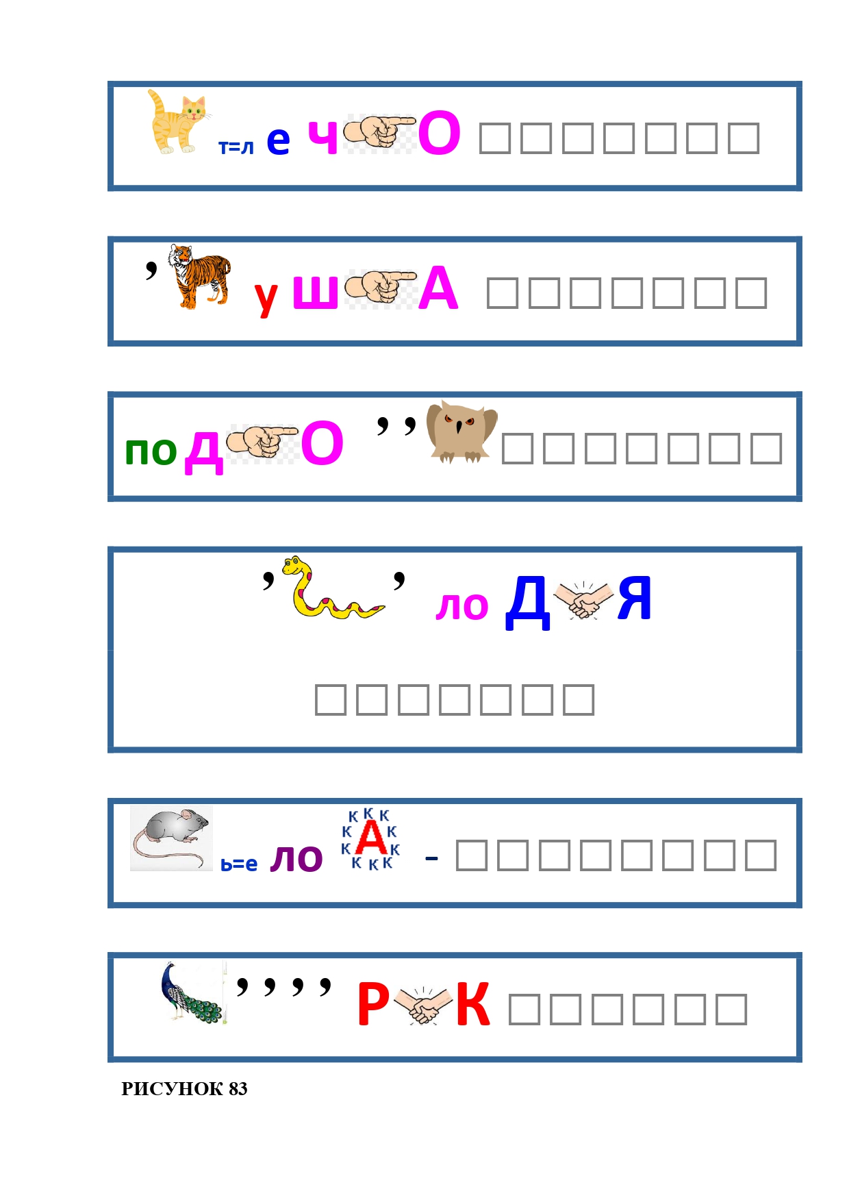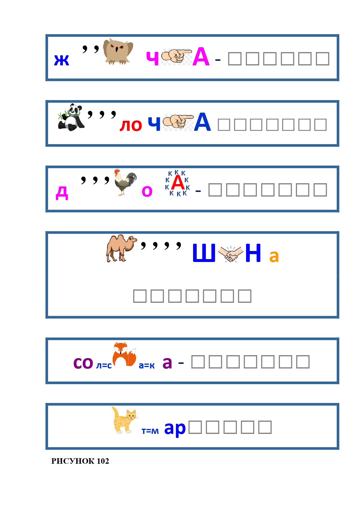 РИСУНОК 50: записка, каракатица, сеновал, клетка, лягушка