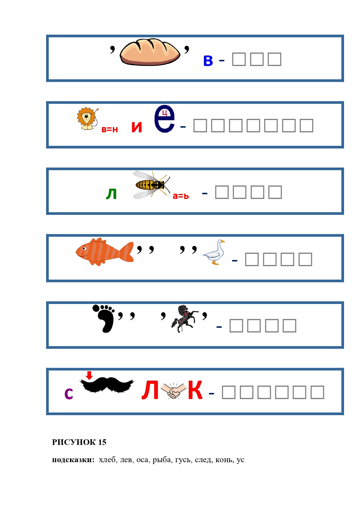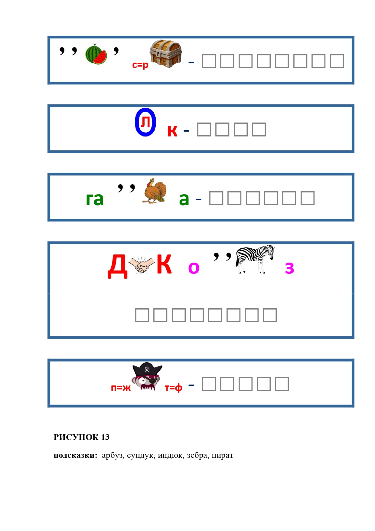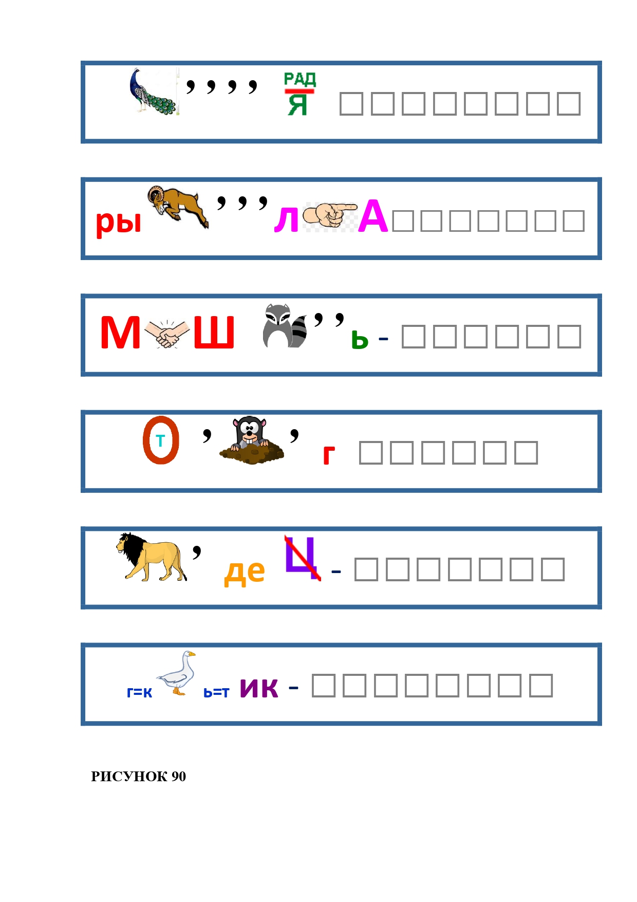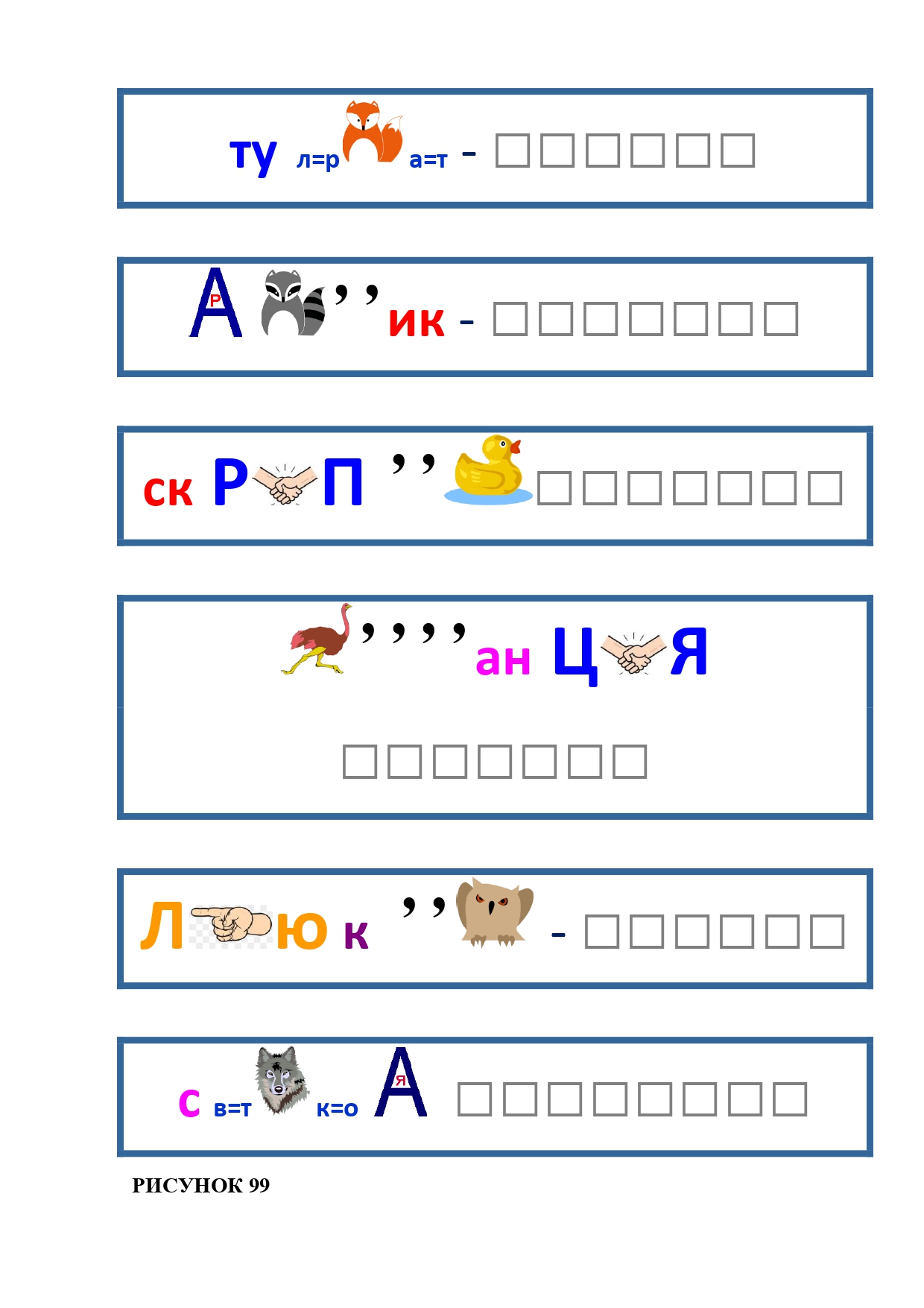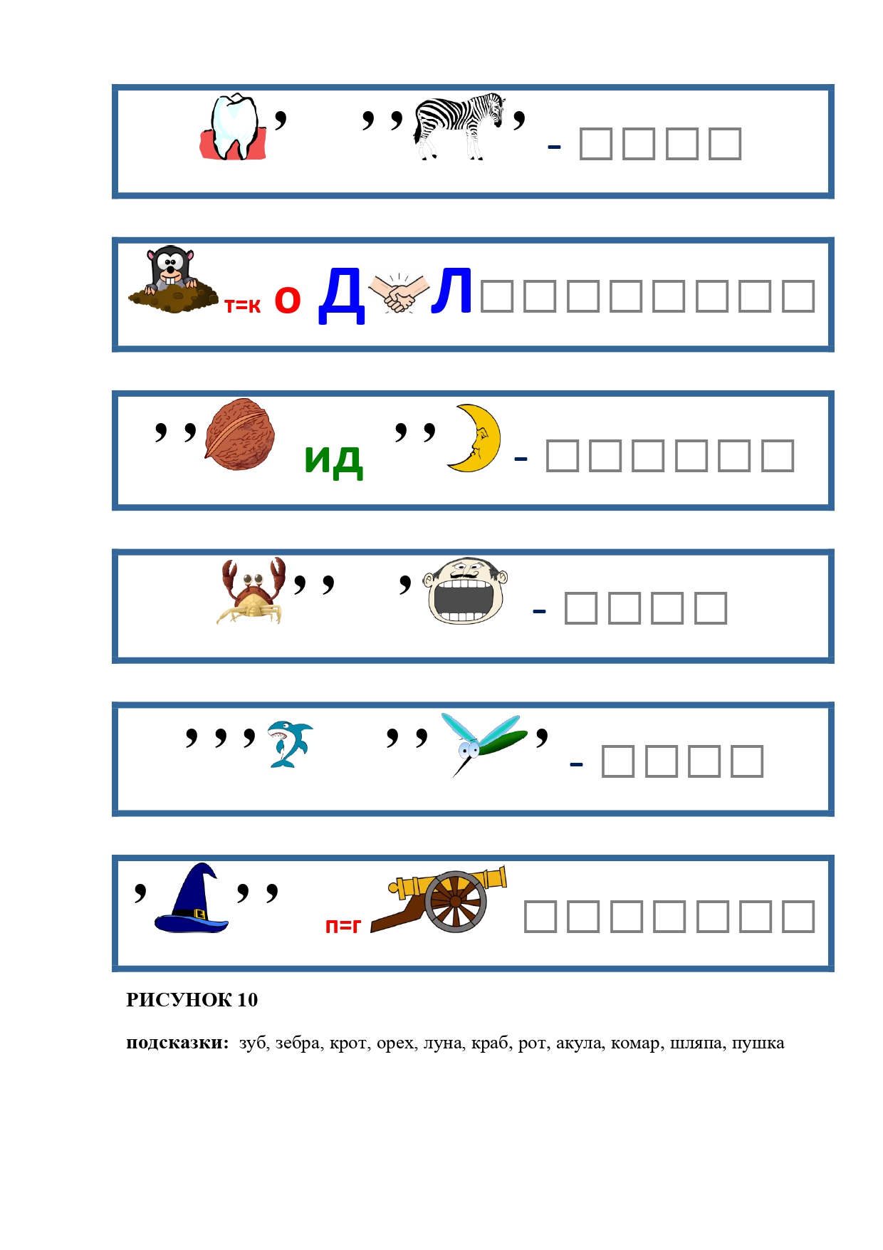 РИСУНОК 50: записка, каракатица, сеновал, клетка, лягушка