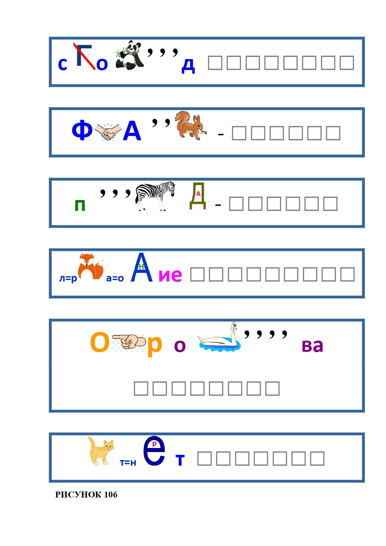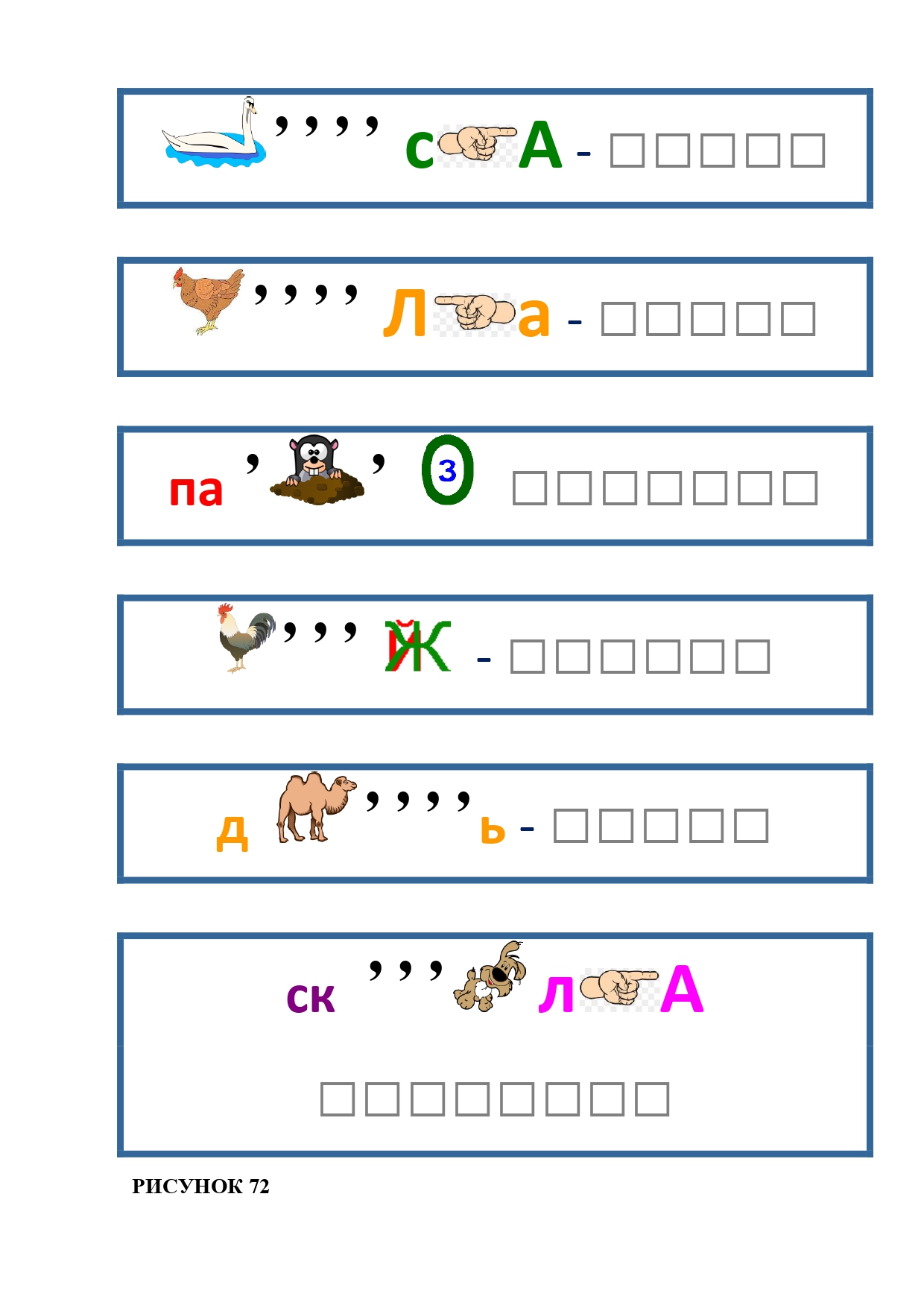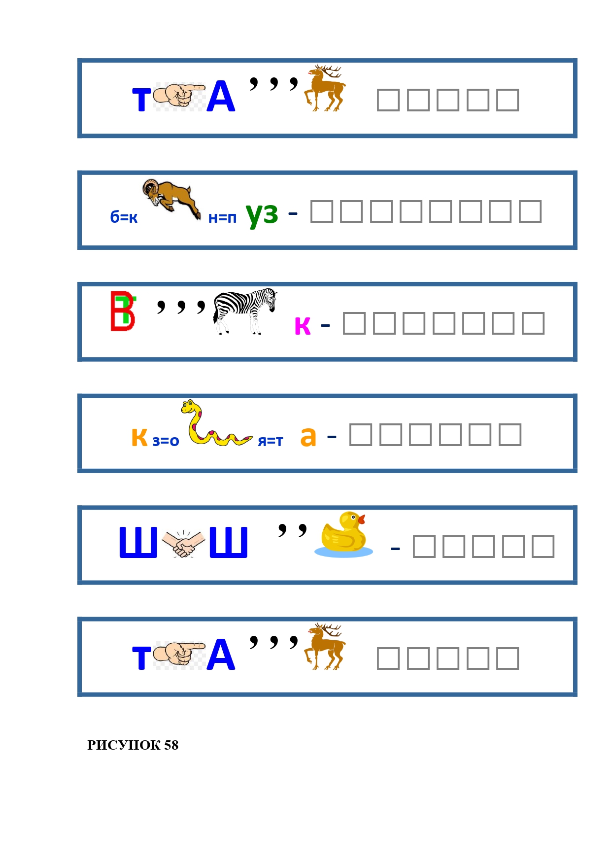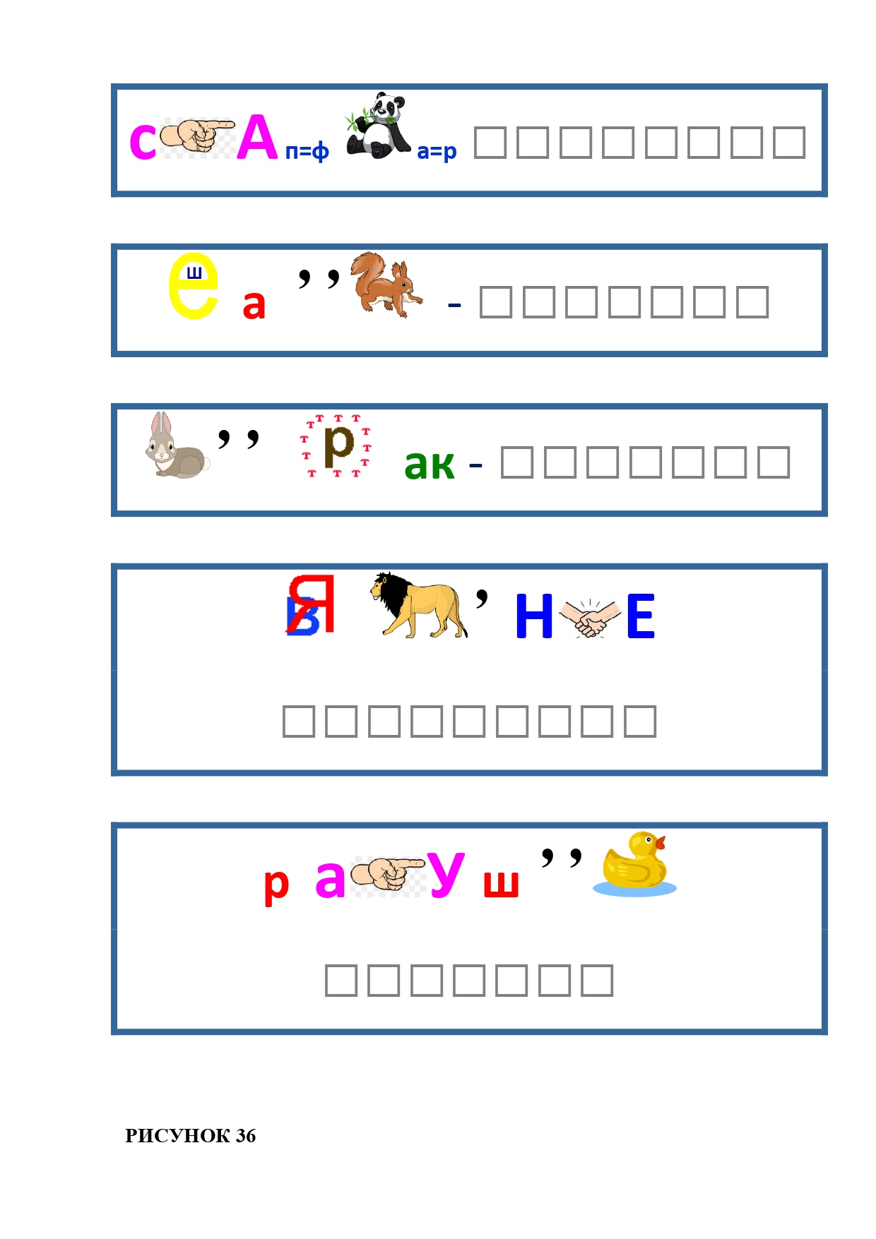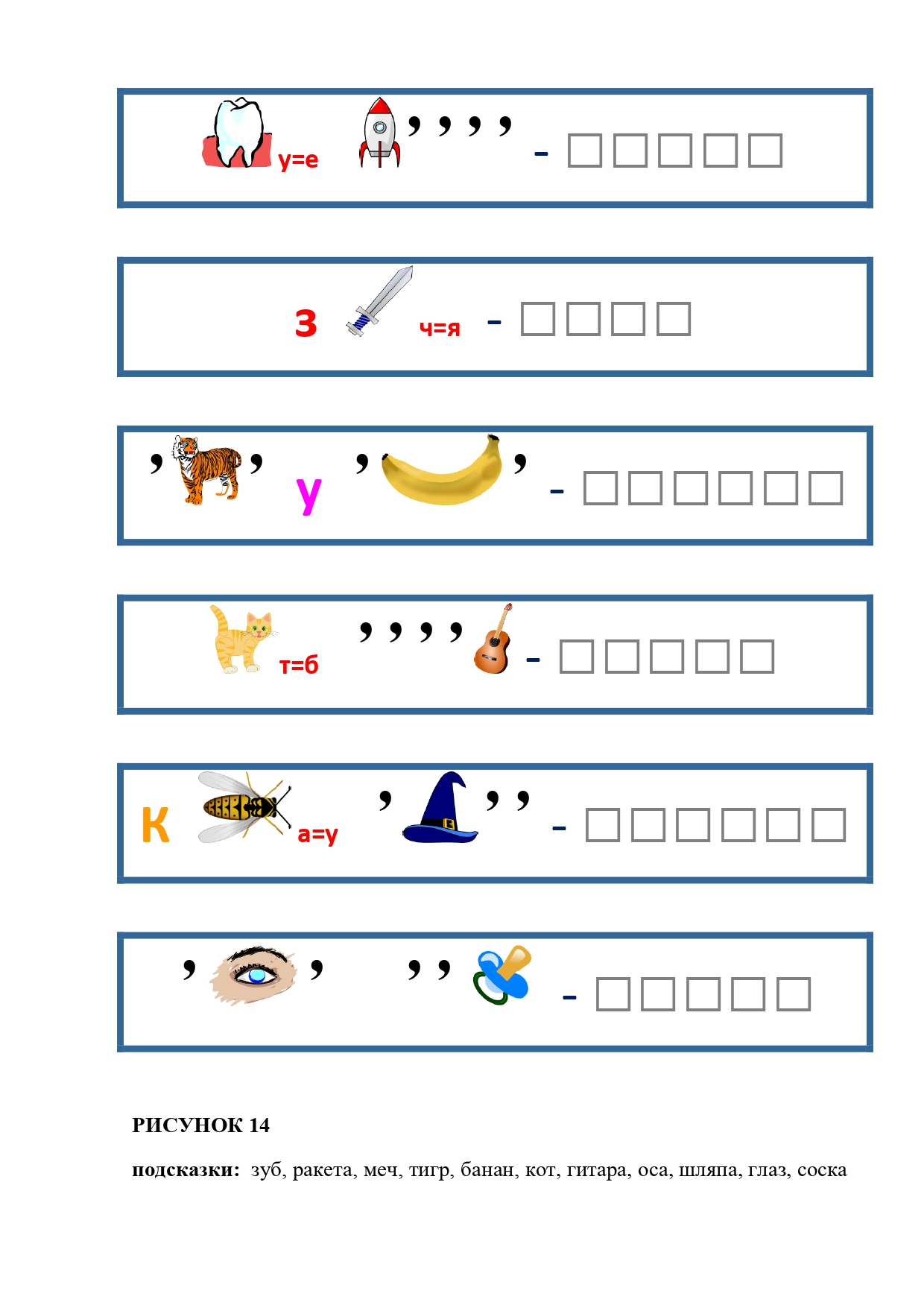 РИСУНОК 50: записка, каракатица, сеновал, клетка, лягушка