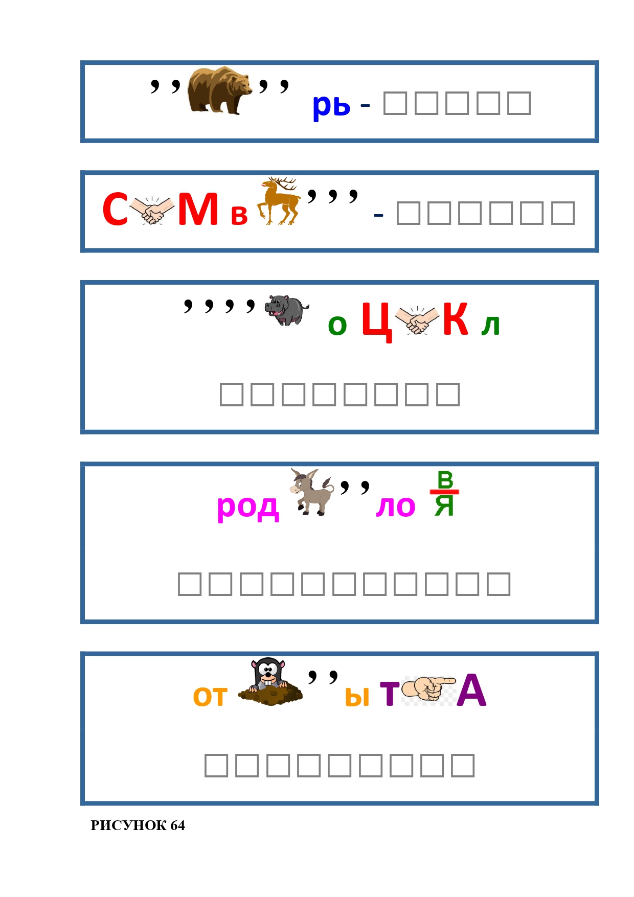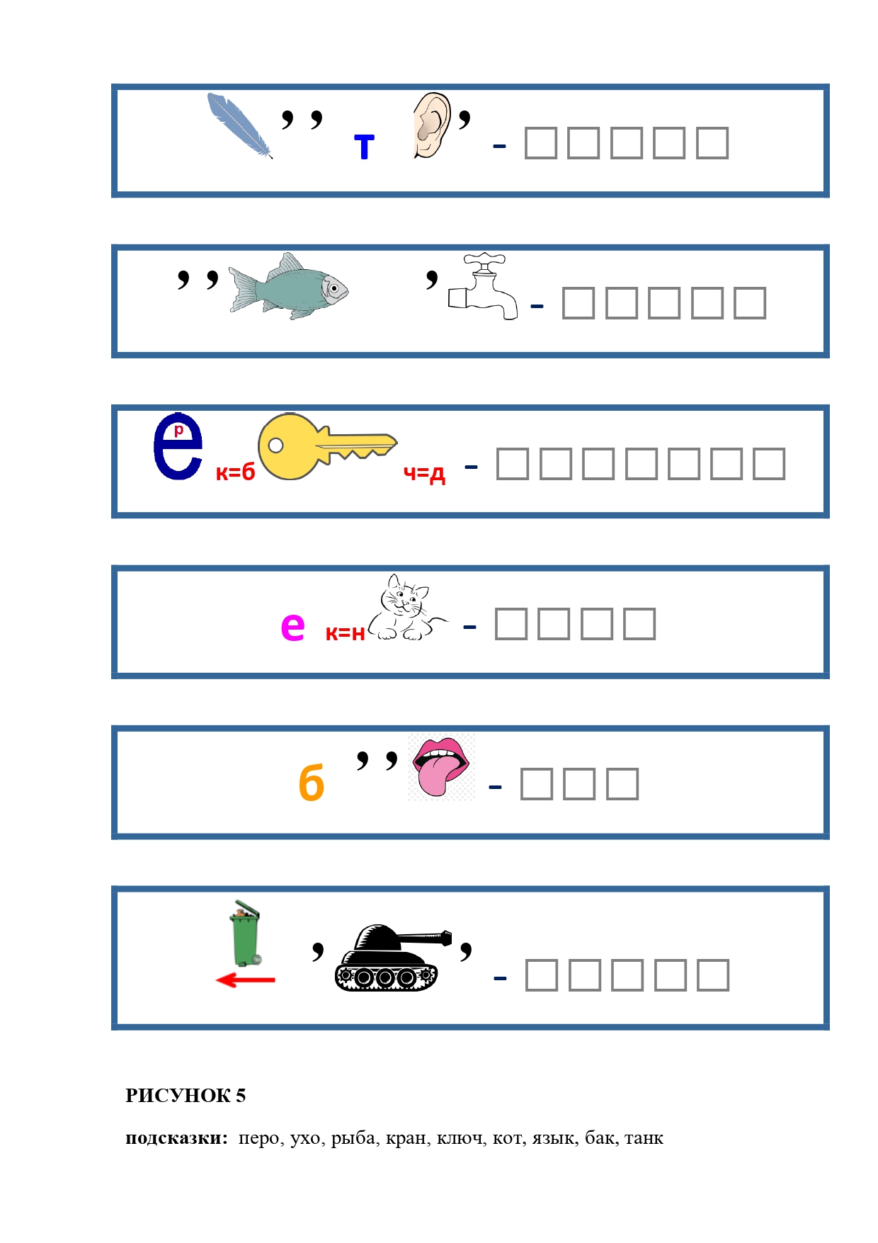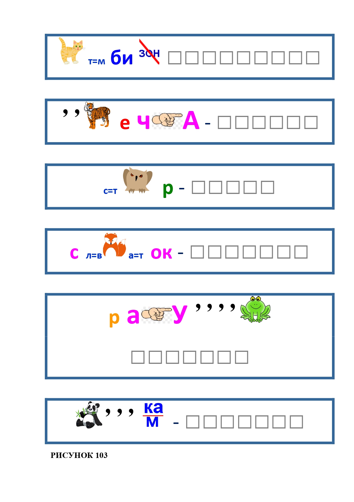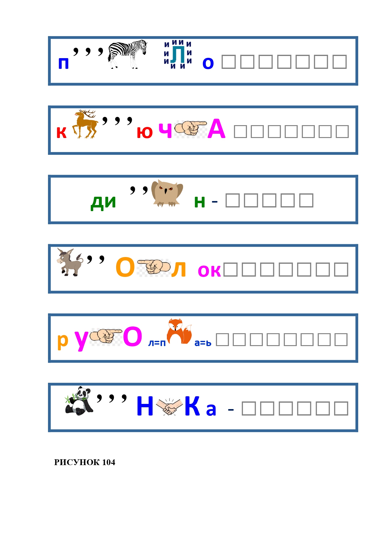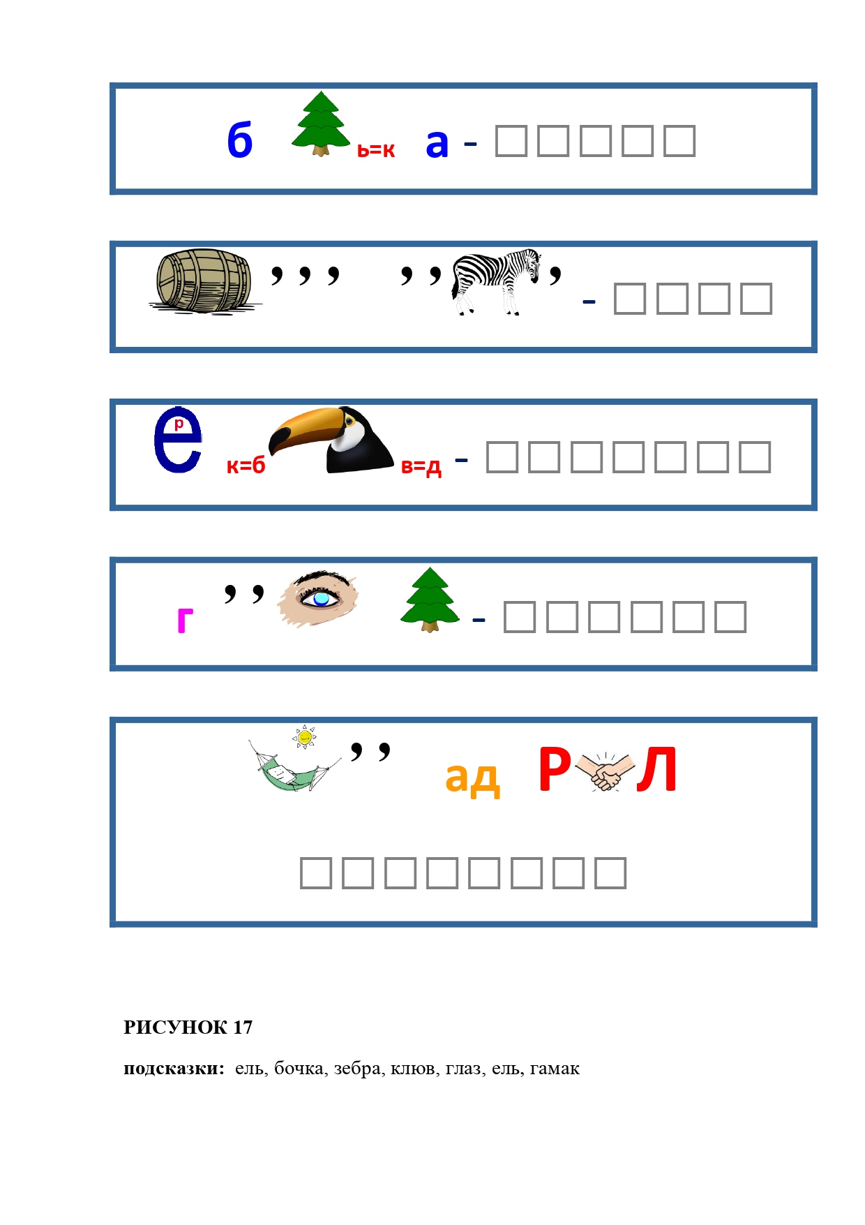 РИСУНОК 50: записка, каракатица, сеновал, клетка, лягушка