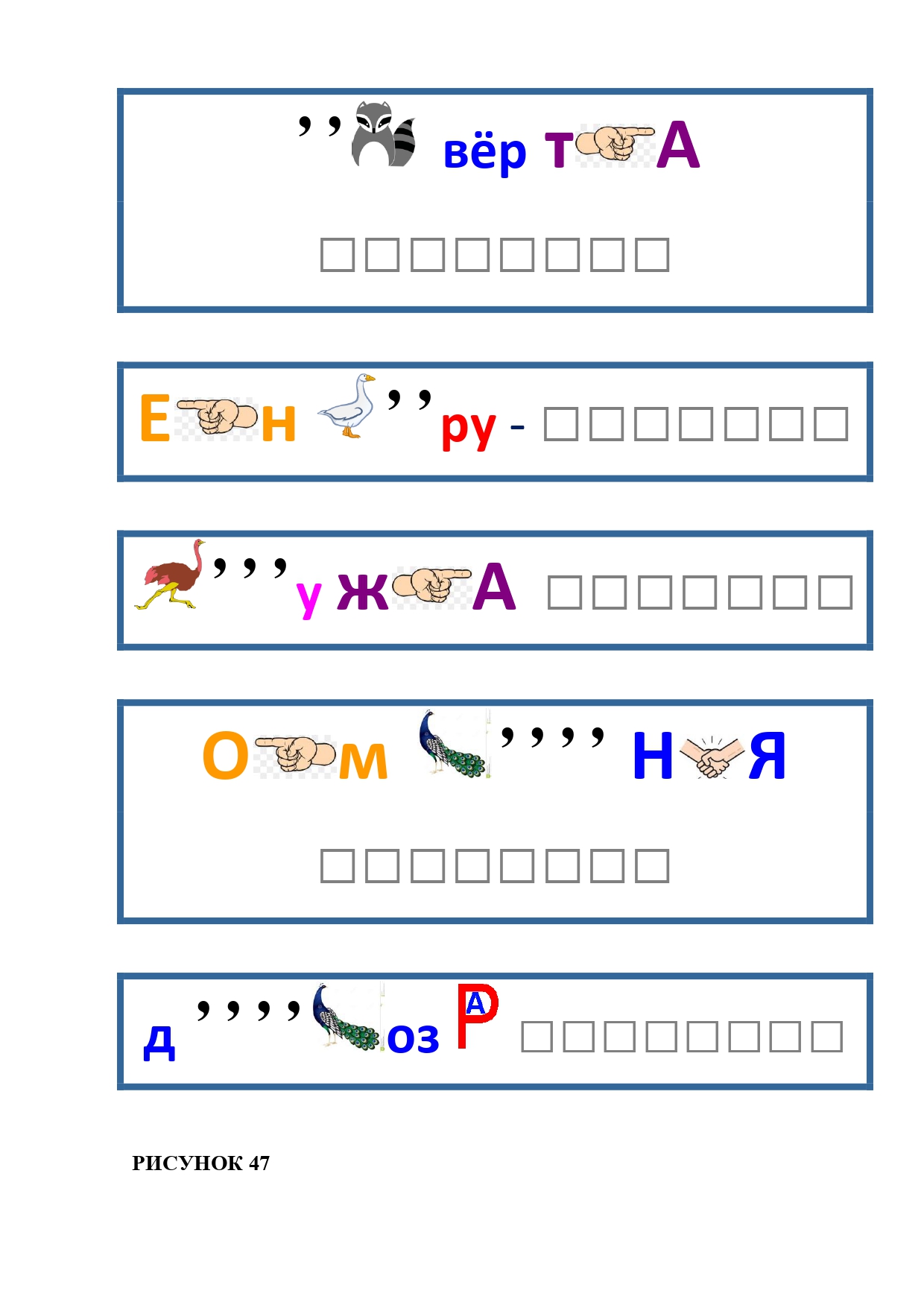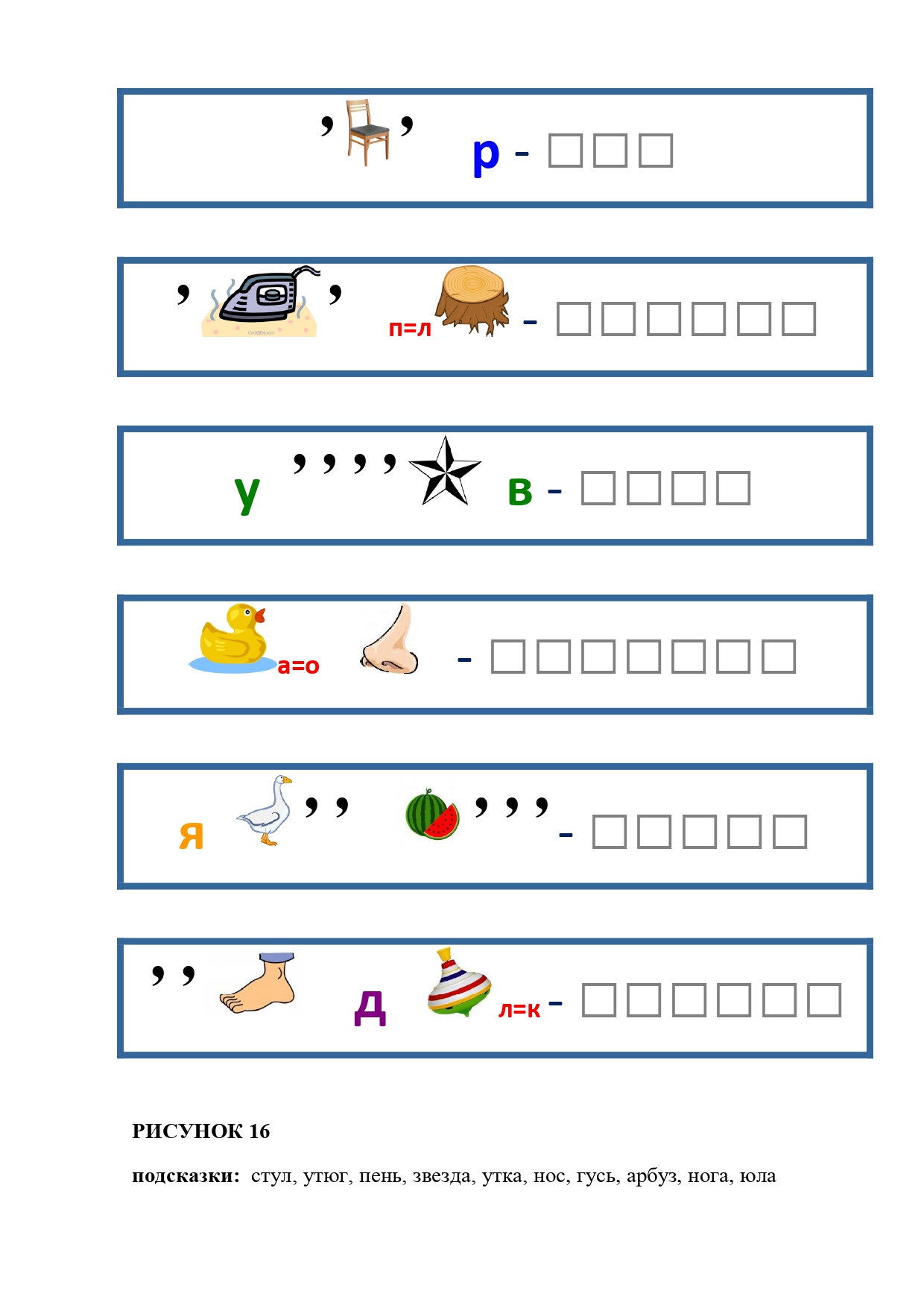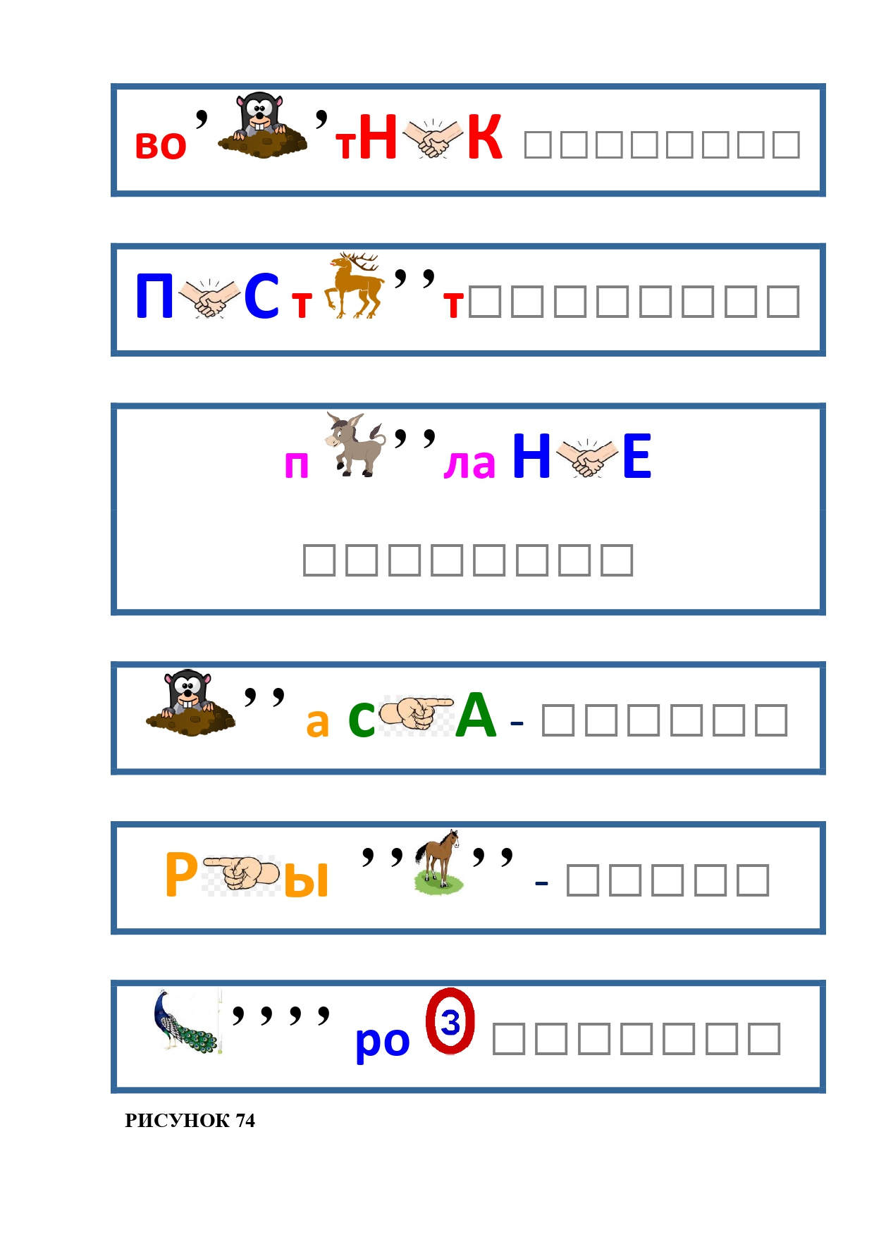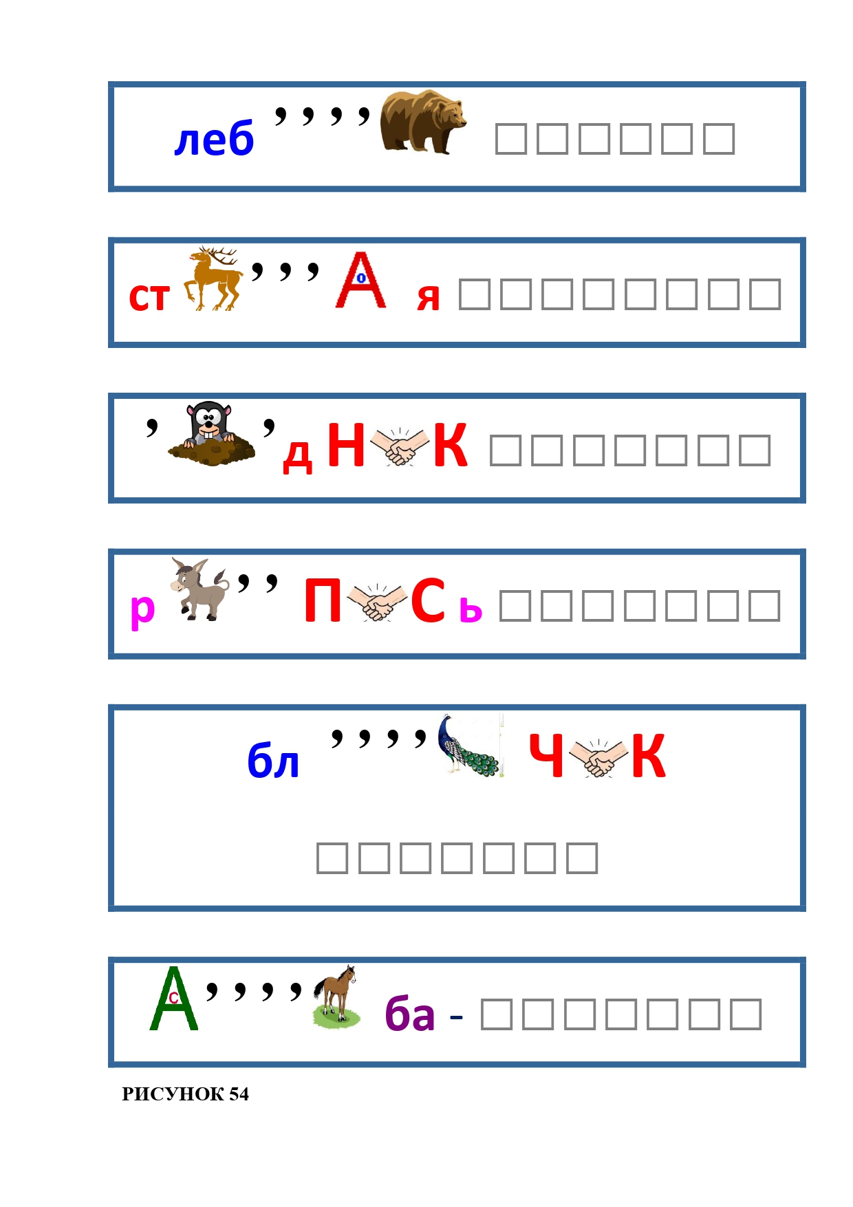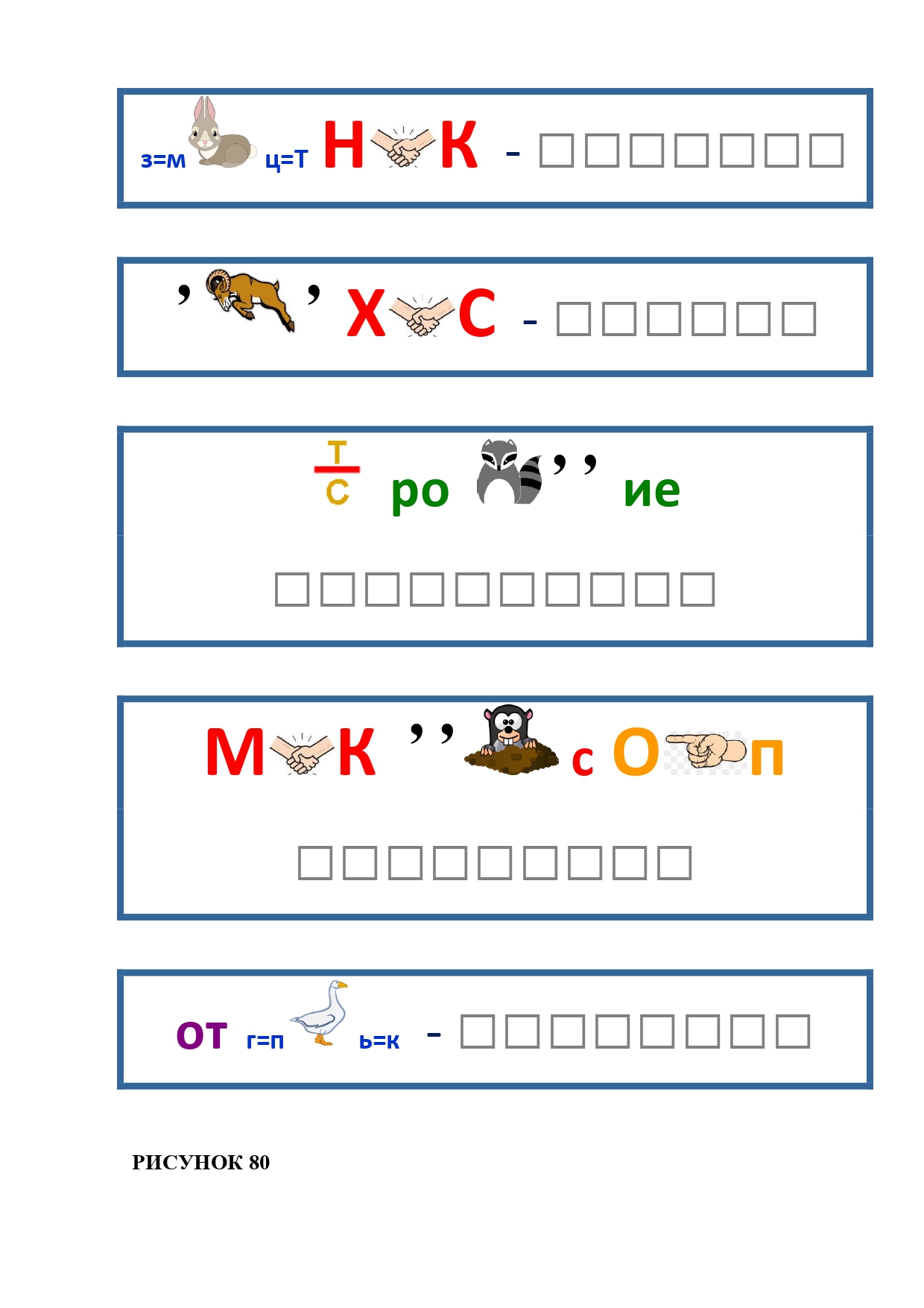 РИСУНОК 50: записка, каракатица, сеновал, клетка, лягушка