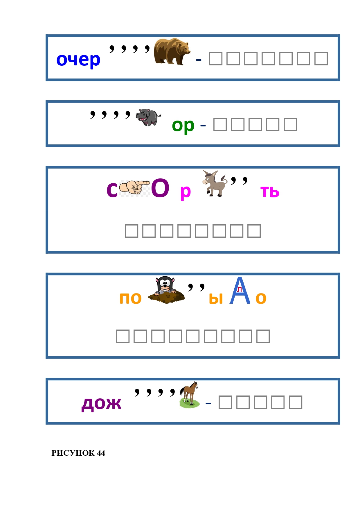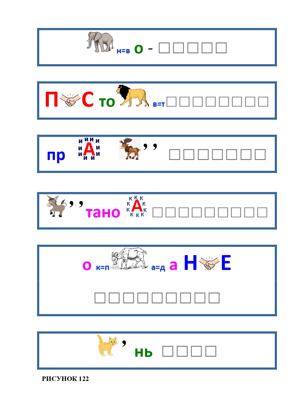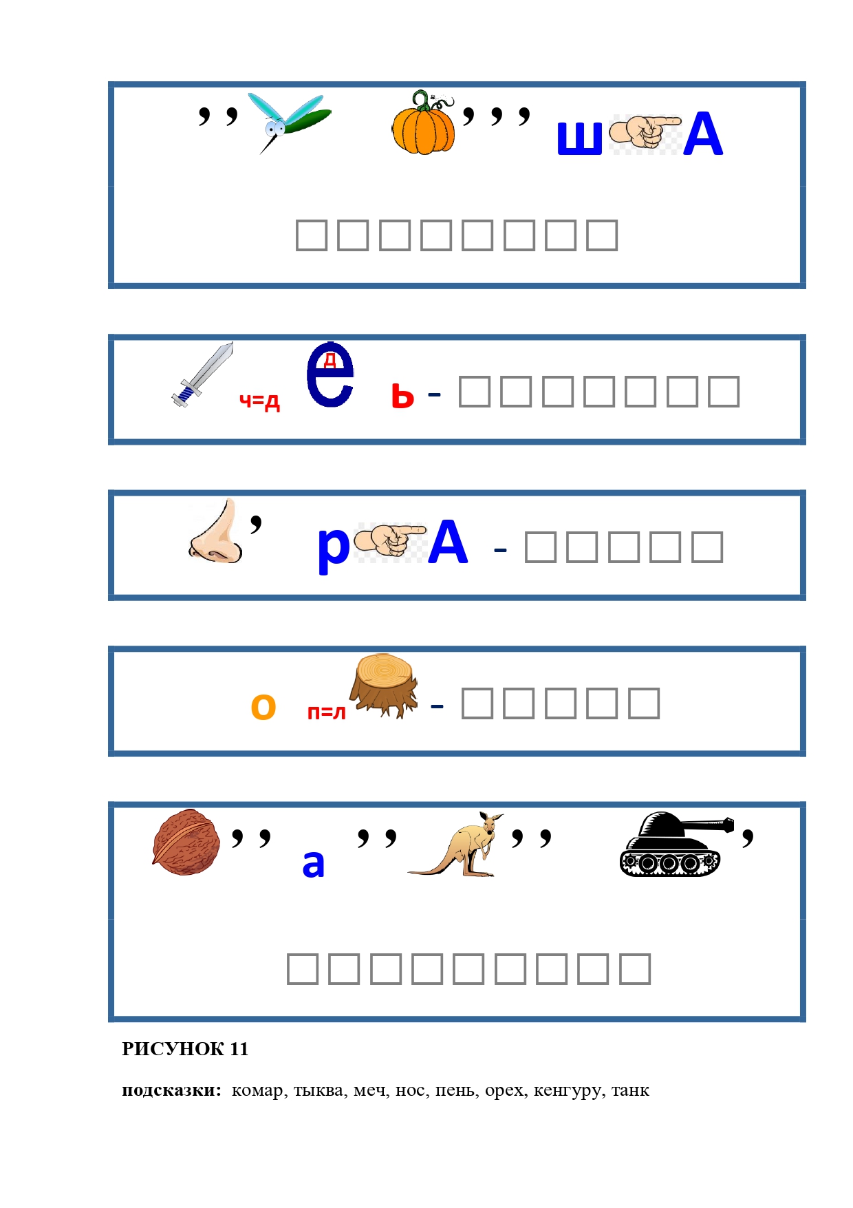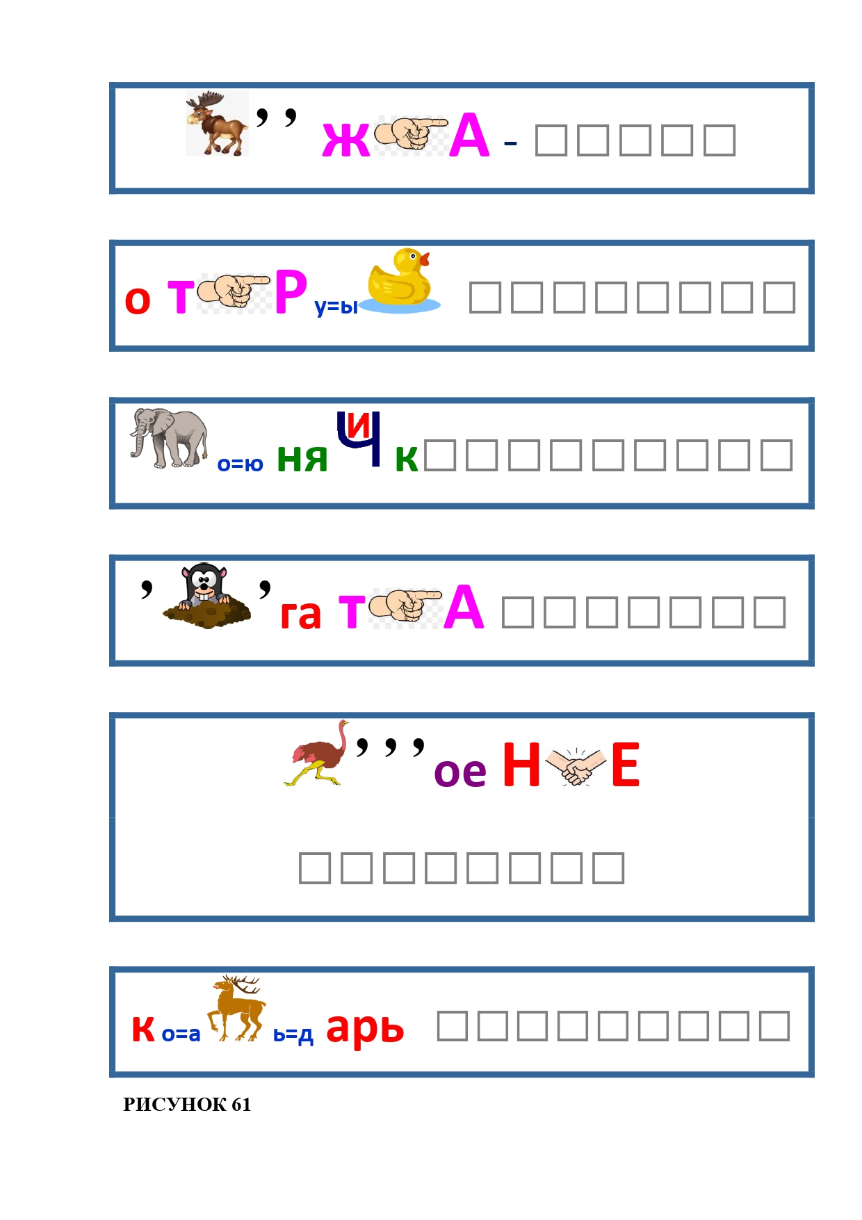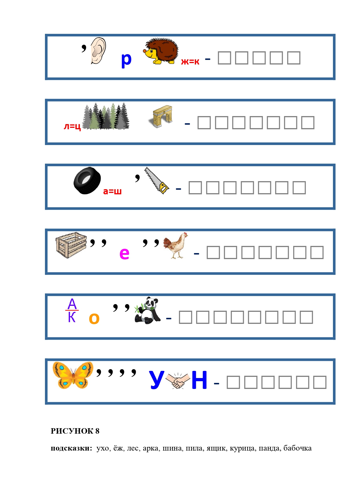 РИСУНОК 50: записка, каракатица, сеновал, клетка, лягушка
