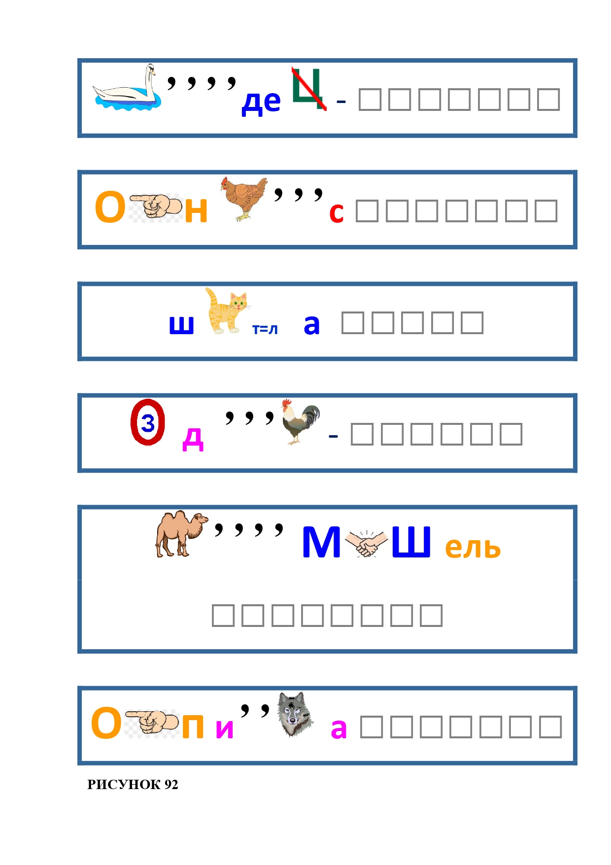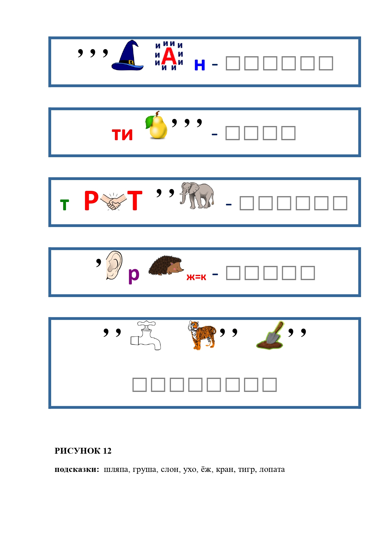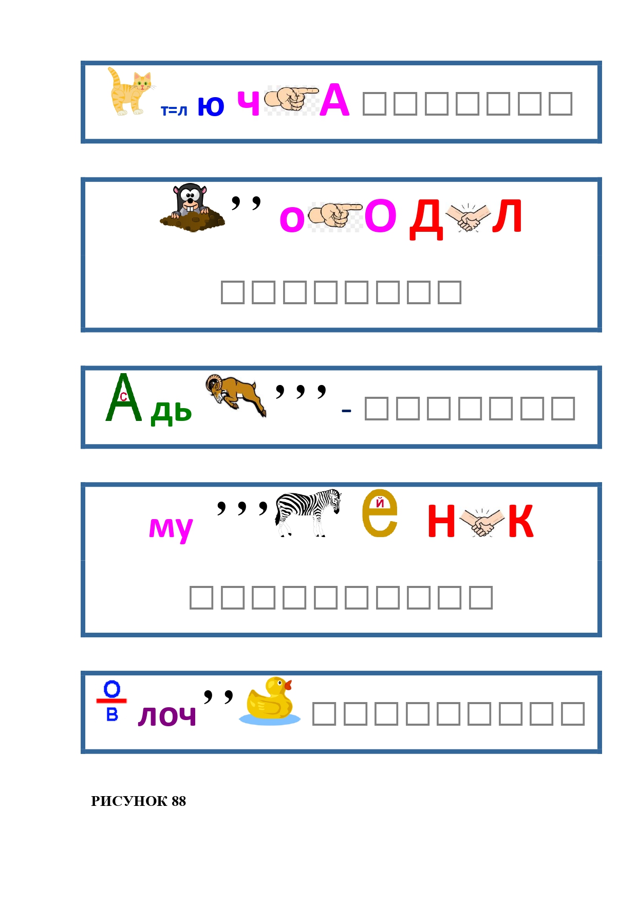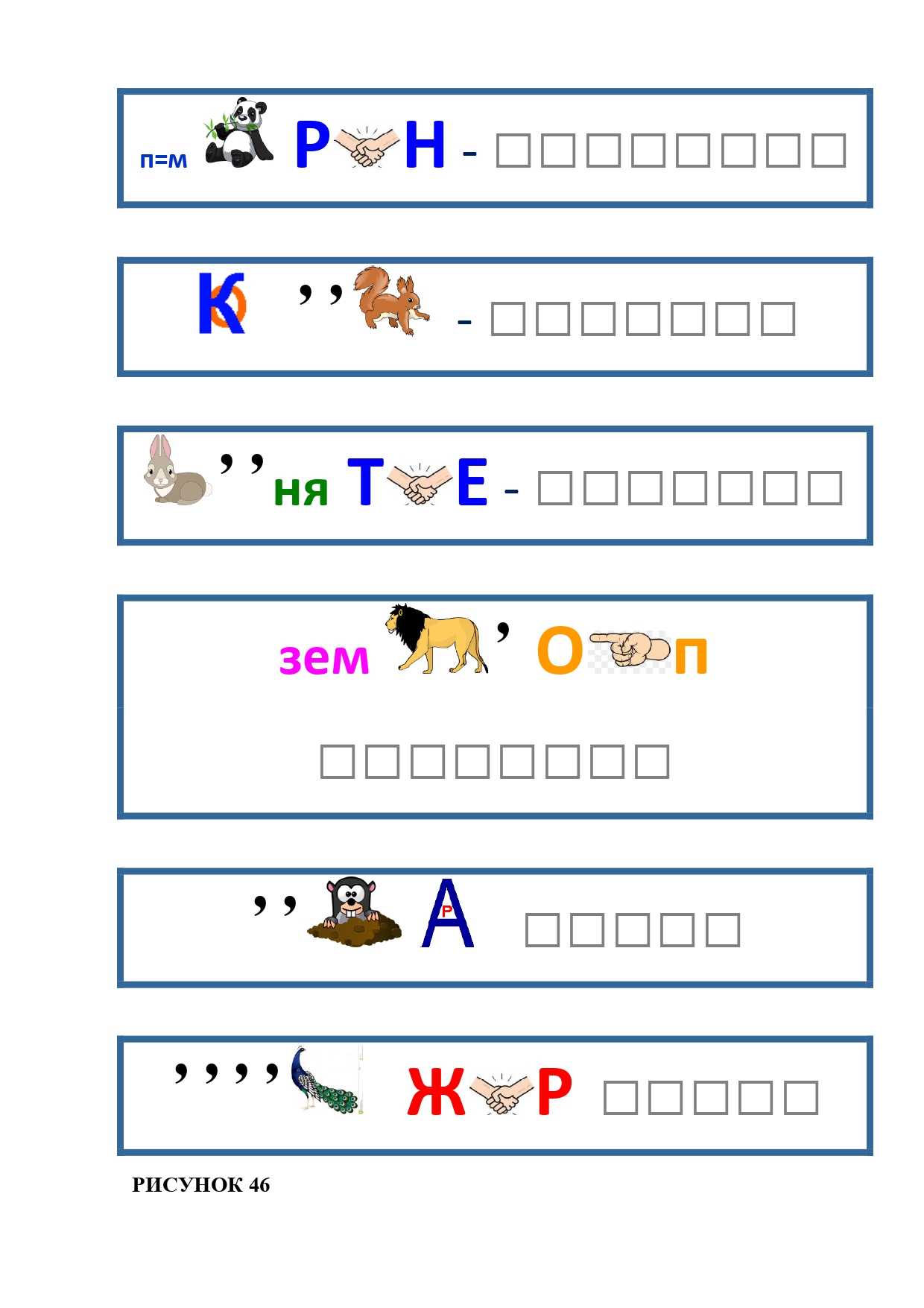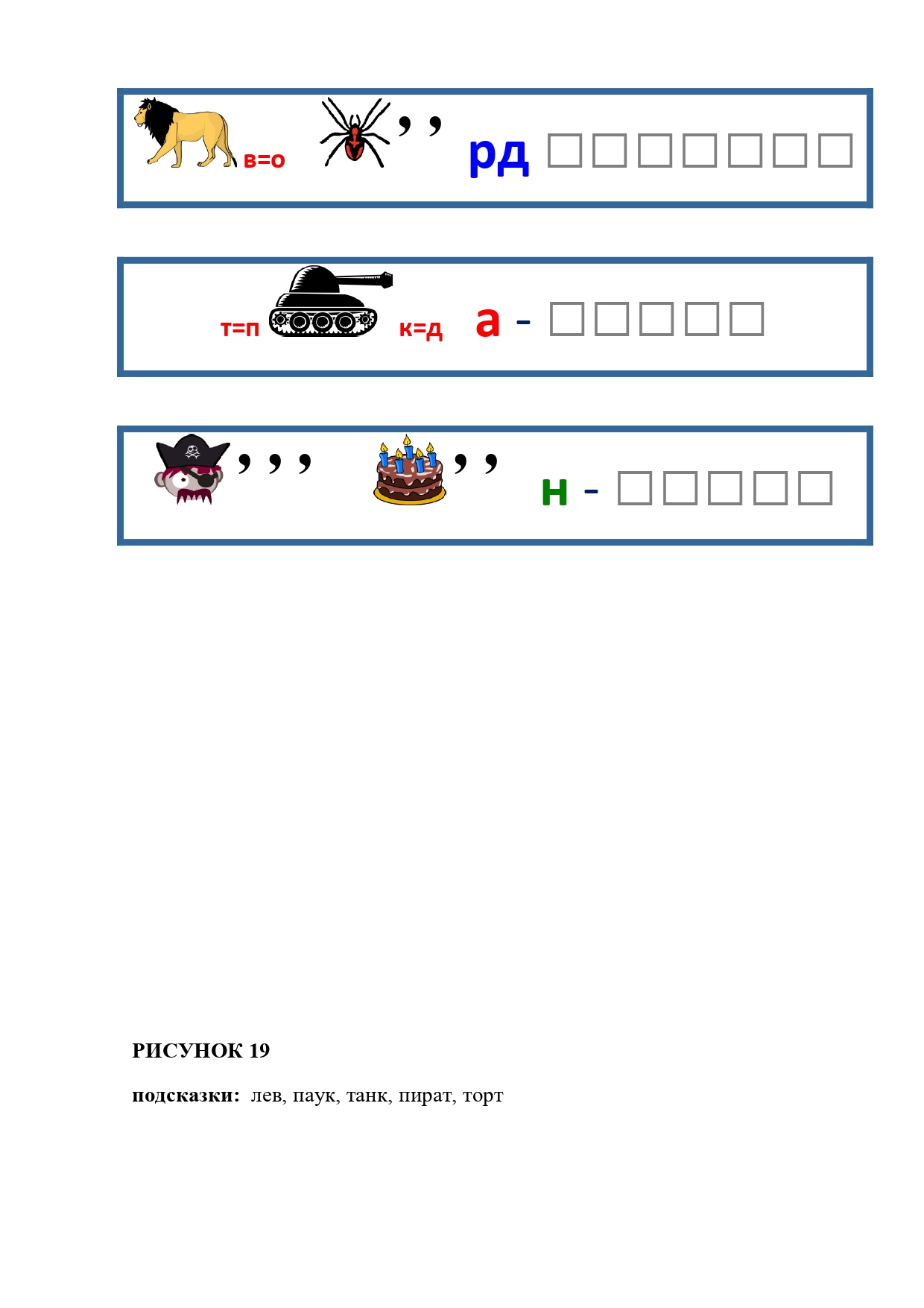 РИСУНОК 50: записка, каракатица, сеновал, клетка, лягушка