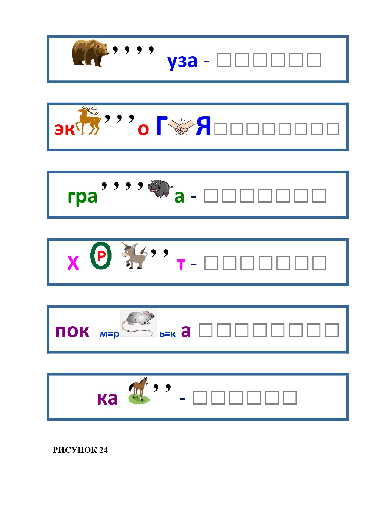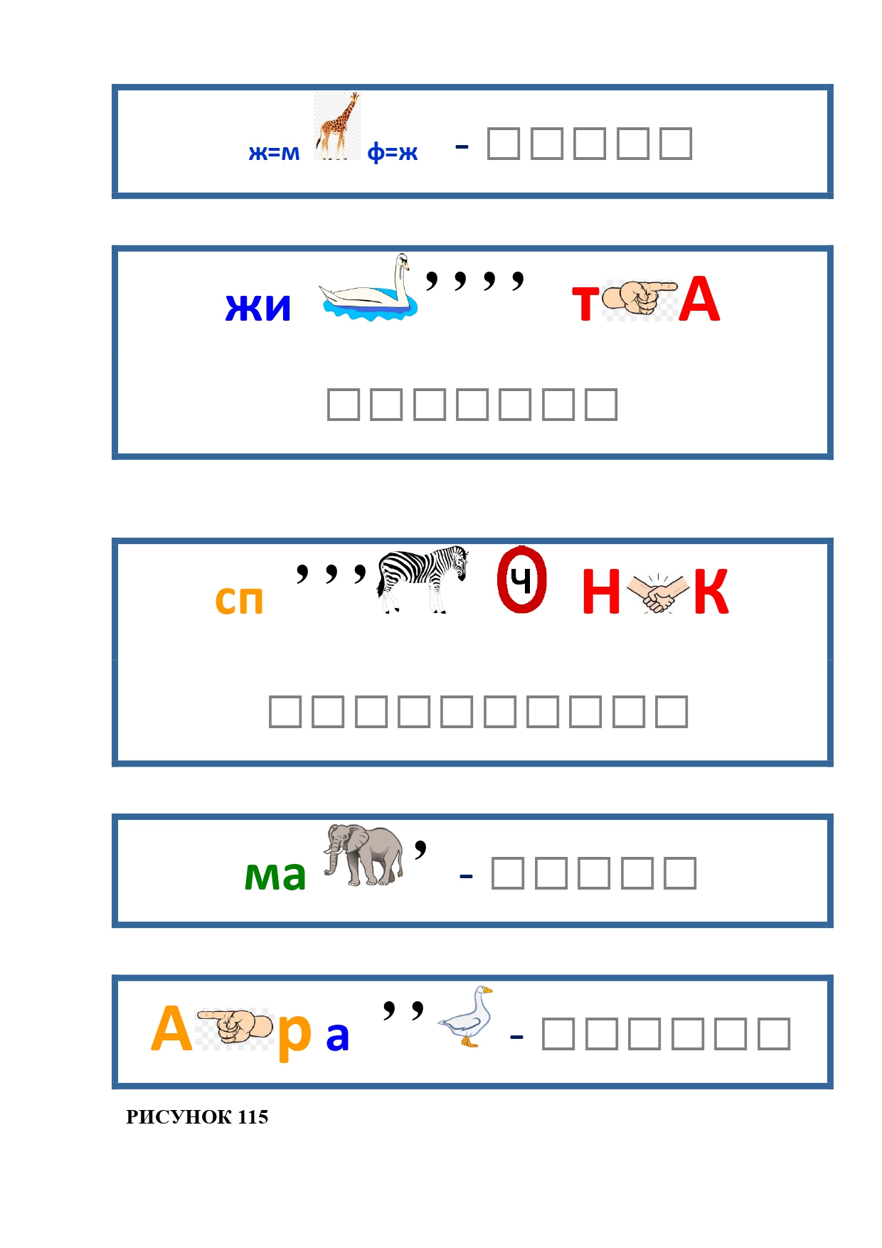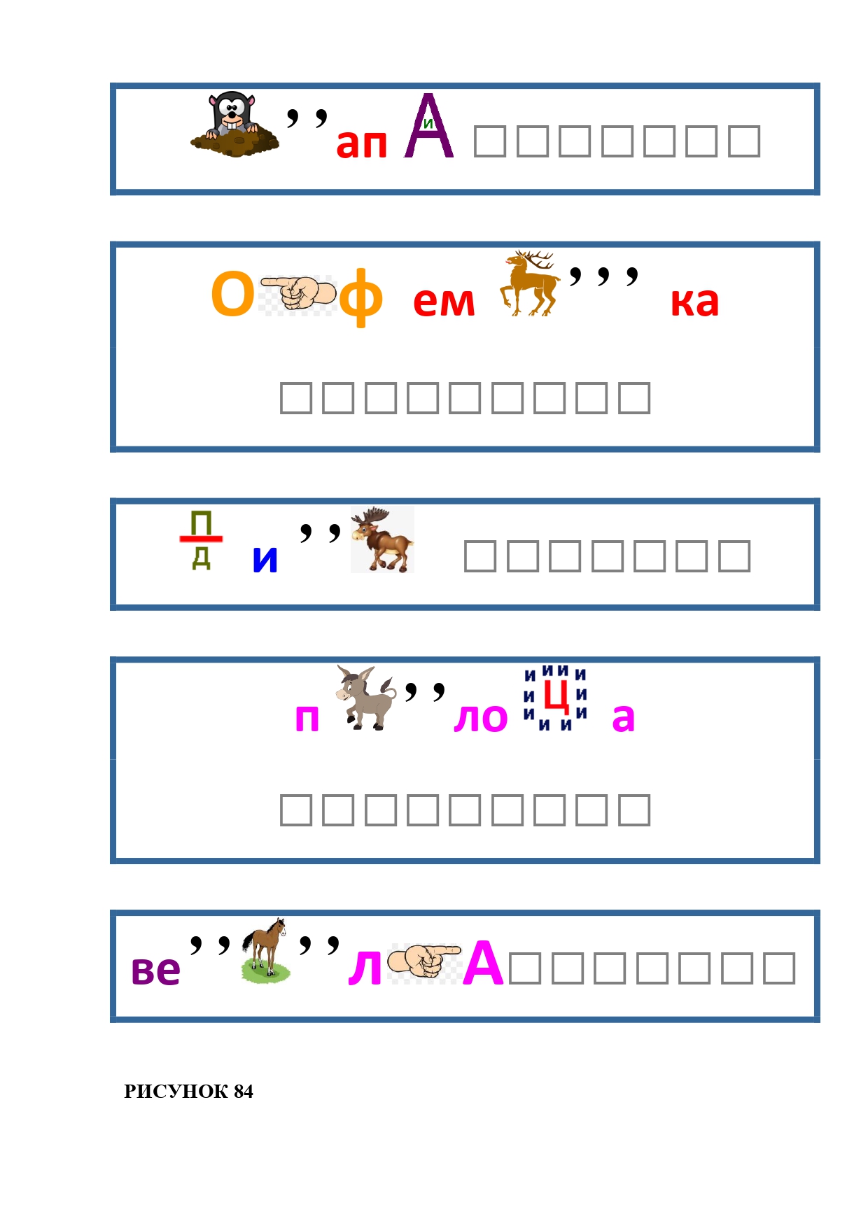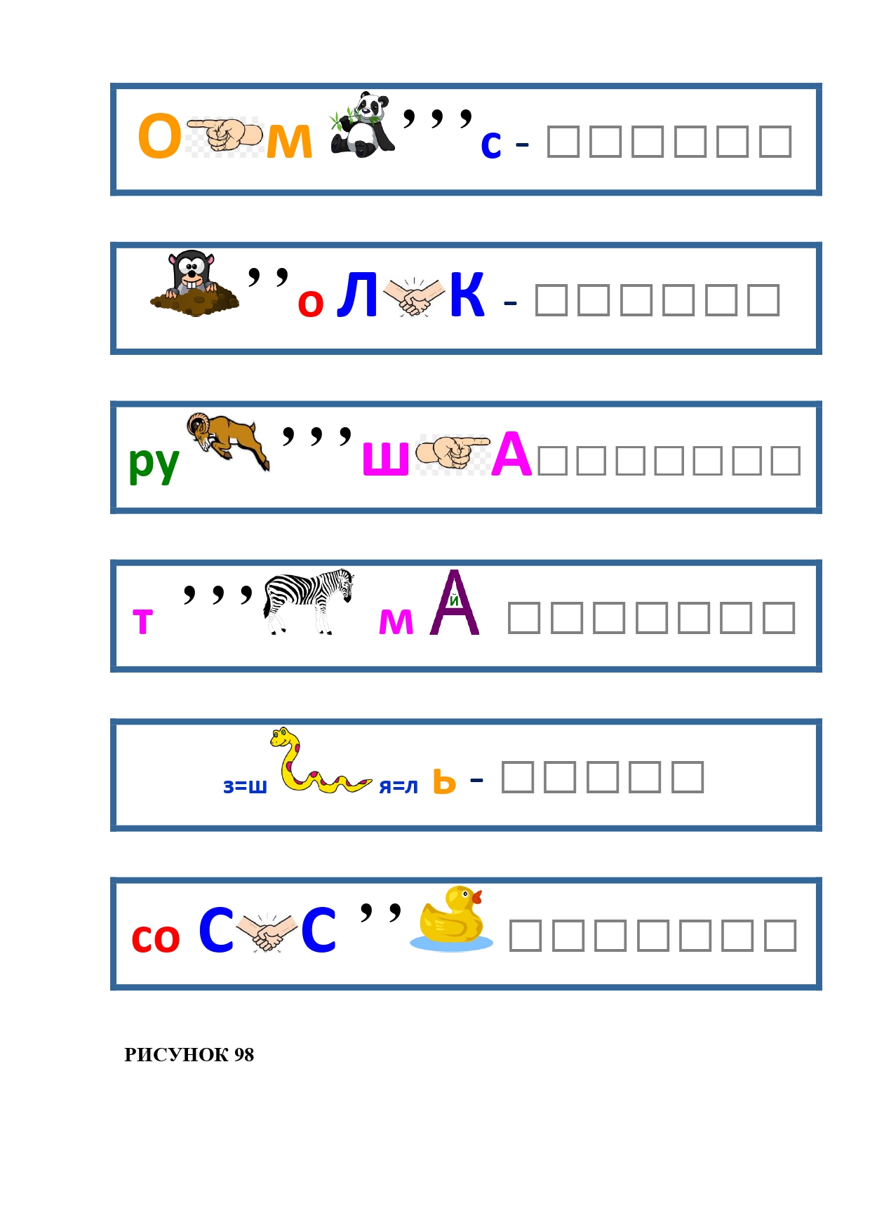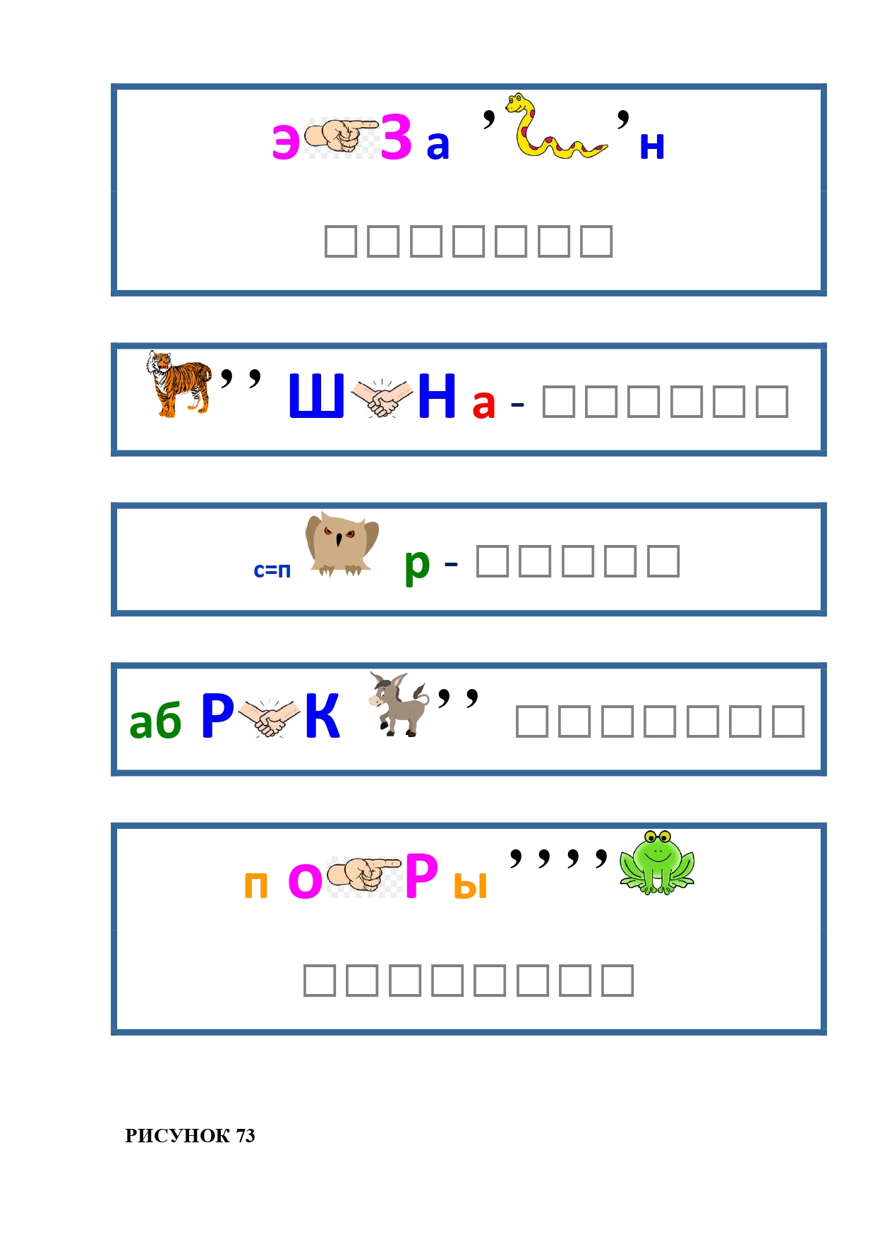 РИСУНОК 50: записка, каракатица, сеновал, клетка, лягушка