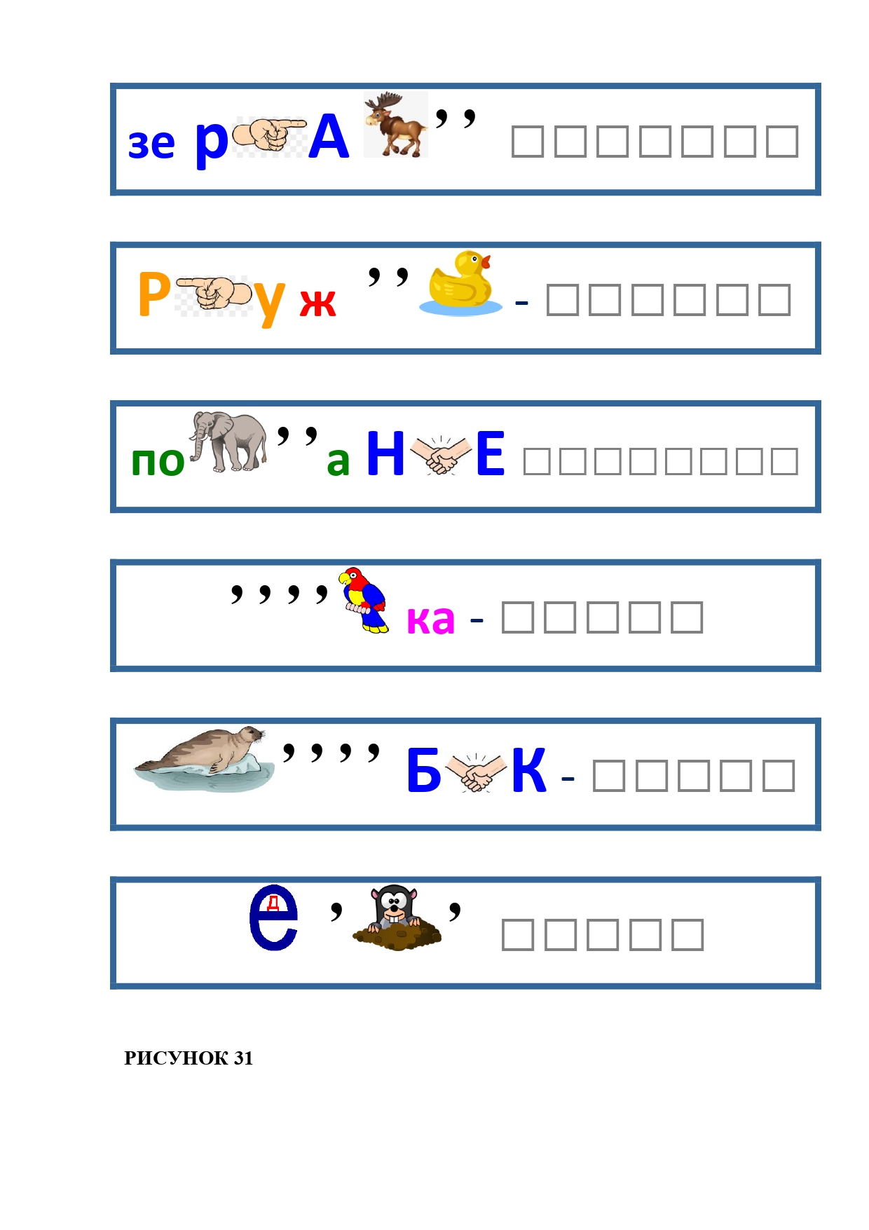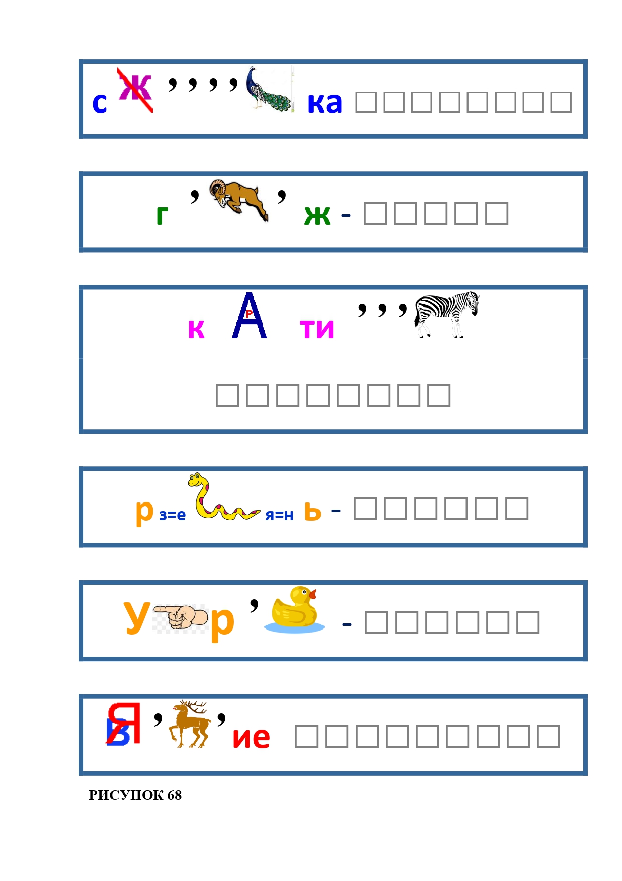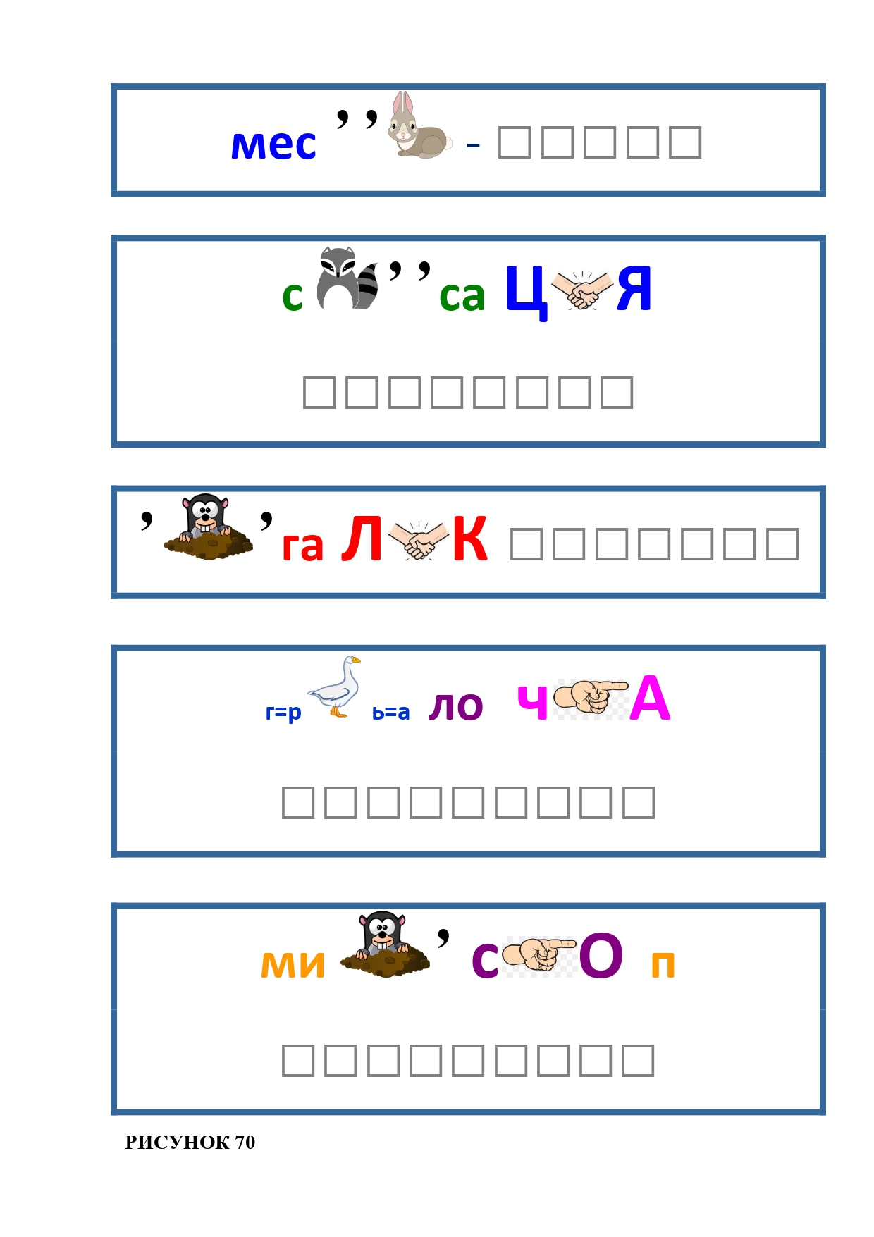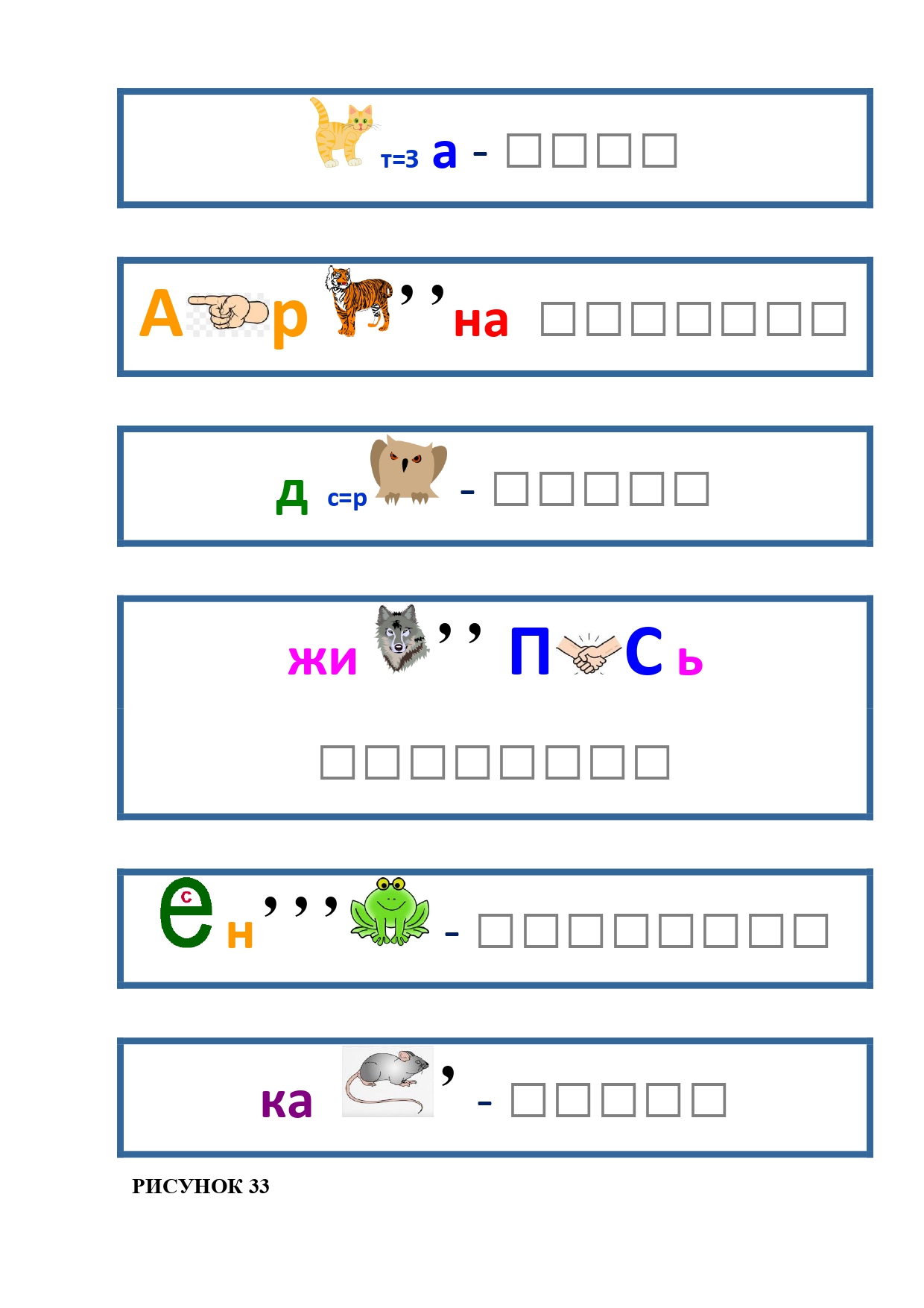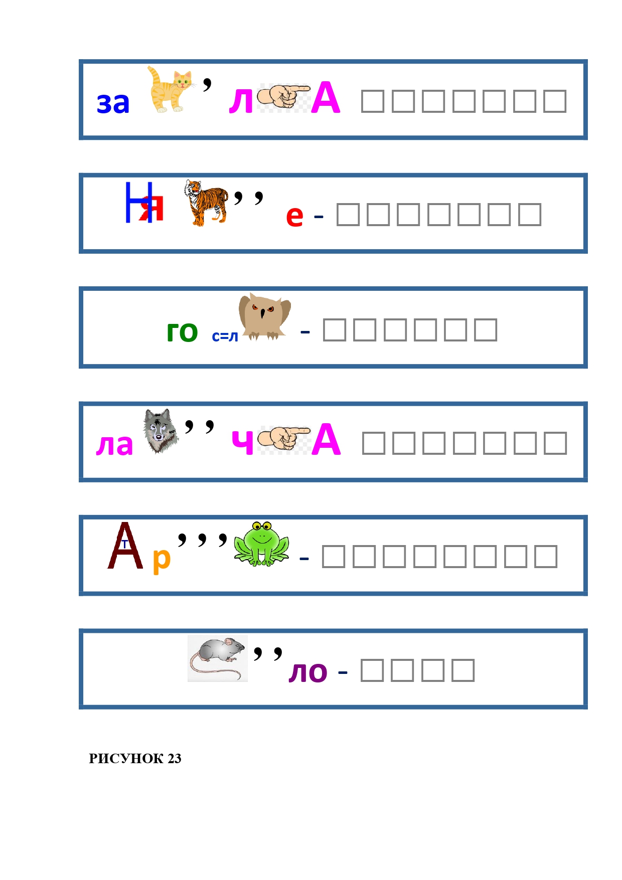 РИСУНОК 50: записка, каракатица, сеновал, клетка, лягушка