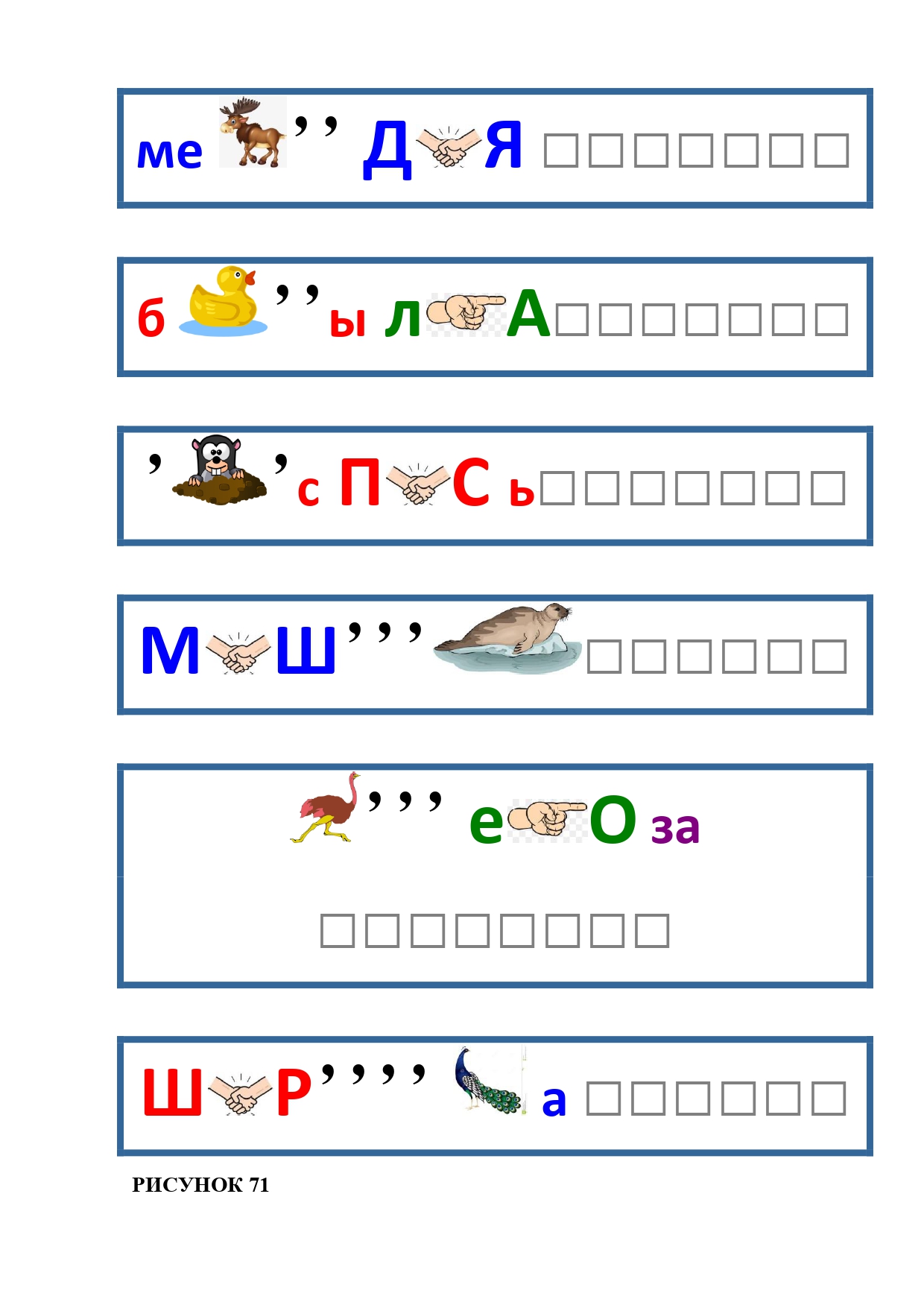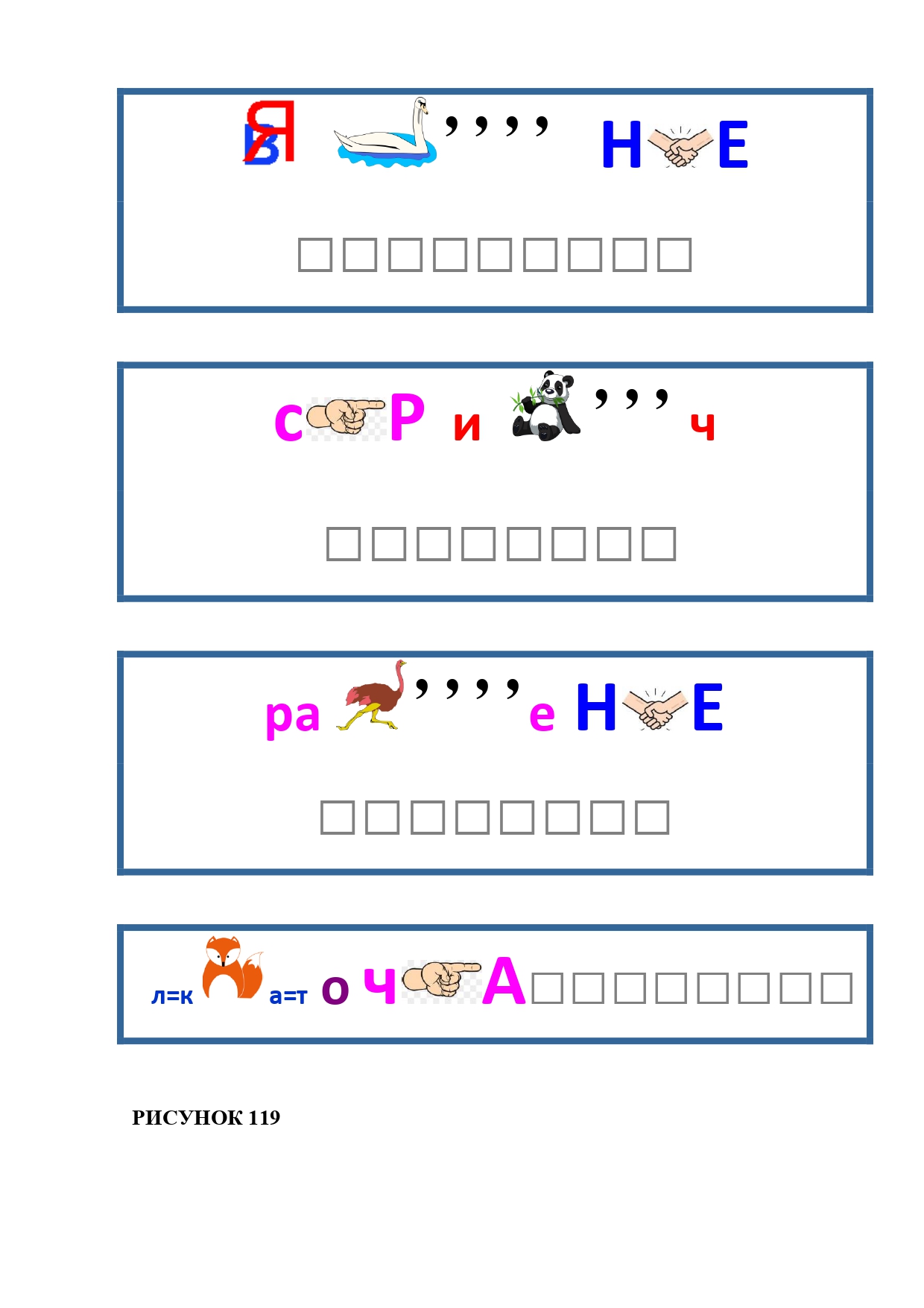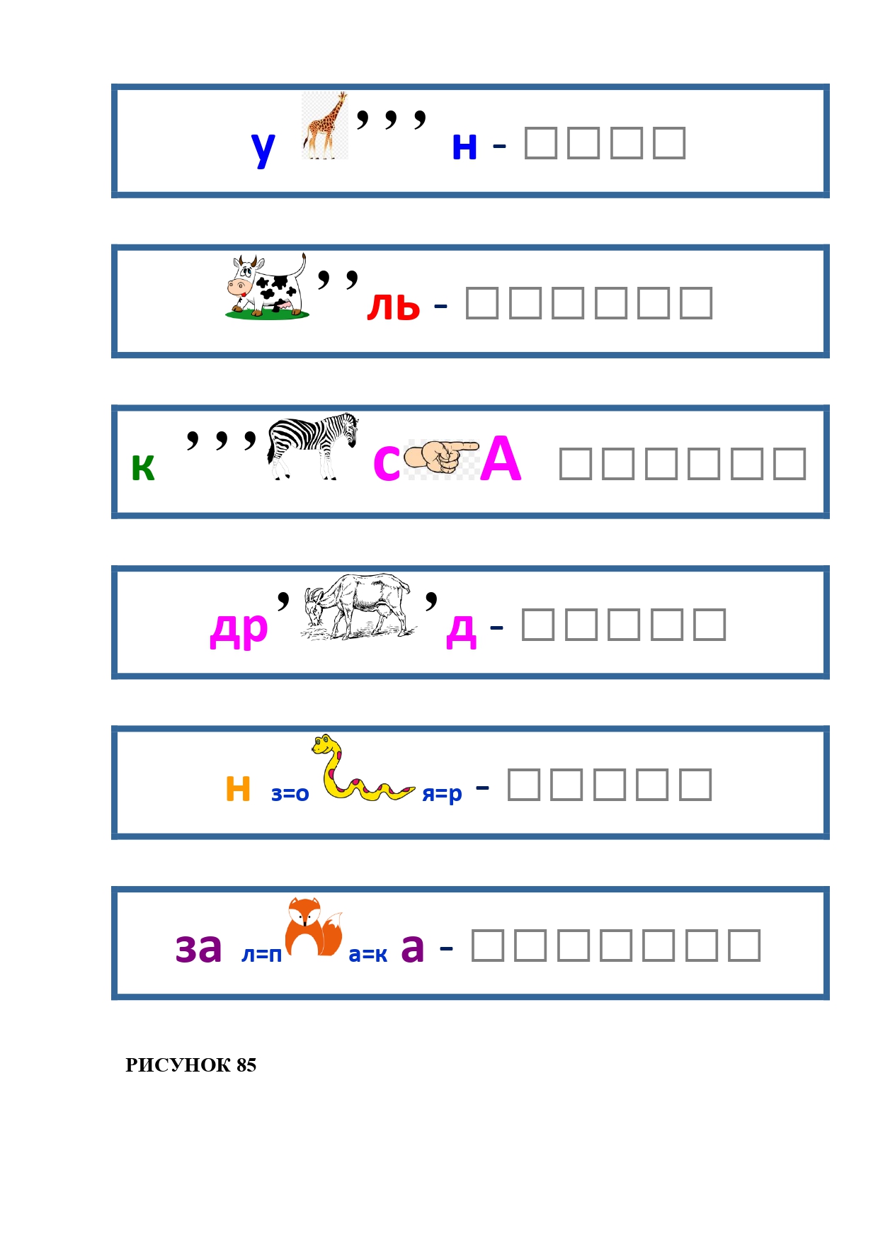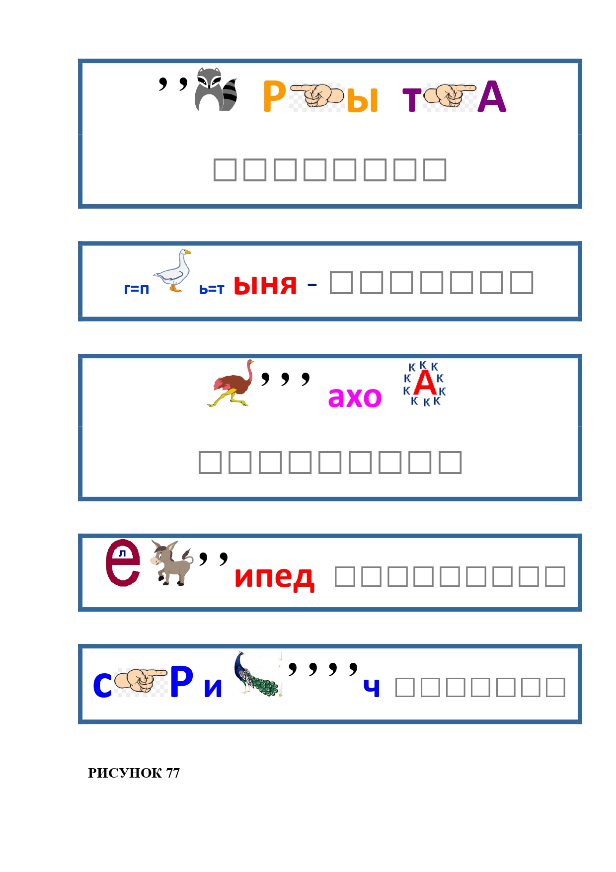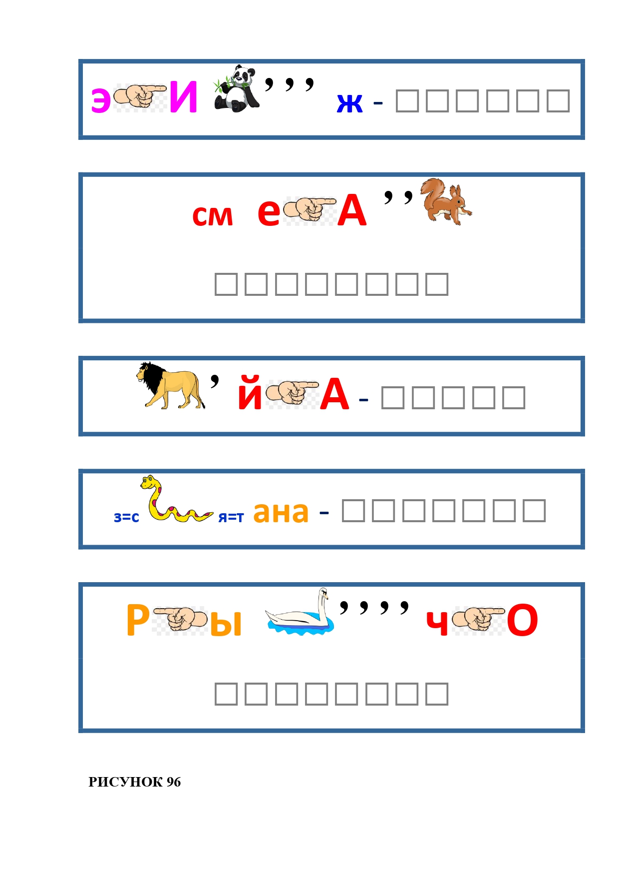 РИСУНОК 50: записка, каракатица, сеновал, клетка, лягушка