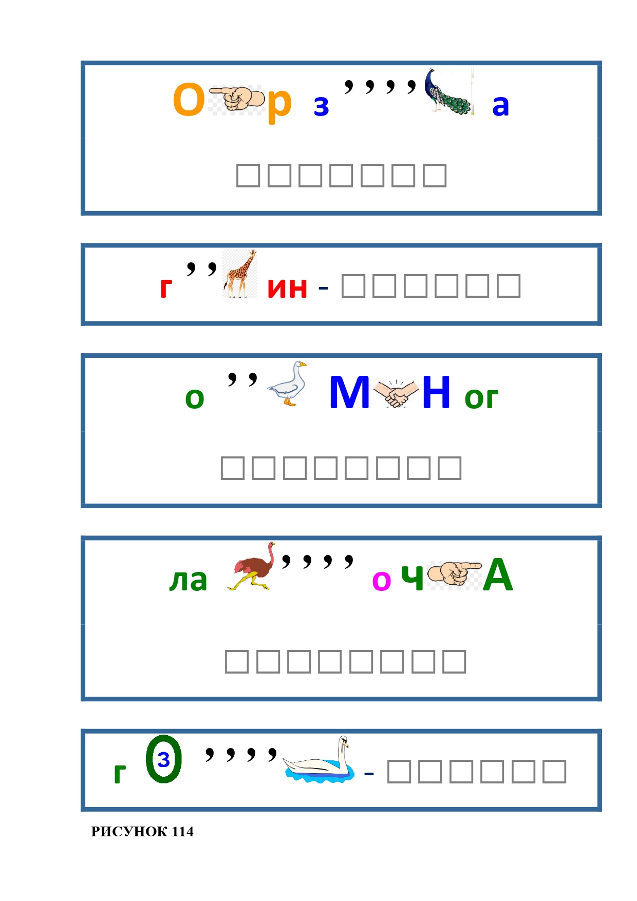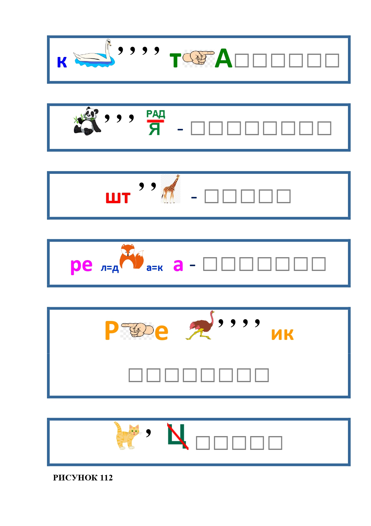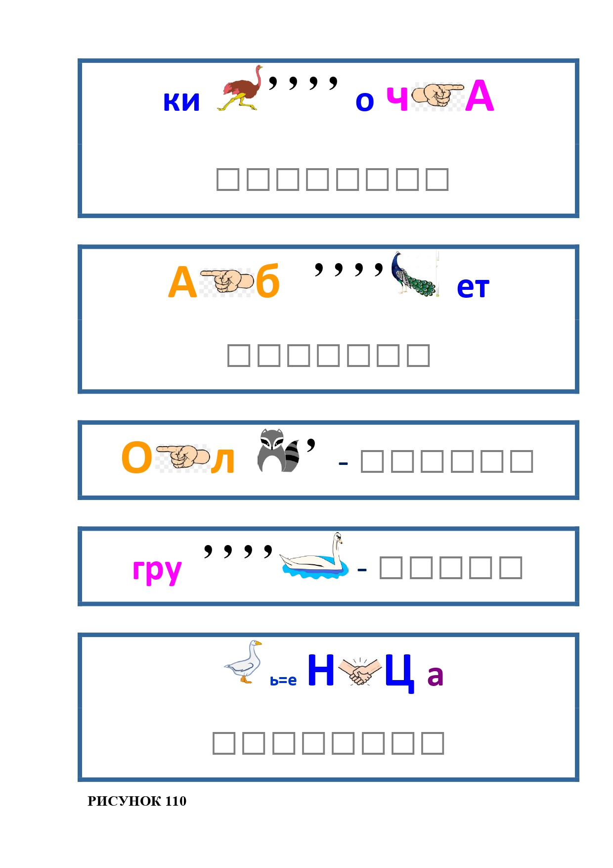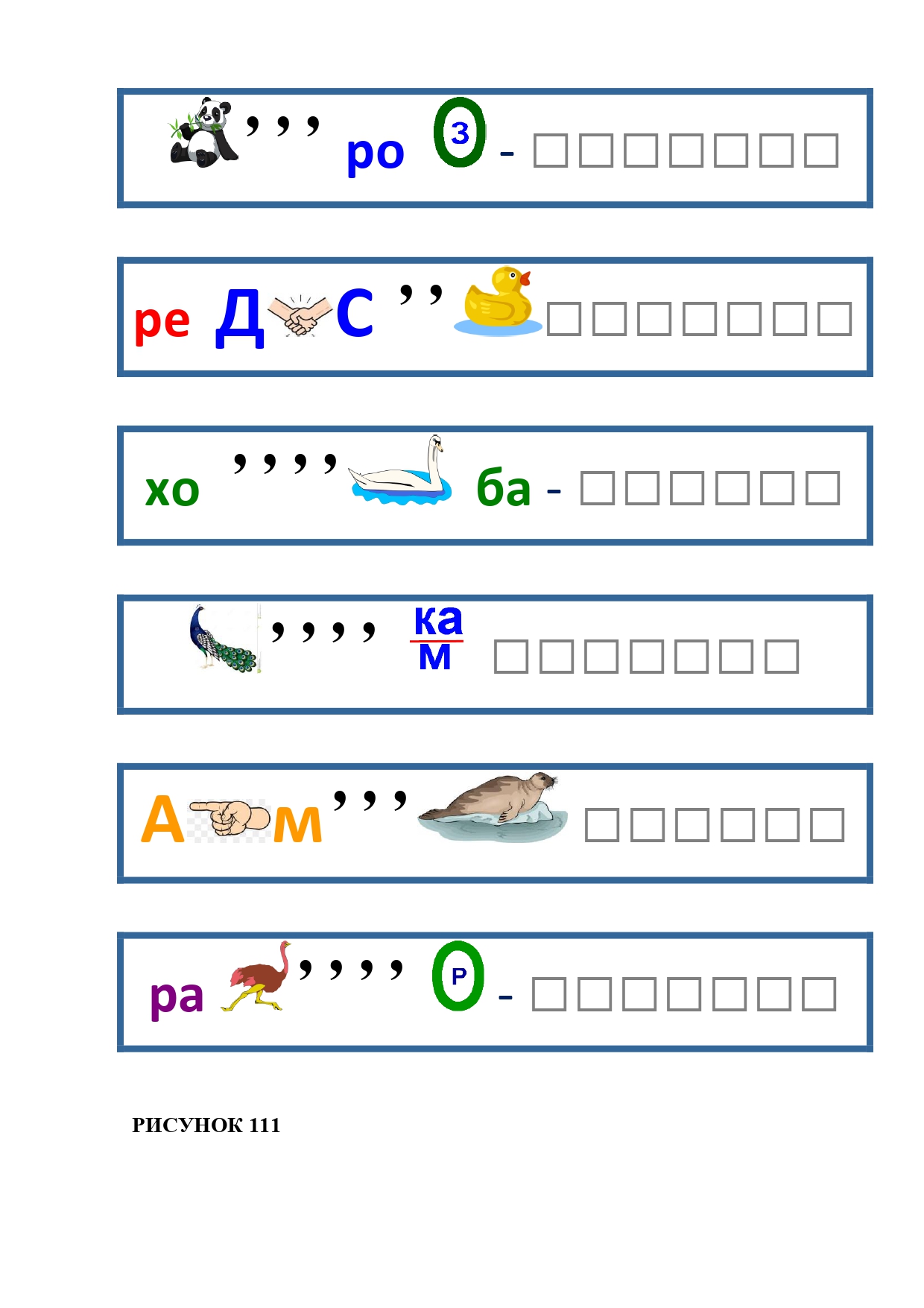 РИСУНОК 111: паровоз, редиска, ходьба, панамка, камень, раствор