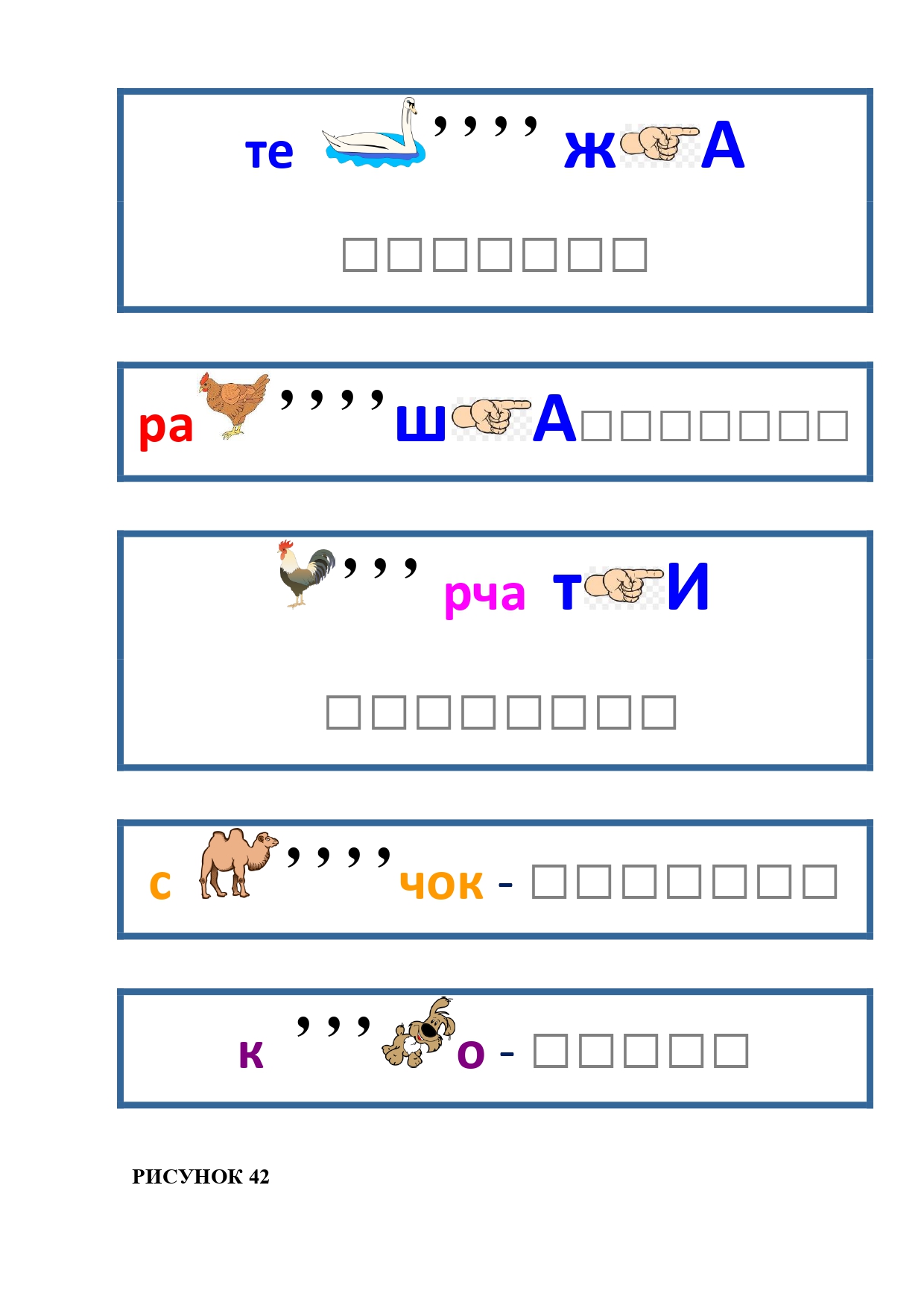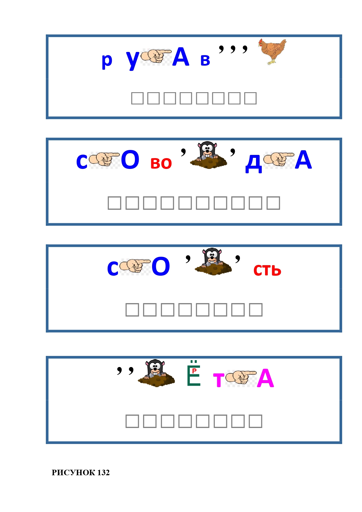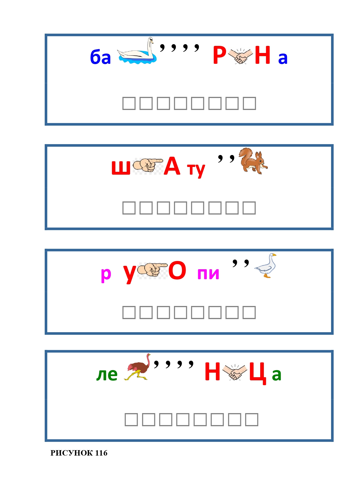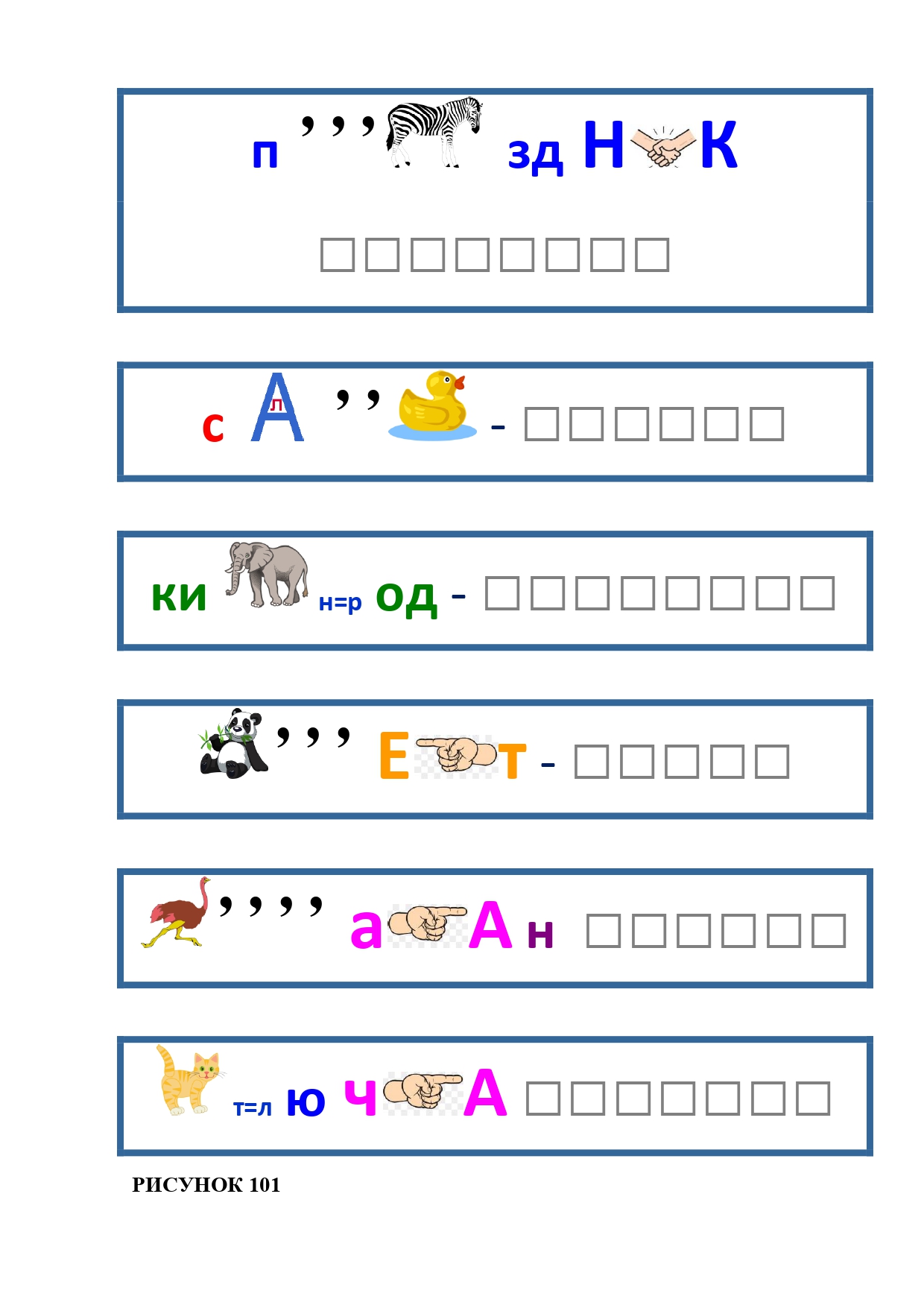 РИСУНОК 111: паровоз, редиска, ходьба, панамка, камень, раствор