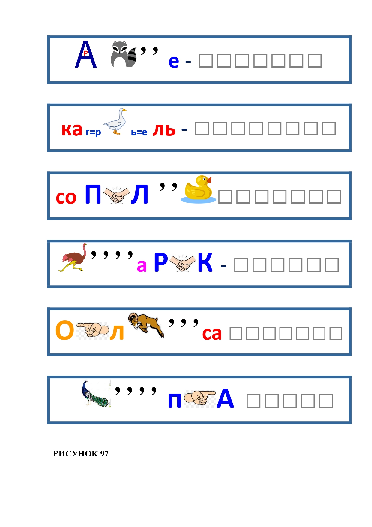 РИСУНОК 97: варенье, карусель, сопилка, старик, колбаса, папка