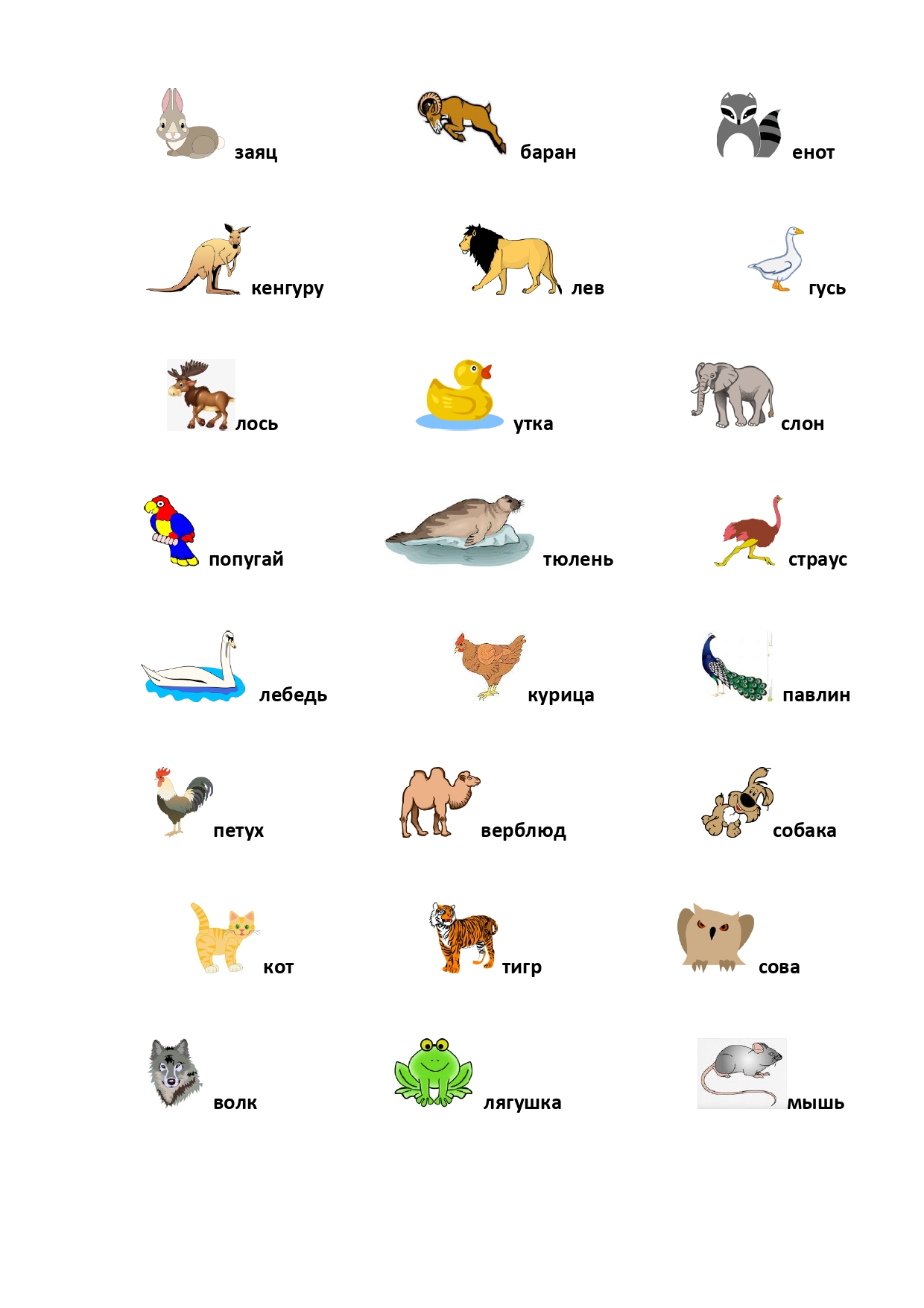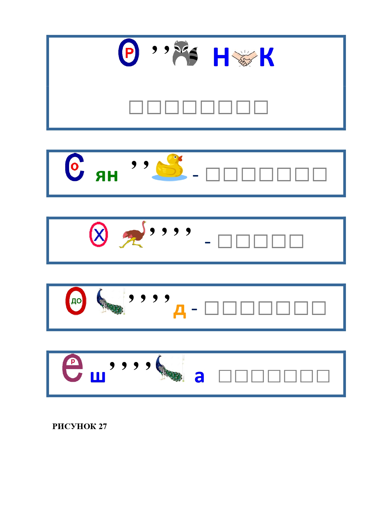 РИСУНОК 4: утка, голуб, попугай, канарейка, страус, буйвол