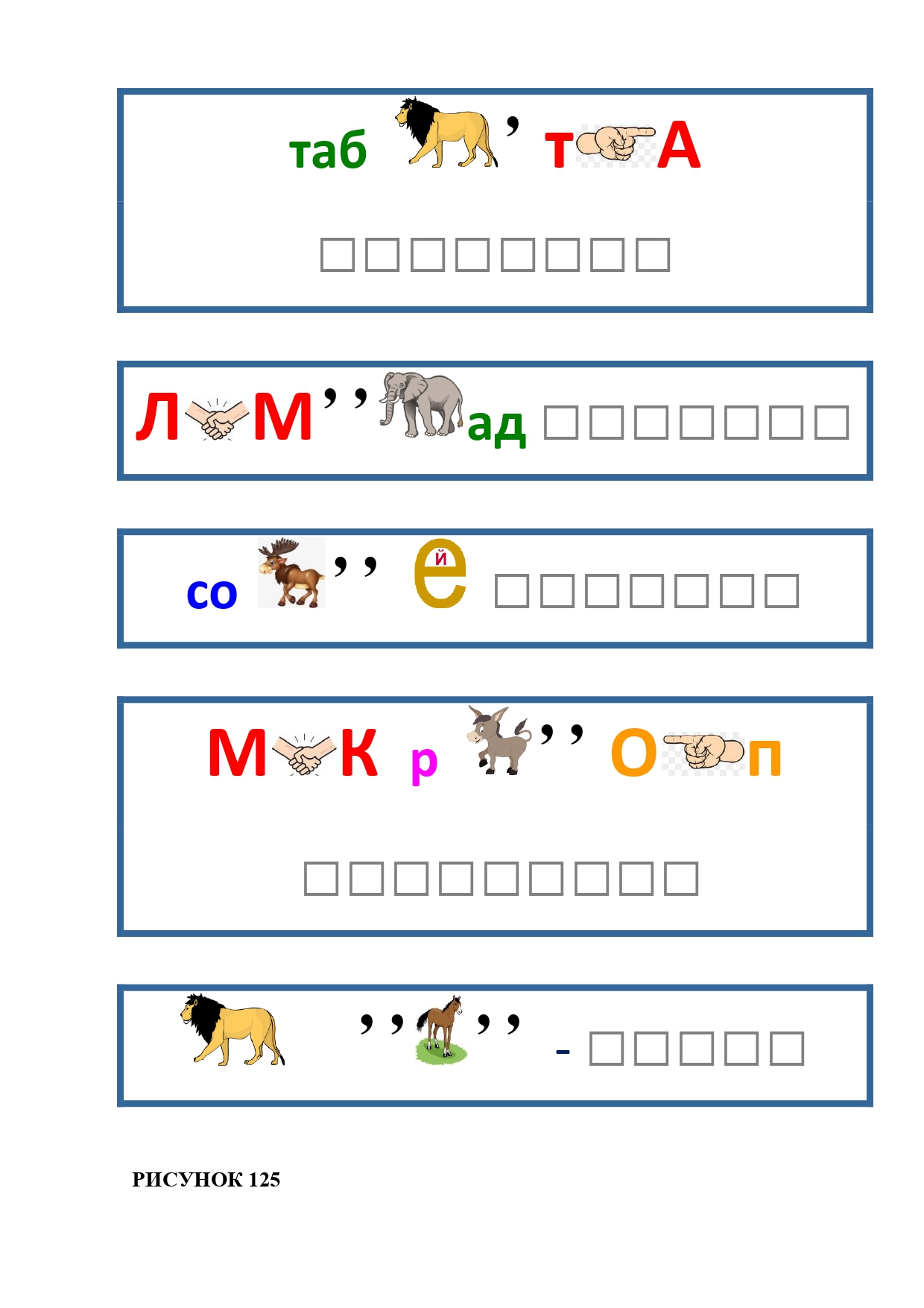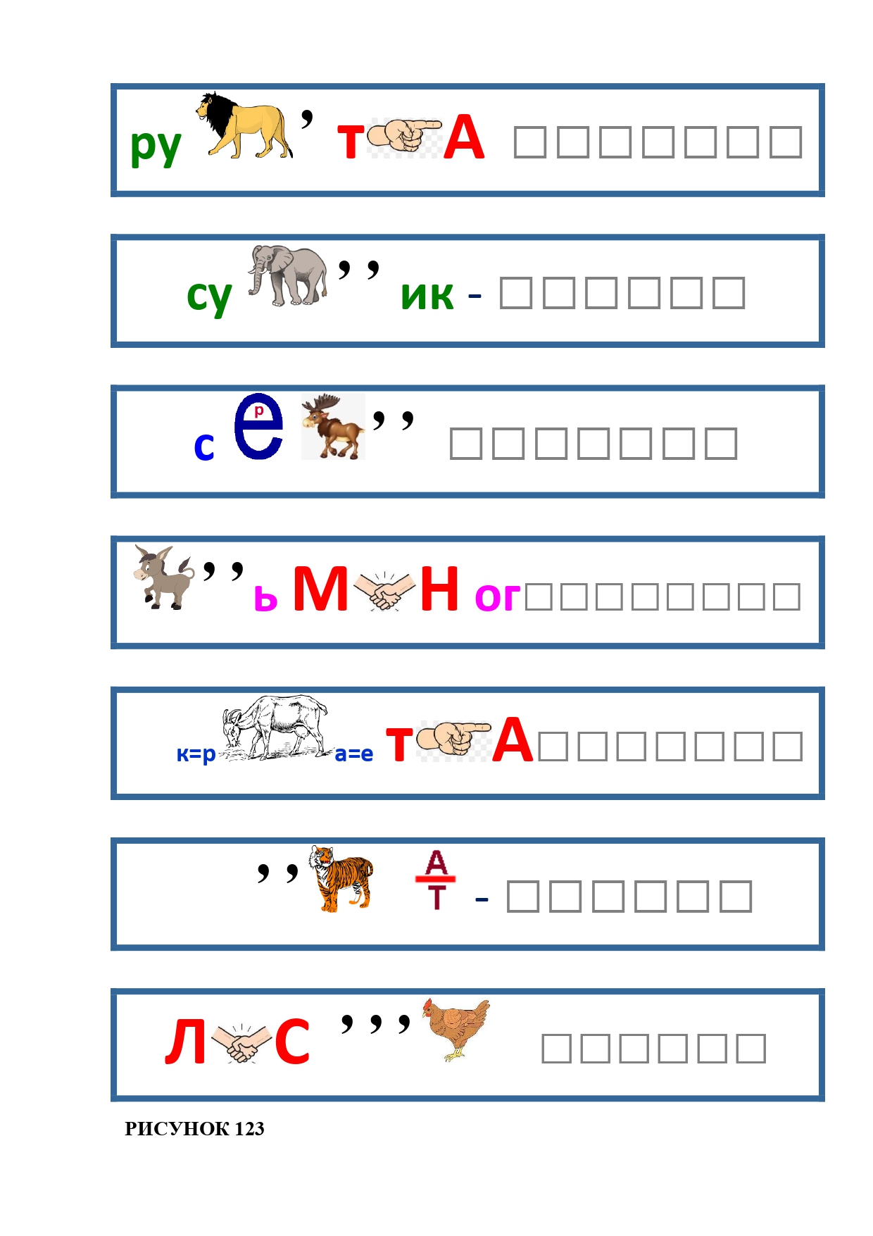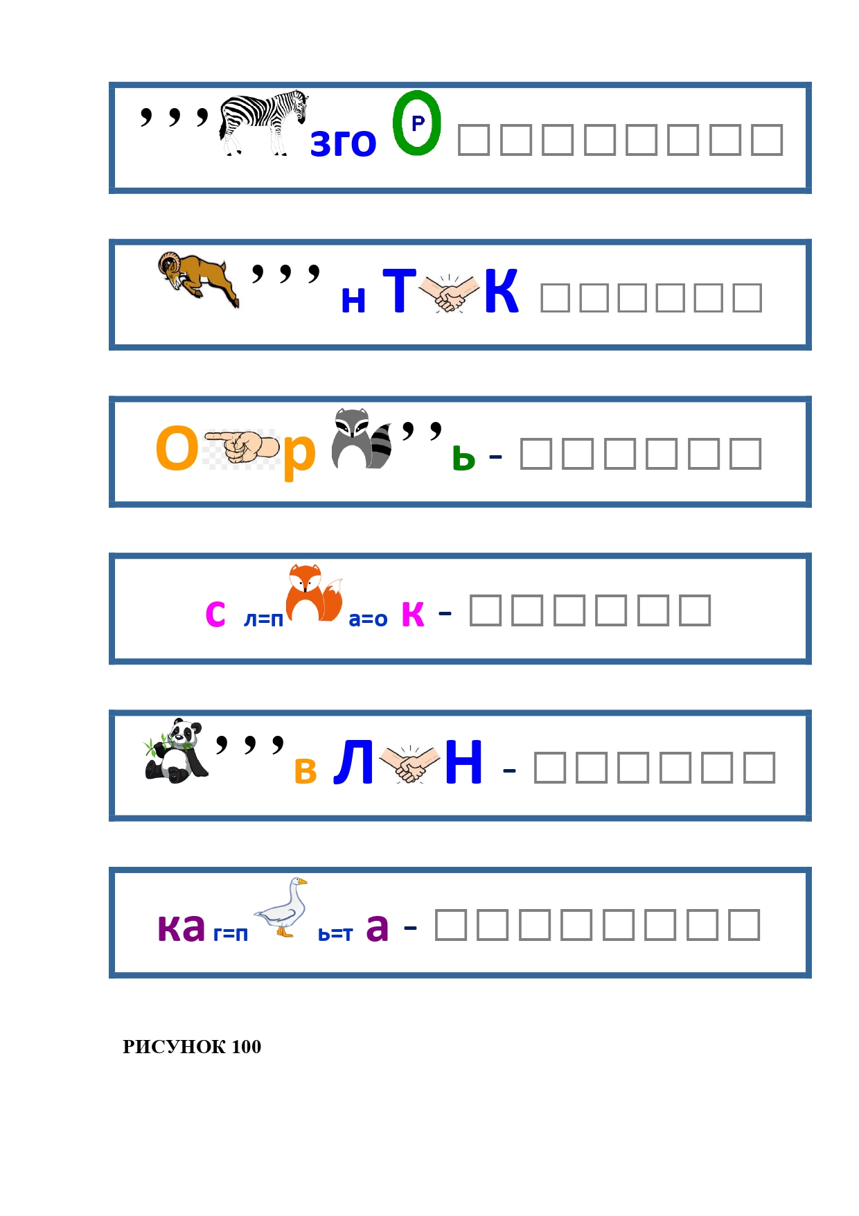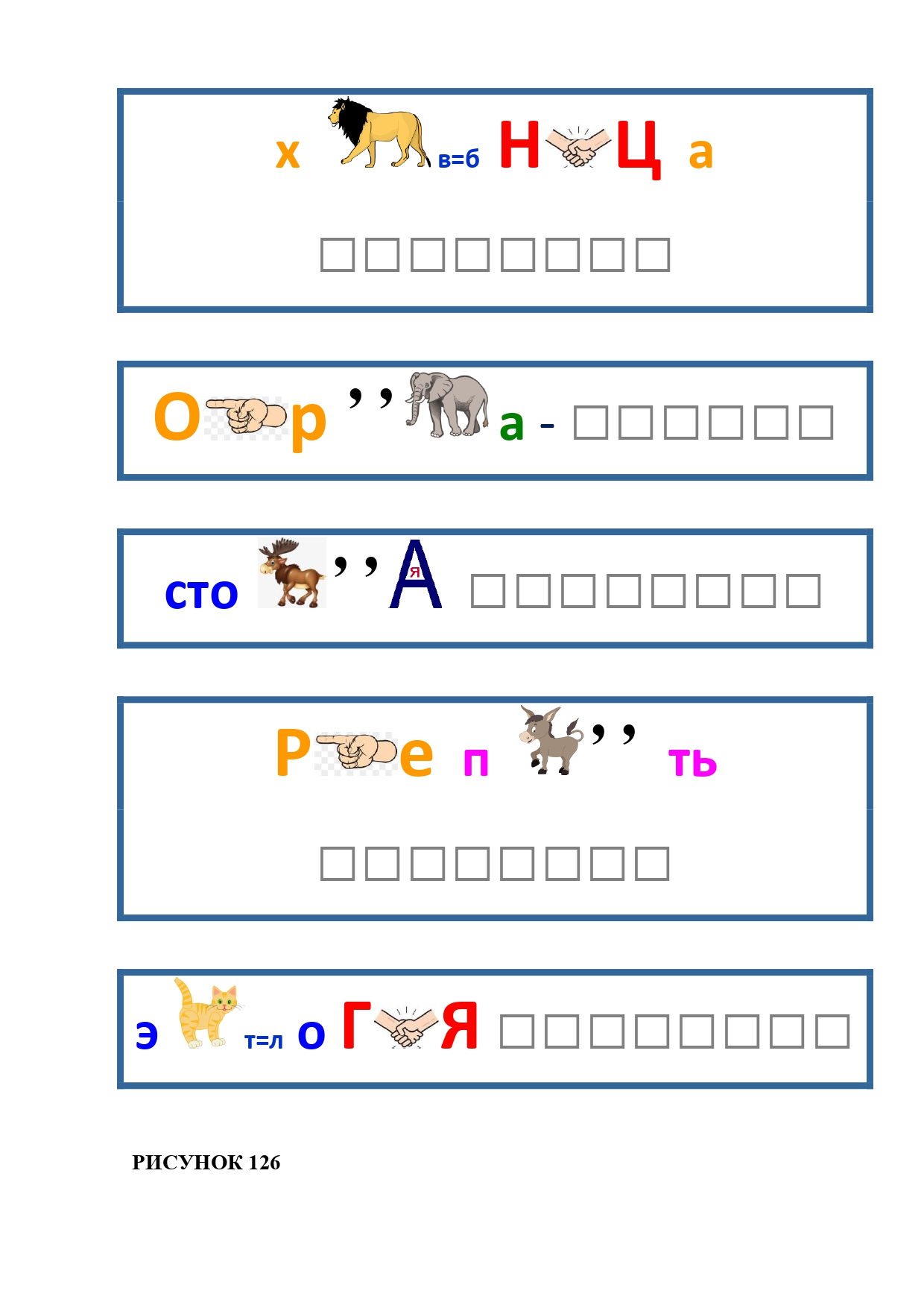 РИСУНОК 6: козёл, конь, кот, лебедь, лама, пчела