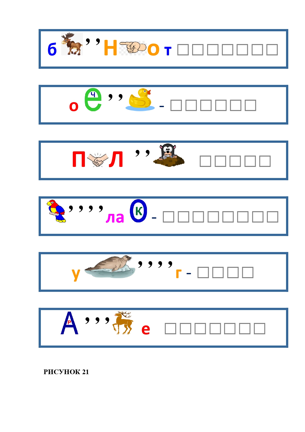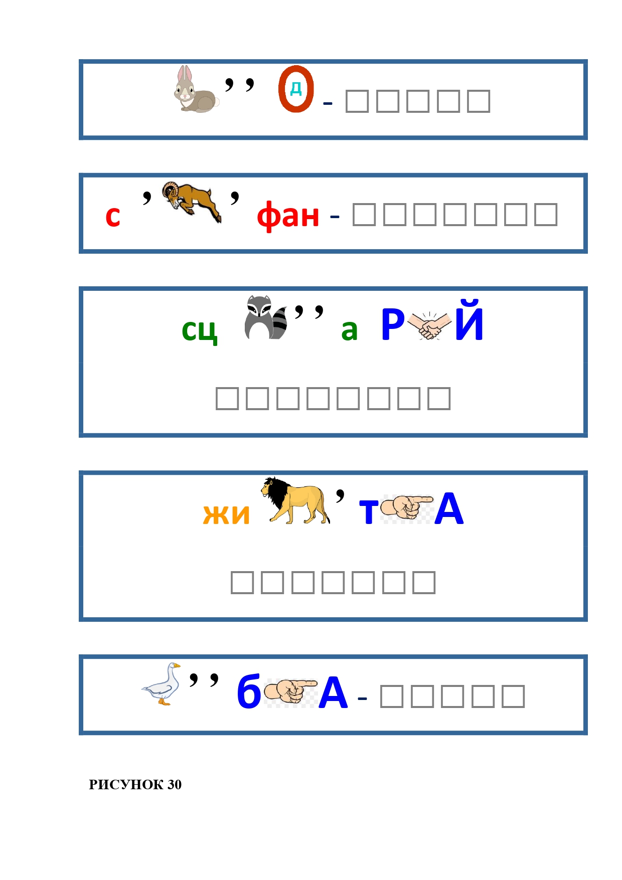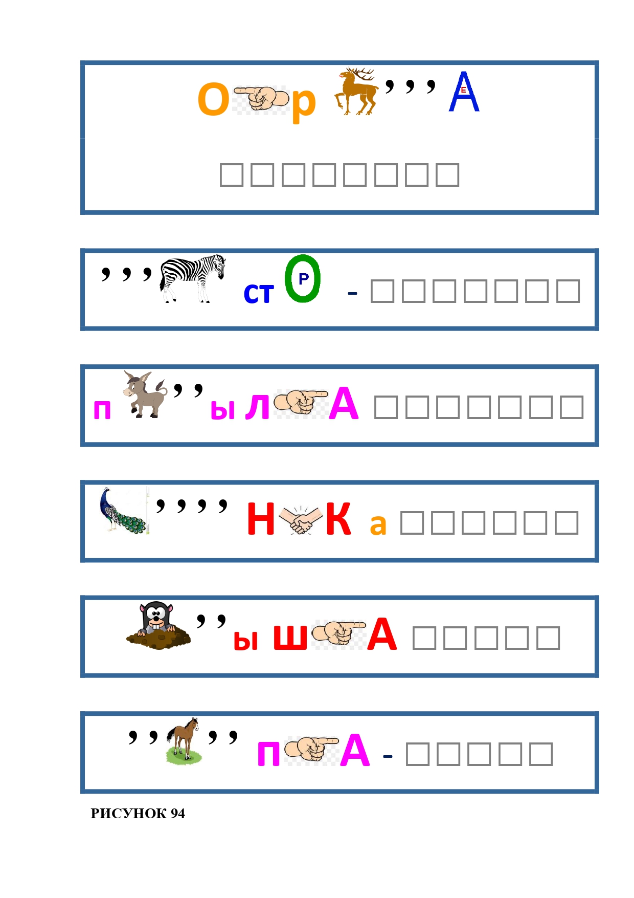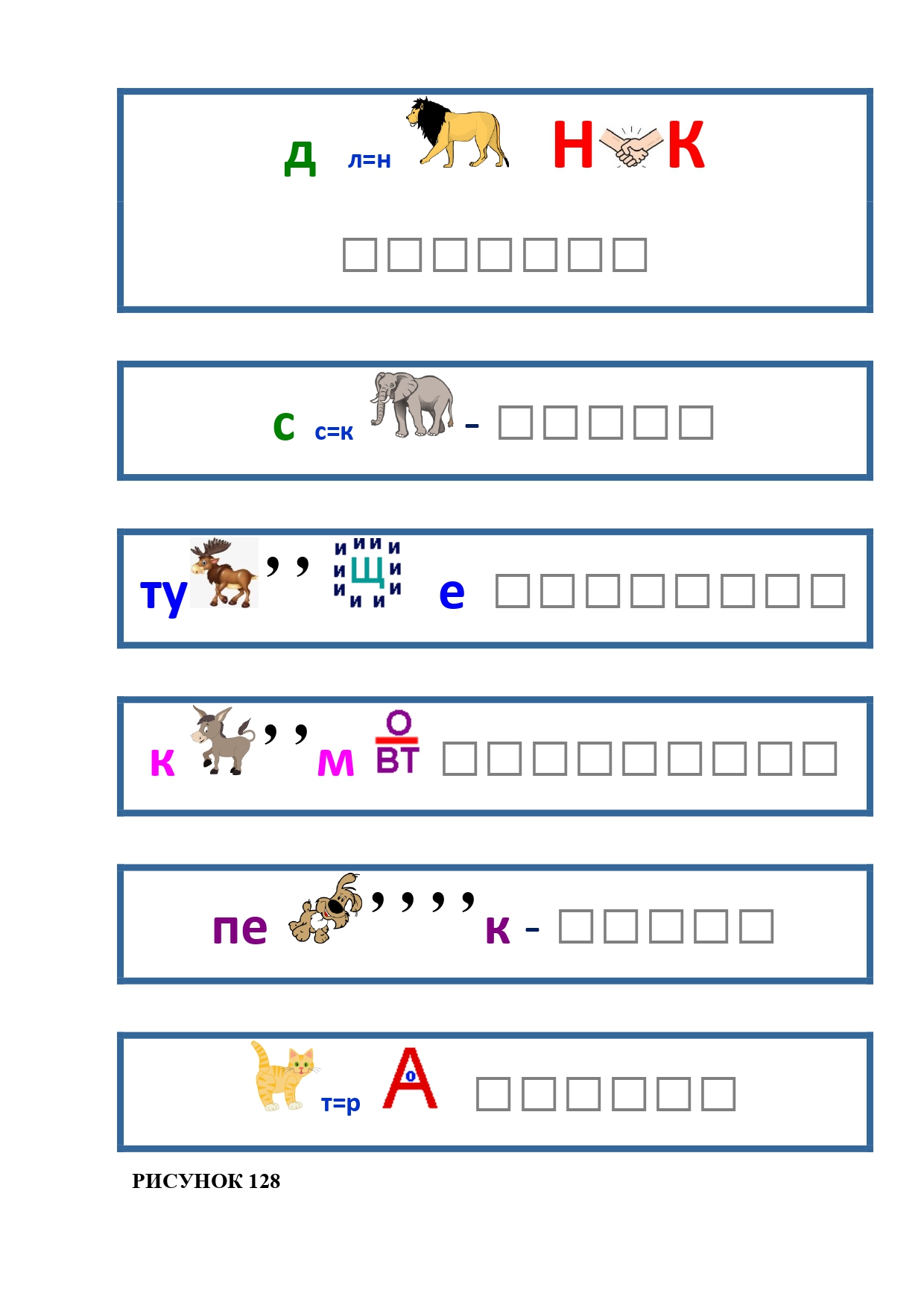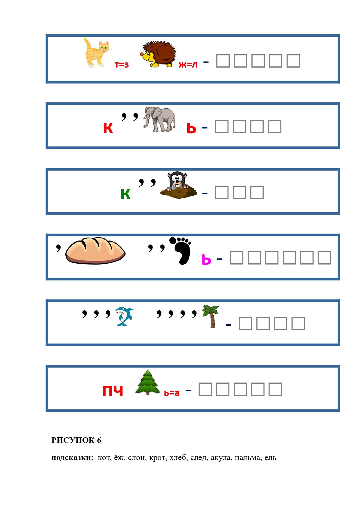 РИСУНОК 6: козёл, конь, кот, лебедь, лама, пчела