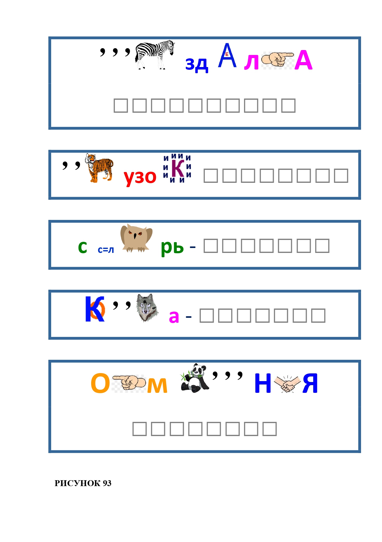 РИСУНОК 93: раздевалка, грузовик, словарь, заколка, компания