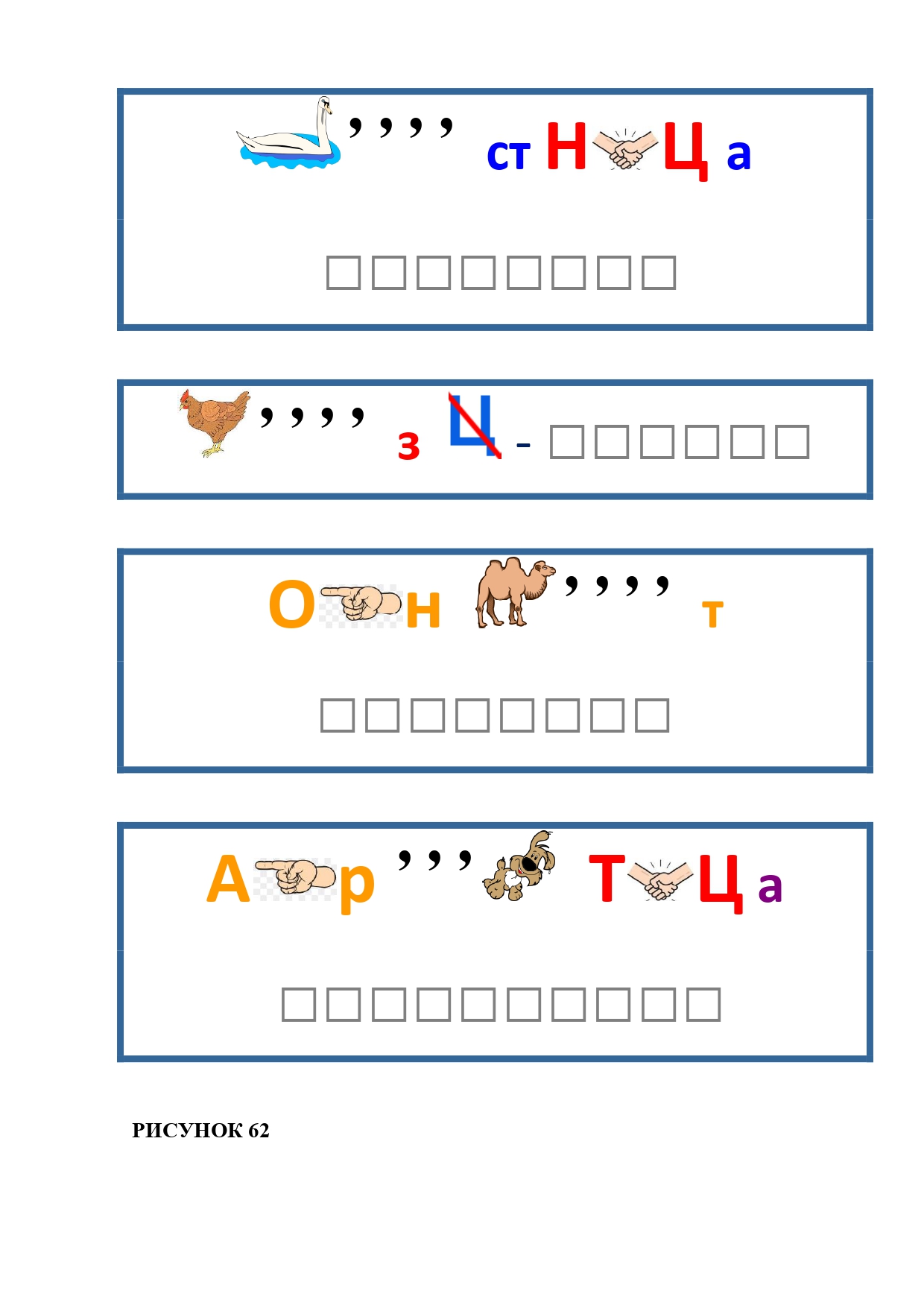 РИСУНОК 62: лестница, кузнец, конверт, каракатица