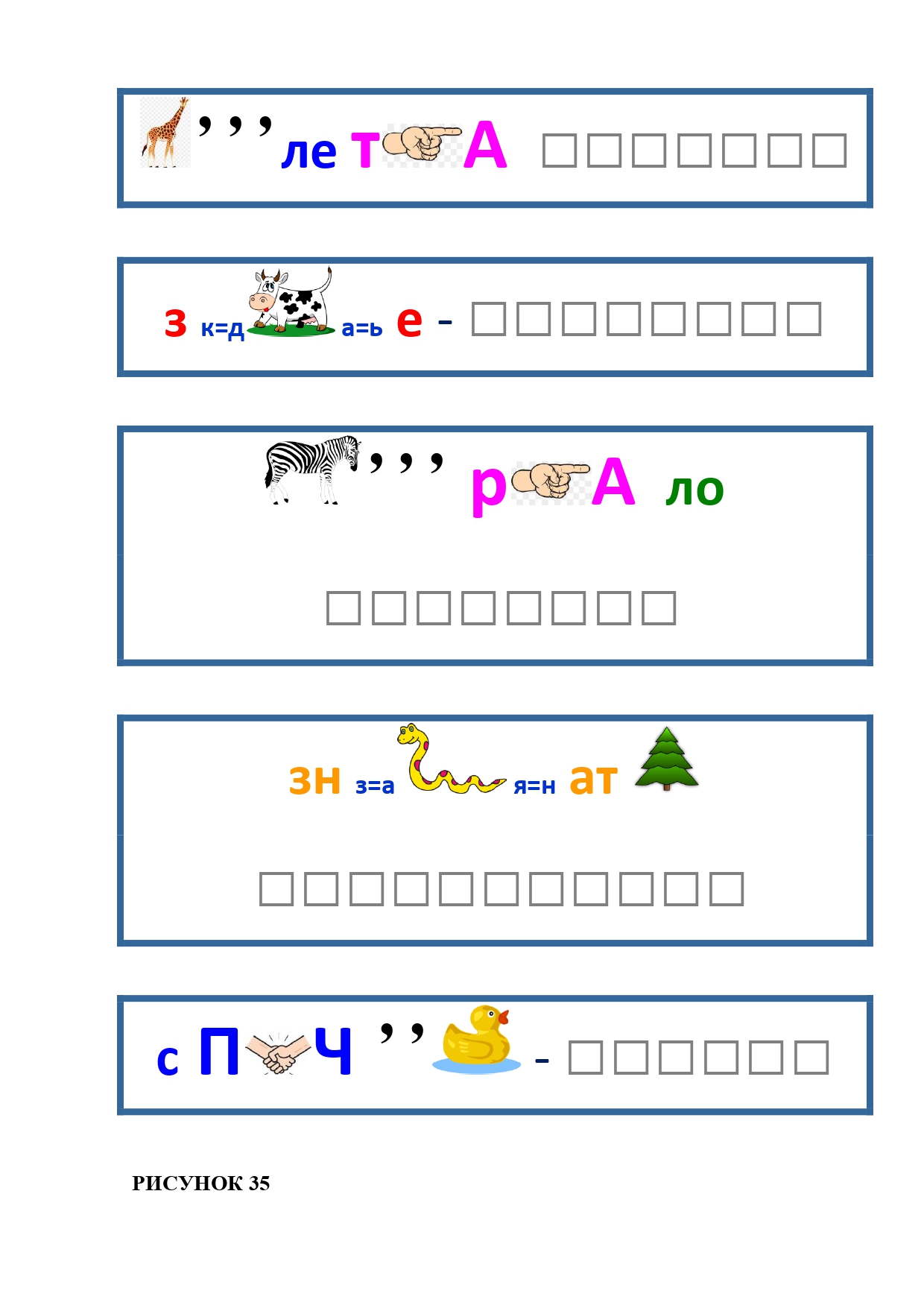 РИСУНОК 35: жилетка, здоровье, зеркало, знаменатель, спичка
