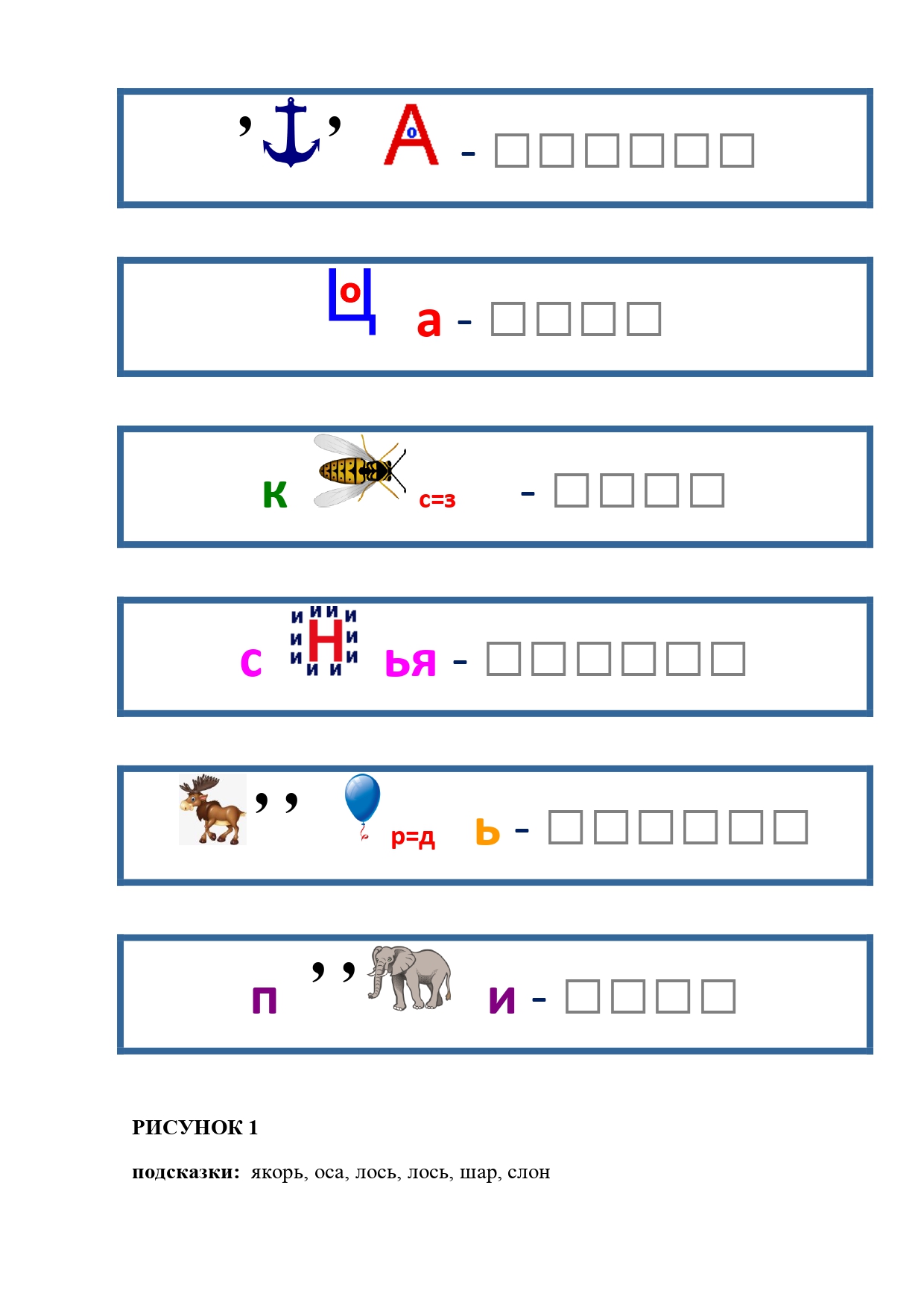РИСУНОК 36: скафандр, вешалка, завтрак, заявление, ракушка