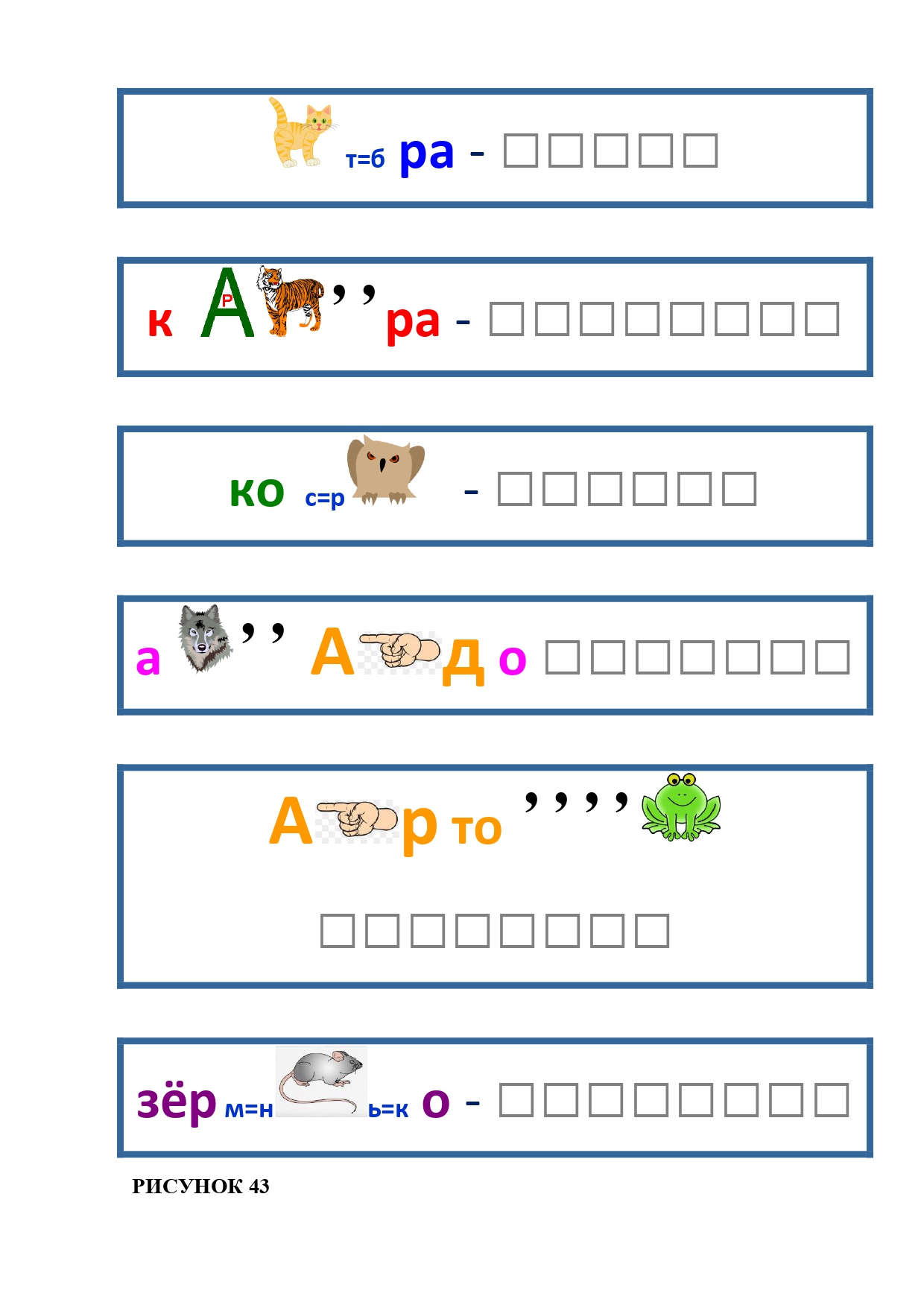 РИСУНОК 43: кобра, квартира, корова, авокадо, картошка, зёрнышко