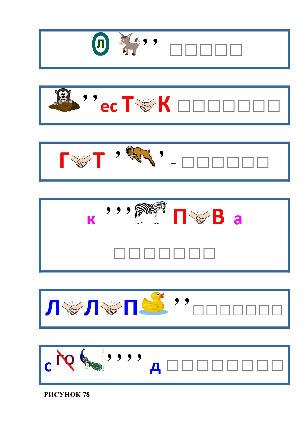 РИСУНОК 78: волос, крестик, гитара, крапива, лилипут, снегопад