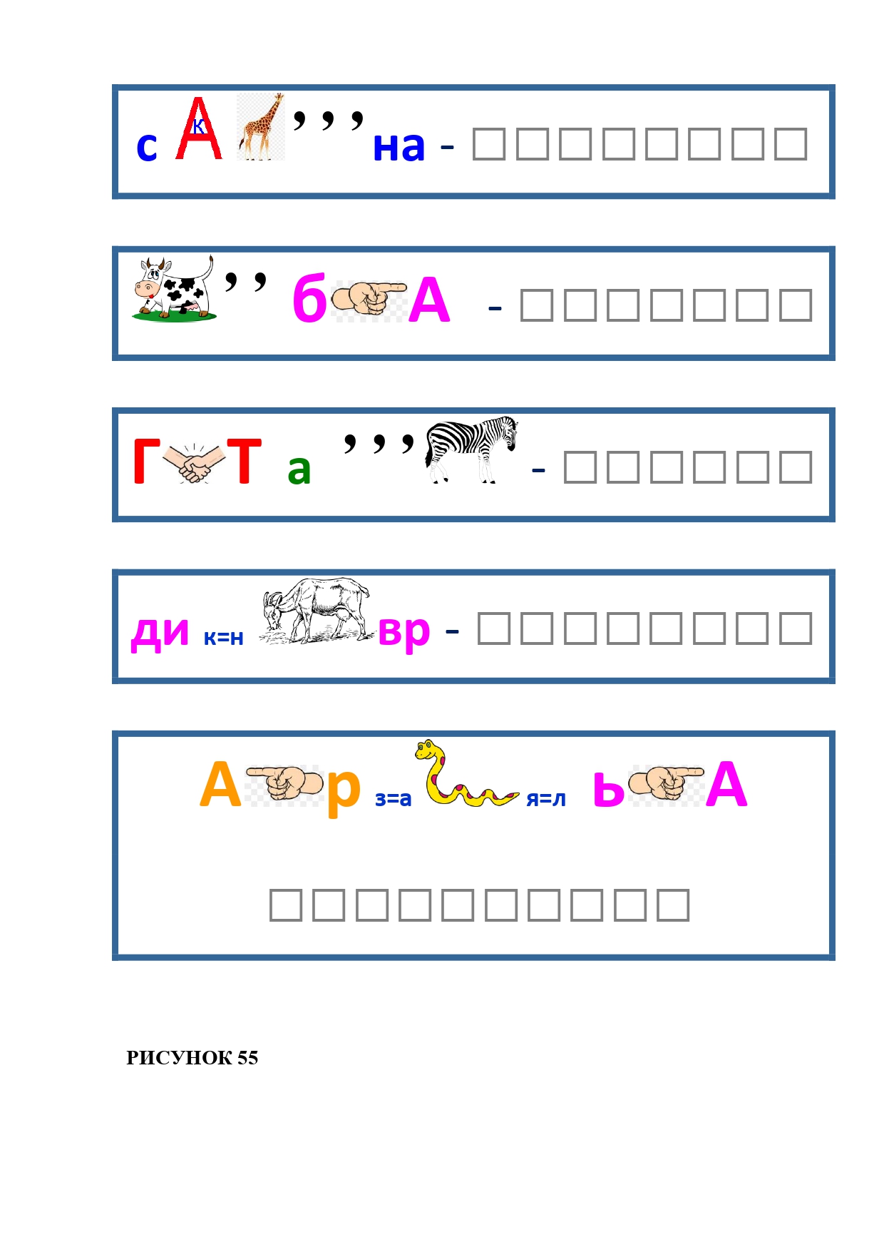 РИСУНОК 55: скважина, коробка, гитара, динозавр, карамелька