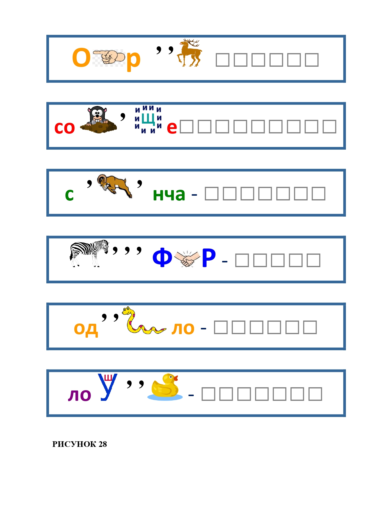 РИСУНОК 28: корень, сокровище, саранча, зефир, одеяло, ловушка