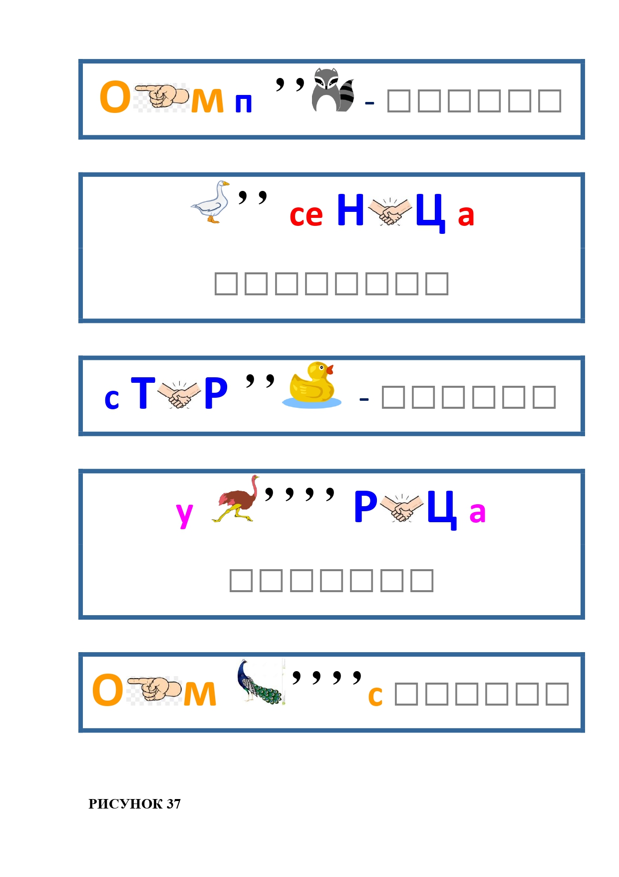 РИСУНОК 37: компот, гусеница, стирка, устрица, компас
