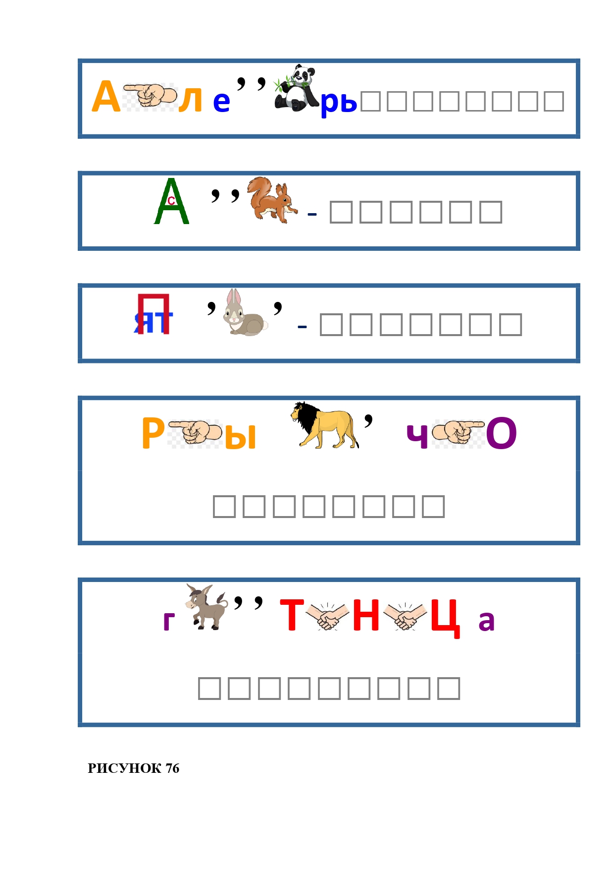 РИСУНОК 76: календарь, свалка, запятая, крылечко, гостиница
