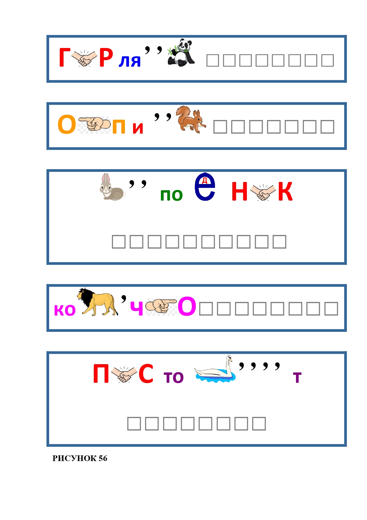 РИСУНОК 56: гирлянда, копилка, заповедник, колечко, пистолет