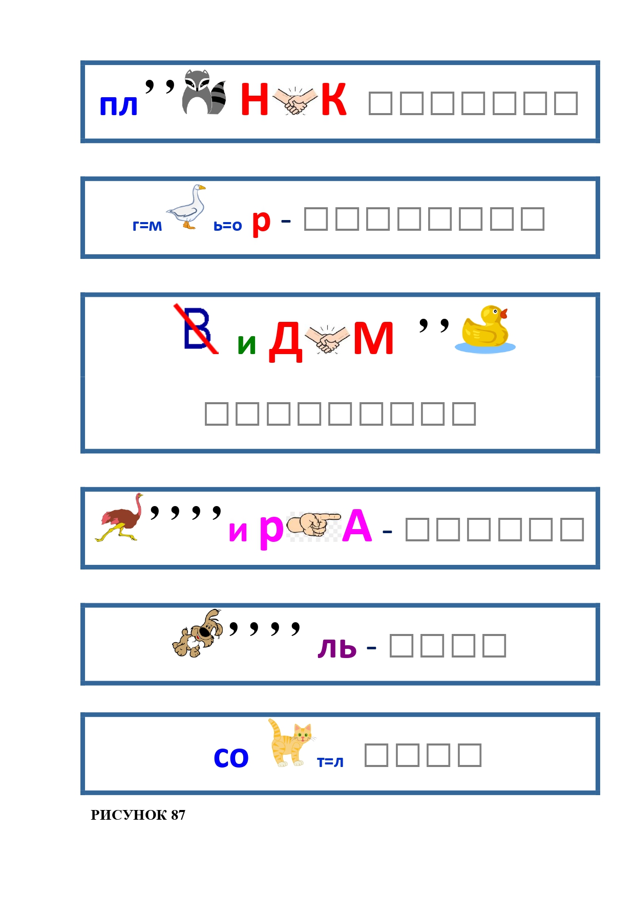 РИСУНОК 87: плотник, мусор, невидимка, стирка, соль, сокол