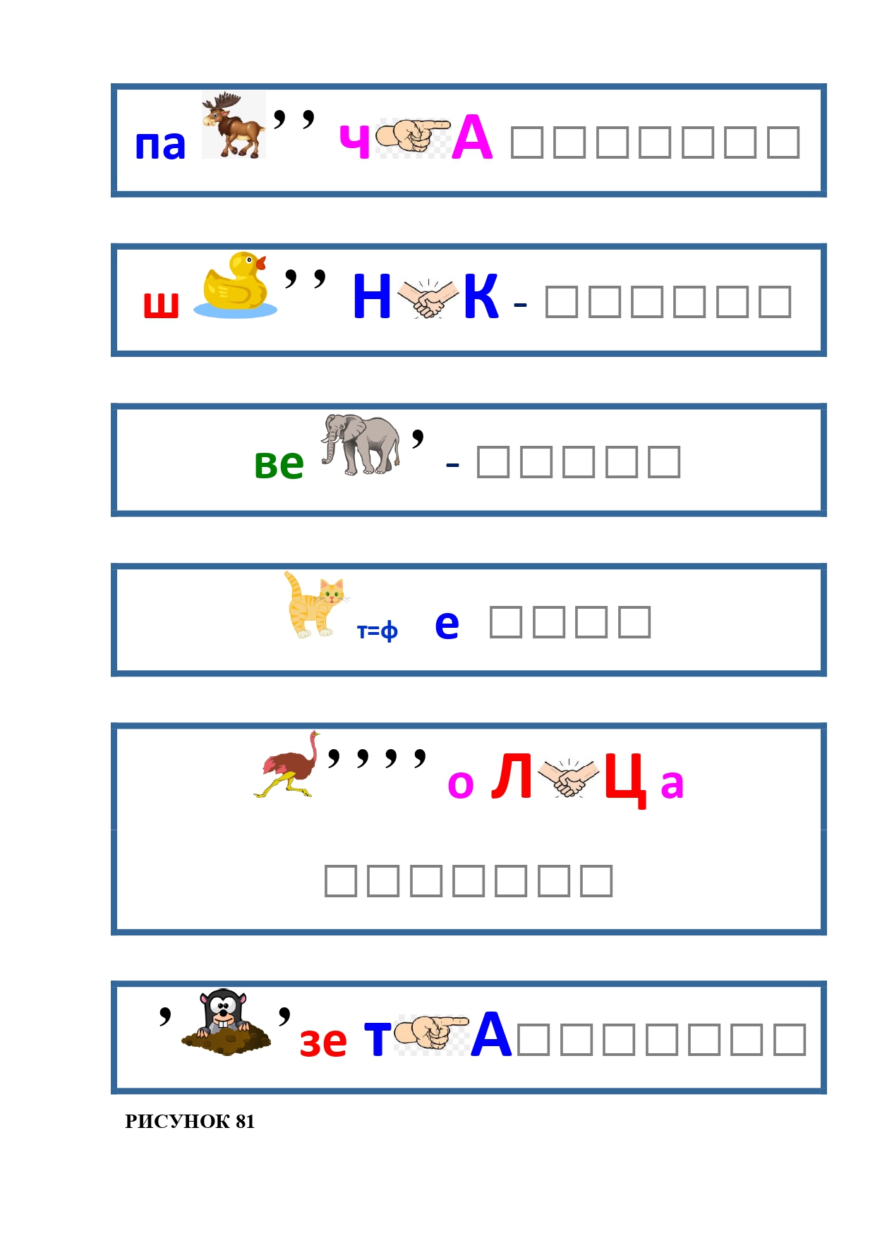 РИСУНОК 81: палочка, шутник, весло, кофе, столица, розетка