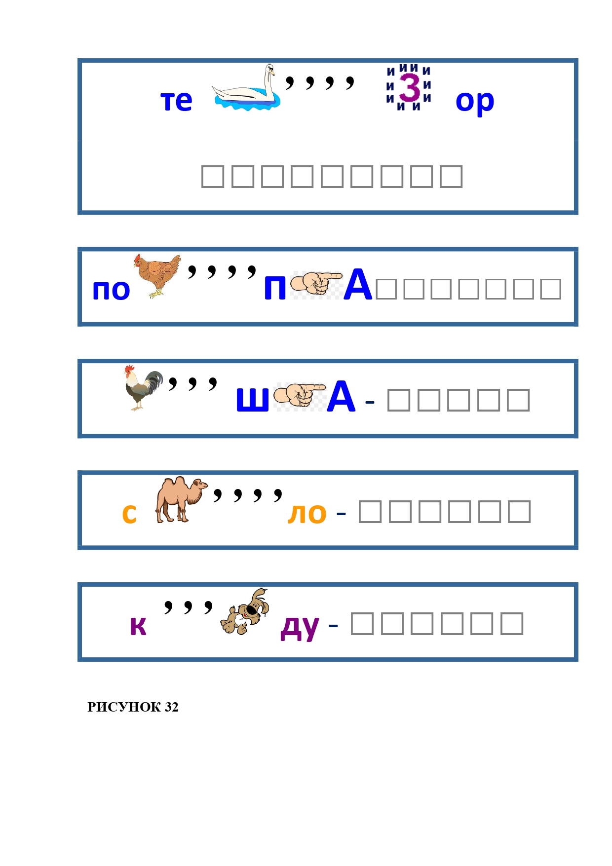 РИСУНОК 32: телевизор, покупка, пешка, сверло, какаду