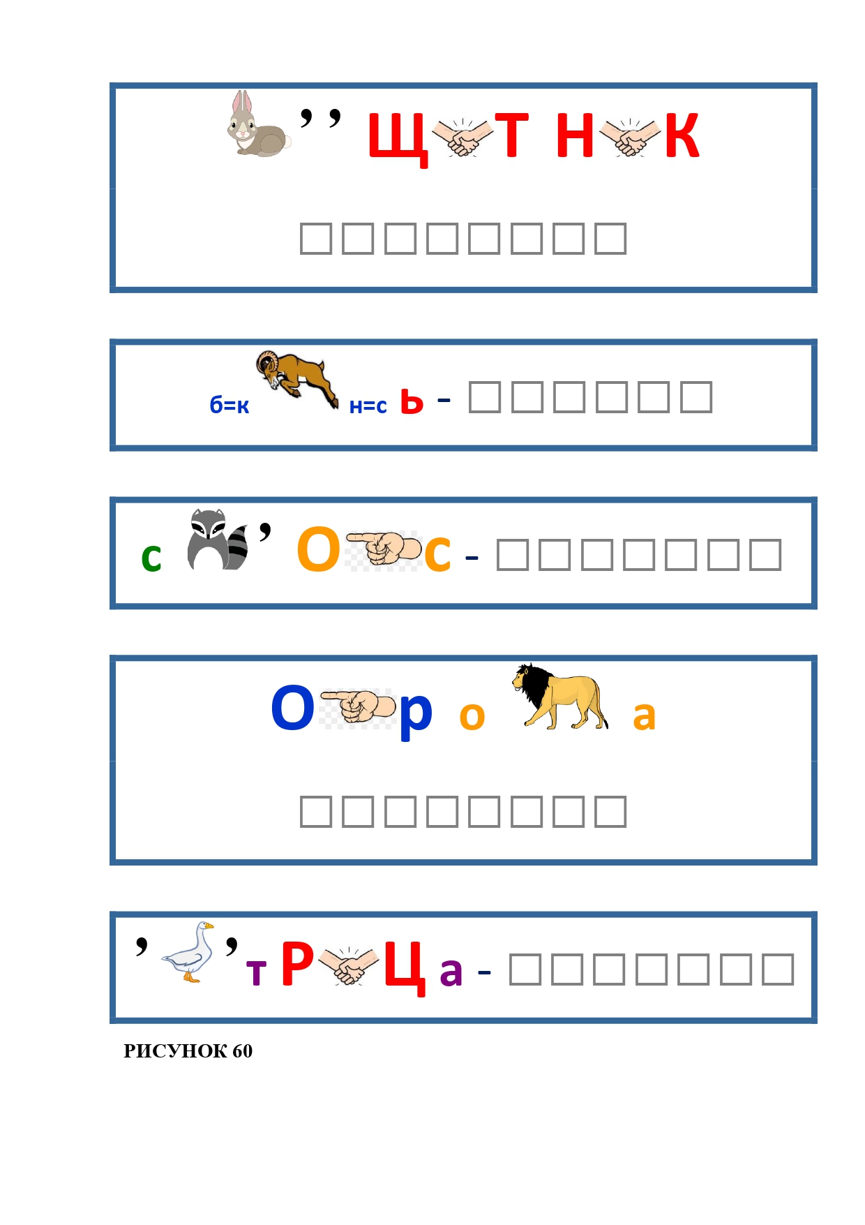 РИСУНОК 5: петух, баран, верблюд, енот, бык, кабан