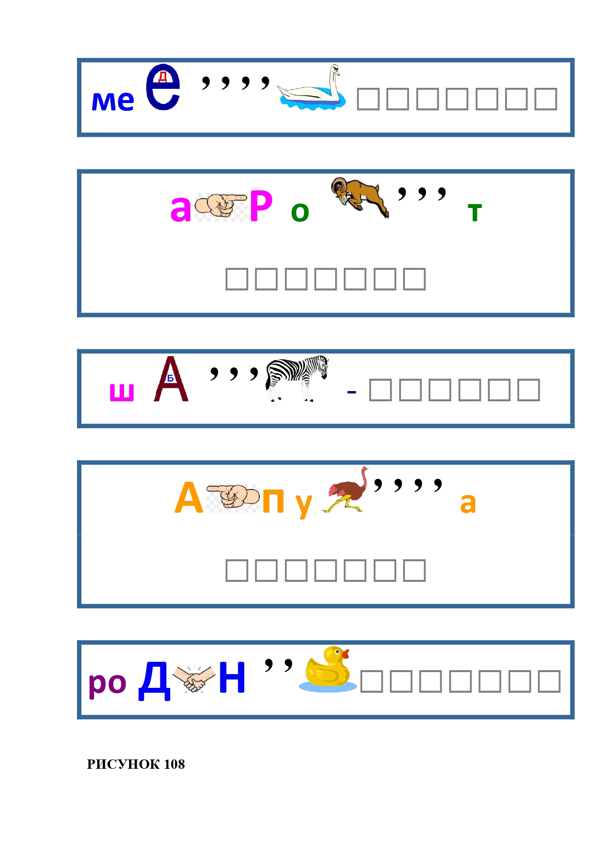 РИСУНОК 108: медведь, акробат, швабра, капуста, родинка