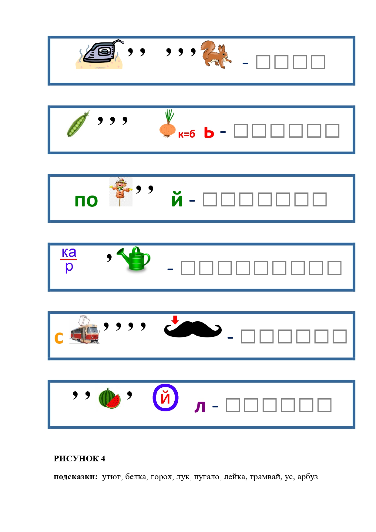 РИСУНОК 41: тропинка, пословица, пугало, тюльпан, кровать, огонь