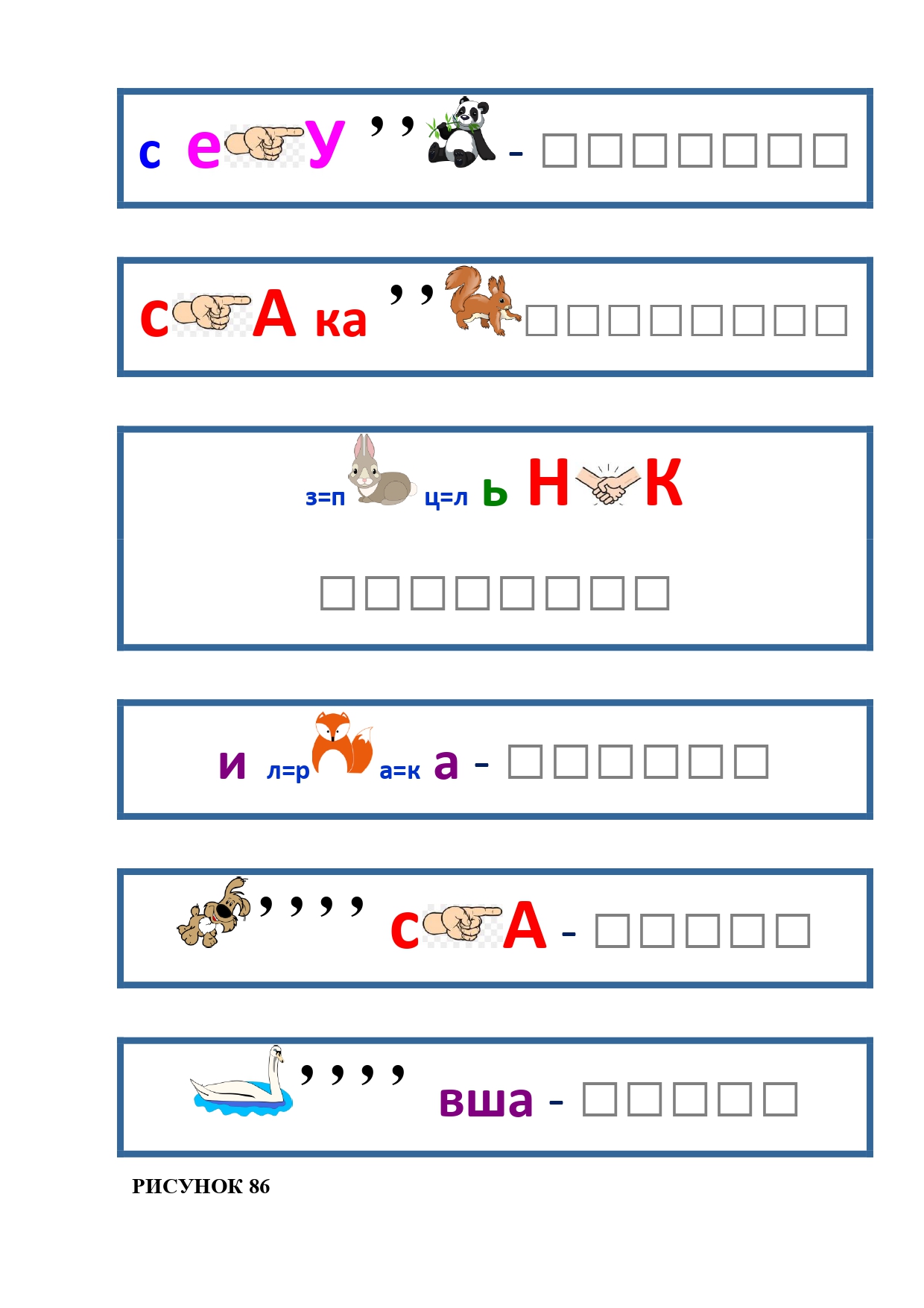 РИСУНОК 86: секунда, скакалка, паяльник, ириска, соска, левша