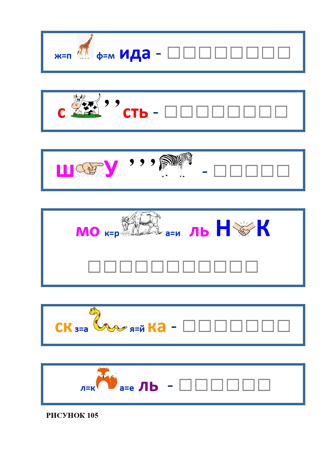 РИСУНОК 105: пирамида, скорость, шкура, морозильник, скамейка, кисель