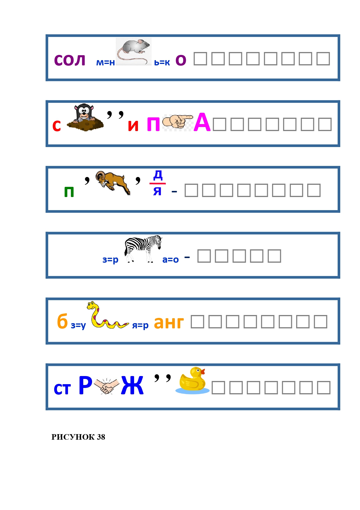 РИСУНОК 38: солнышко, скрипка, парадная, ребро, бумеранг, стрижка