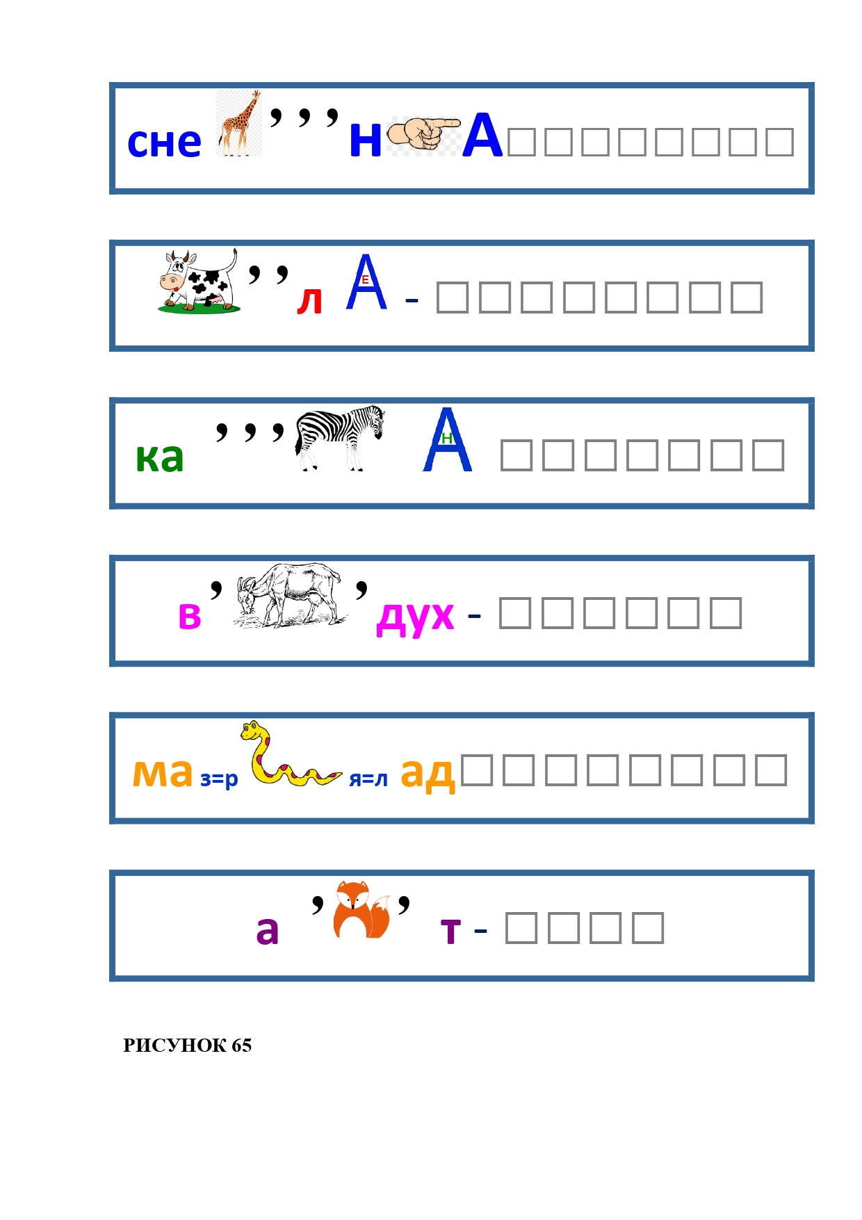 РИСУНОК 65: снежинка, королева, караван, воздух, мармелад, аист