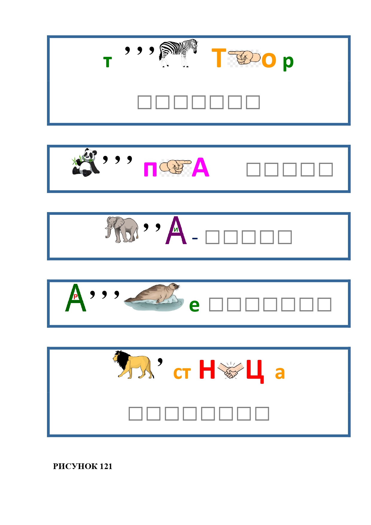РИСУНОК 12: павиан, тигр, тритон, хорёк, антилопа