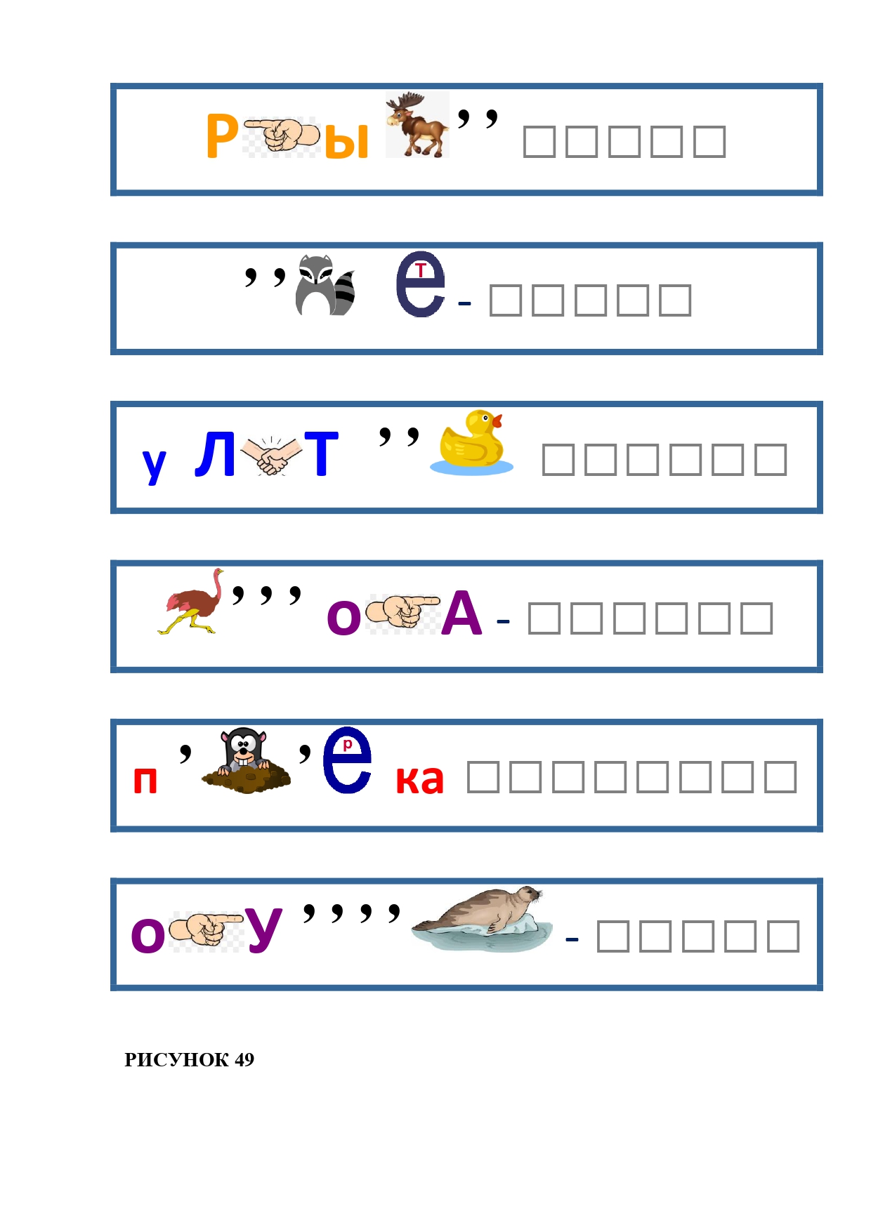 РИСУНОК 49: крыло, ответ, улитка, строка, проверка, окунь